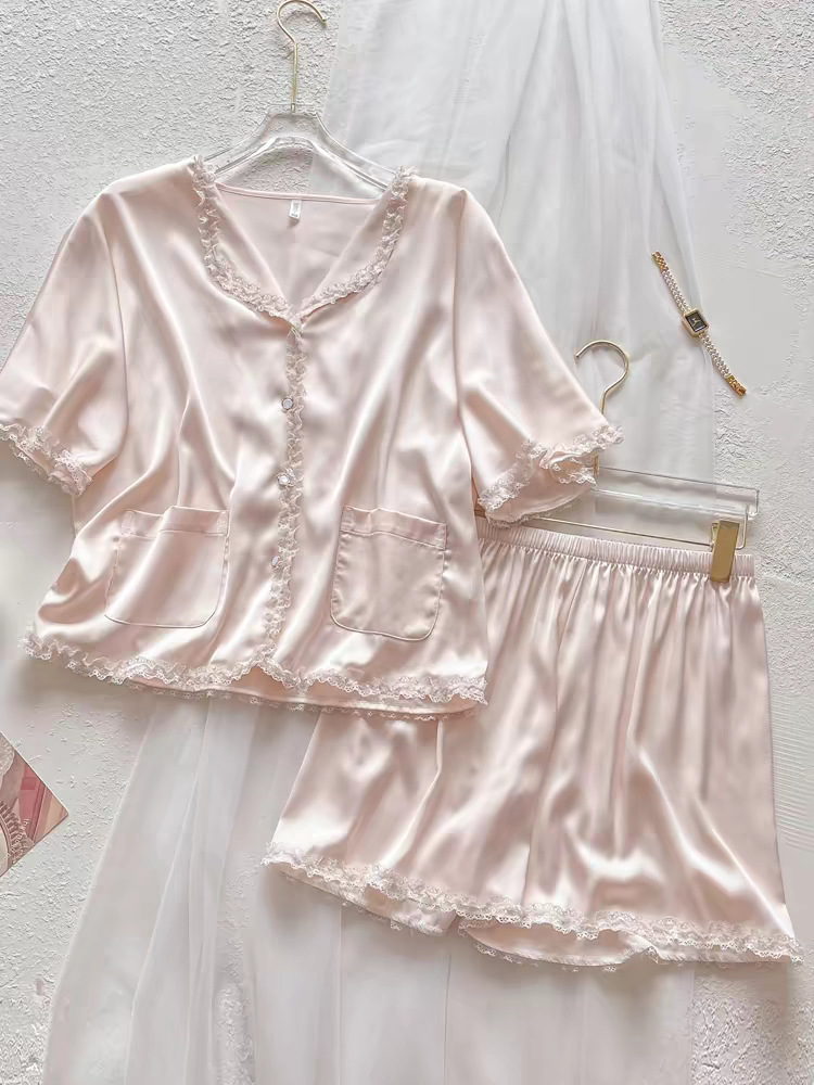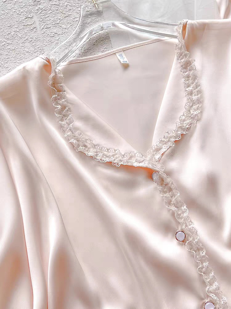 새로운 도착 잠옷 여성의 봄과 가을 프랑스 코트 스타일 긴 소매 공주 간단한 홈 옷 아이스 실크 세트 여름