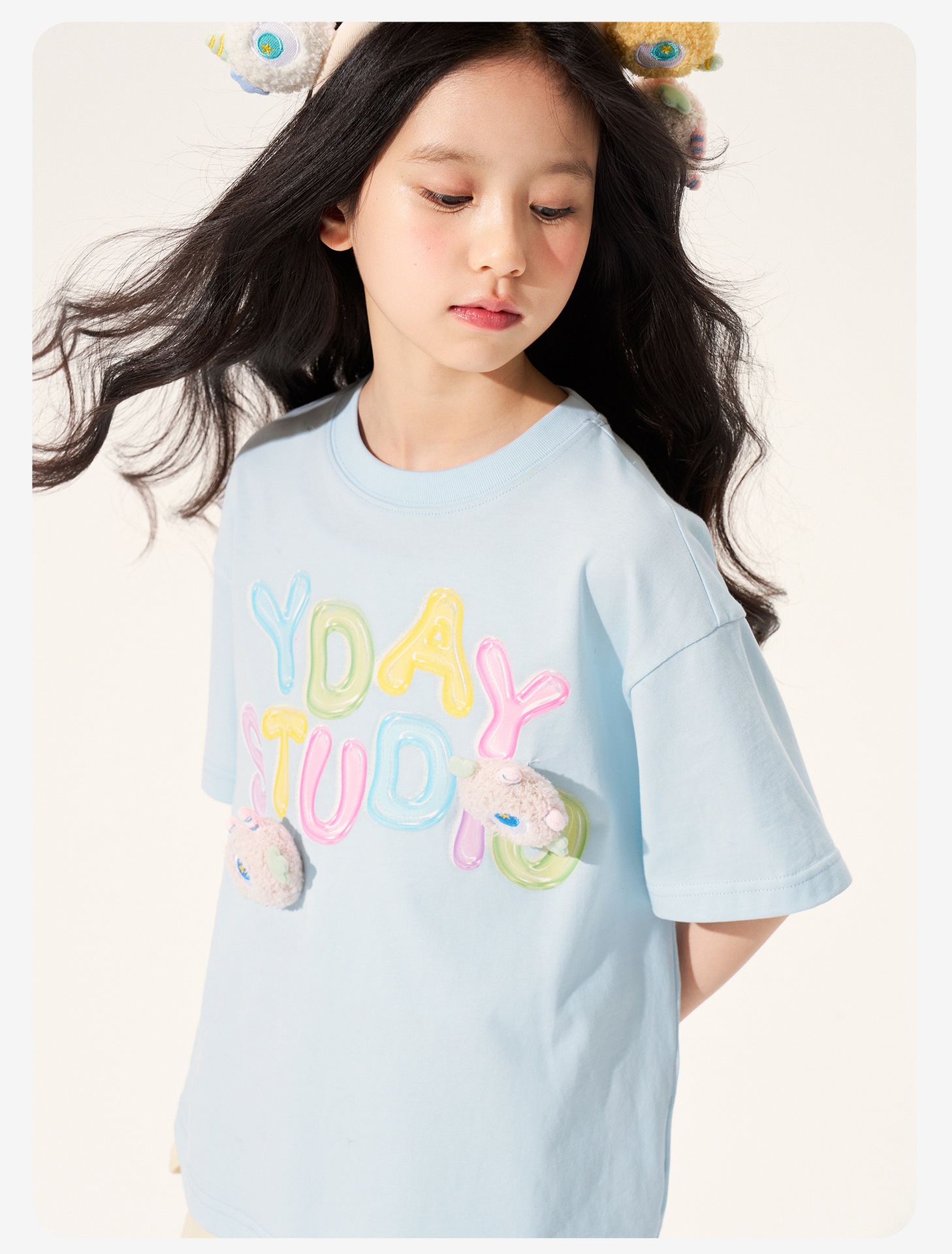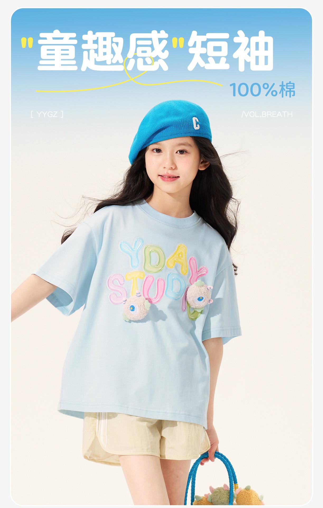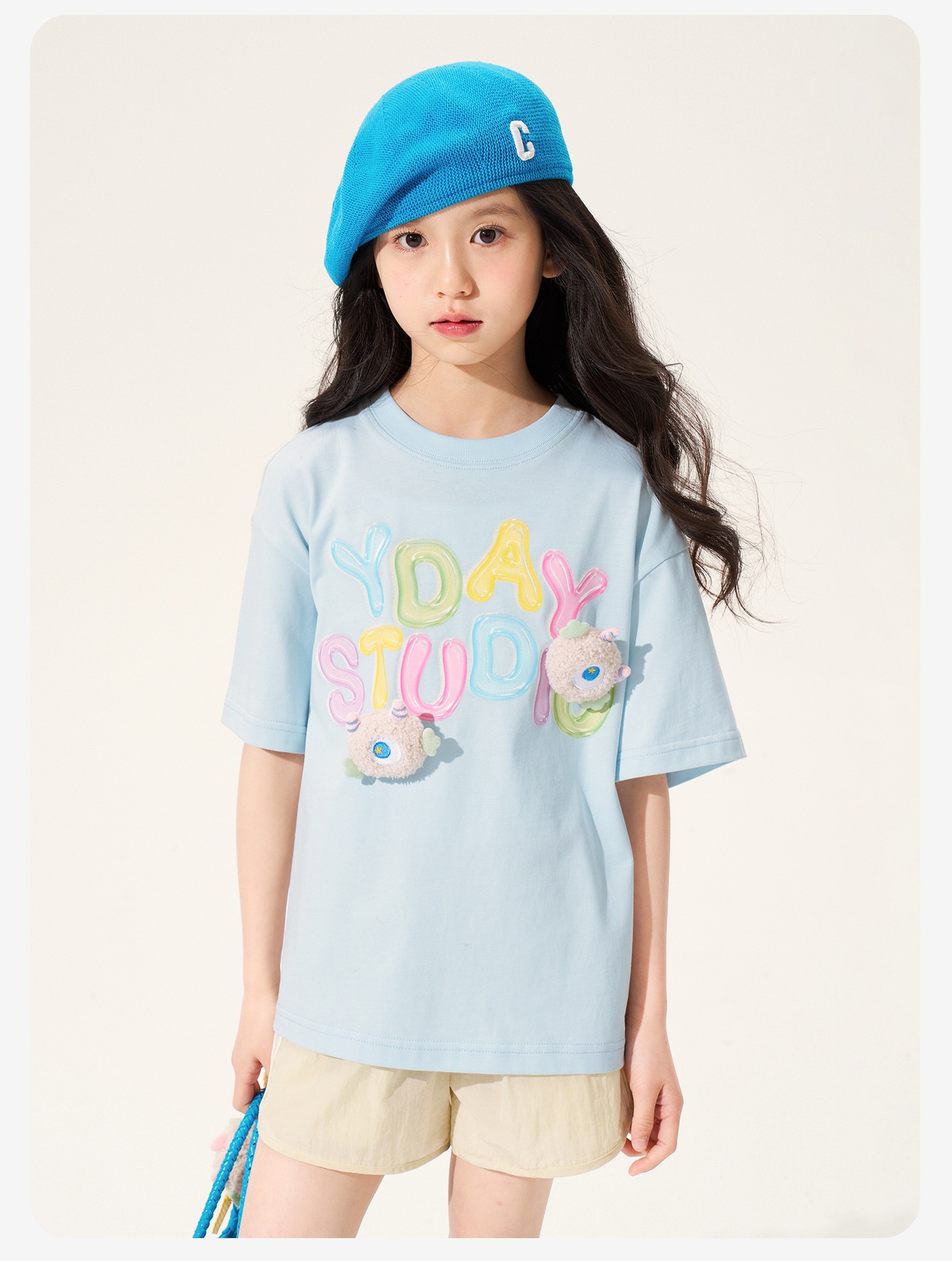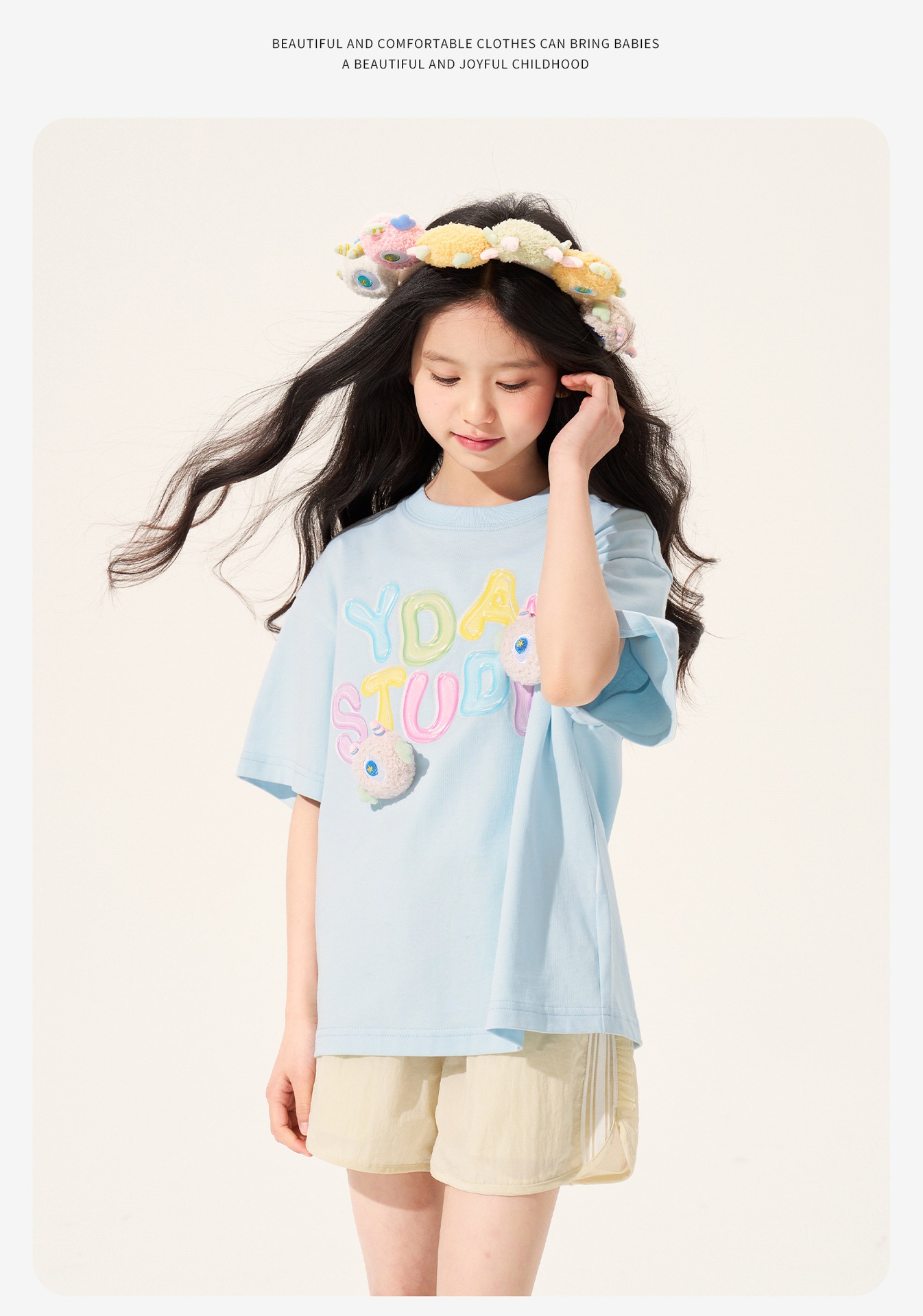 100% 면 여아 반팔 티셔츠 2026 아동 여름 신상 입체 인형 상의 반팔 만화 티셔츠 아동복스토어 가기