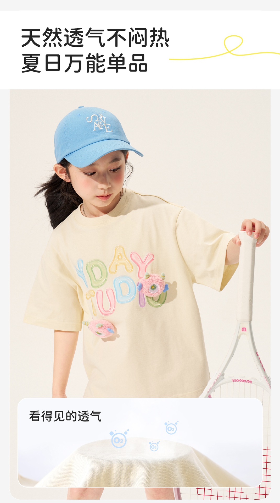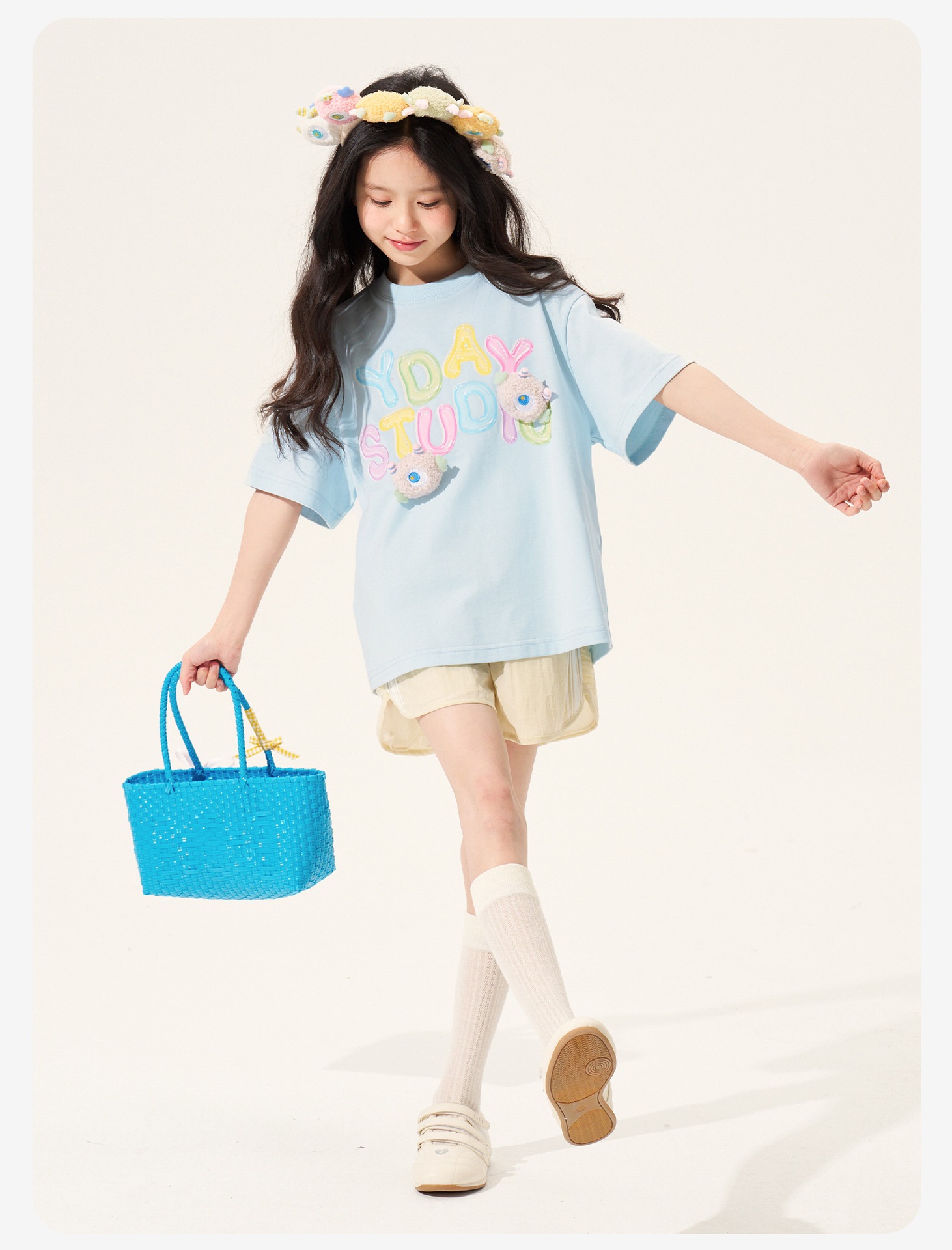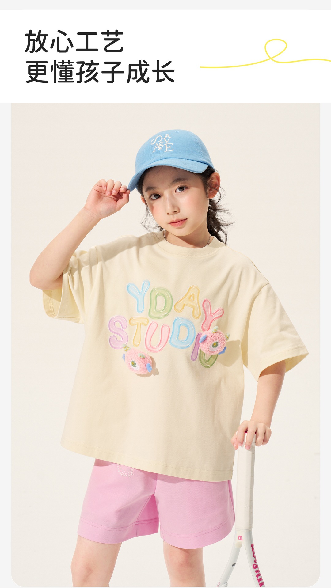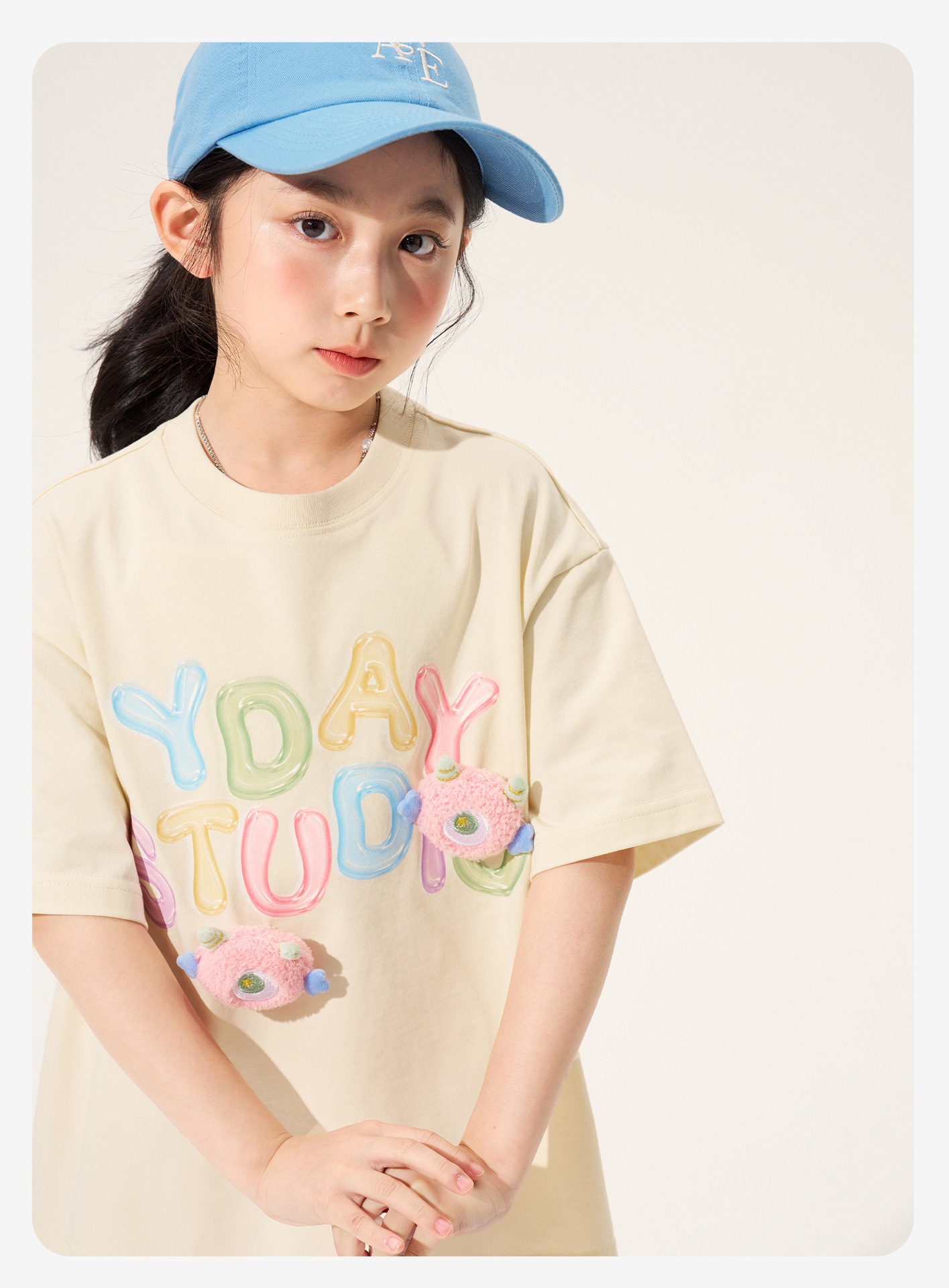 100% 면 여아 반팔 티셔츠 2026 아동 여름 신상 입체 인형 상의 반팔 만화 티셔츠 아동복스토어 가기