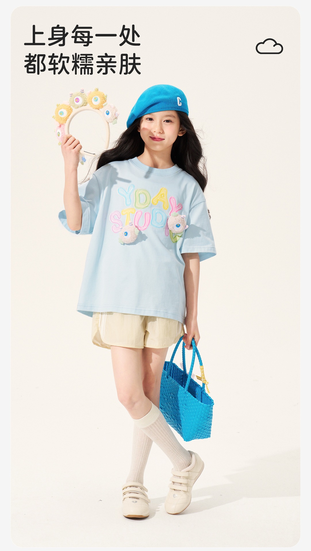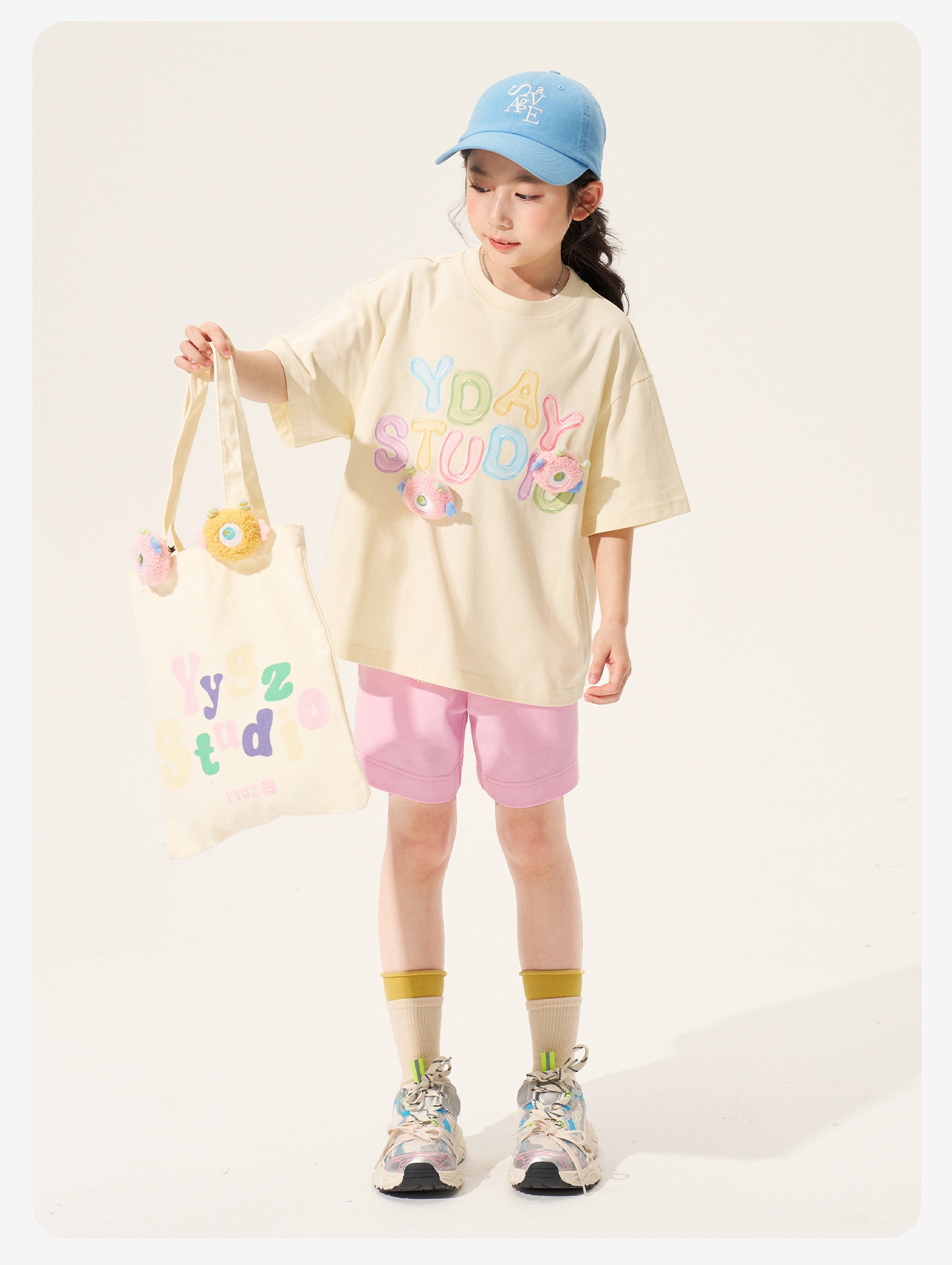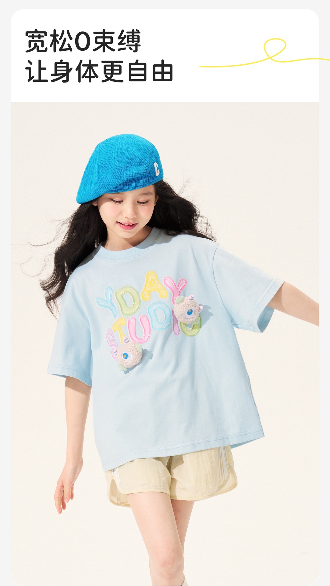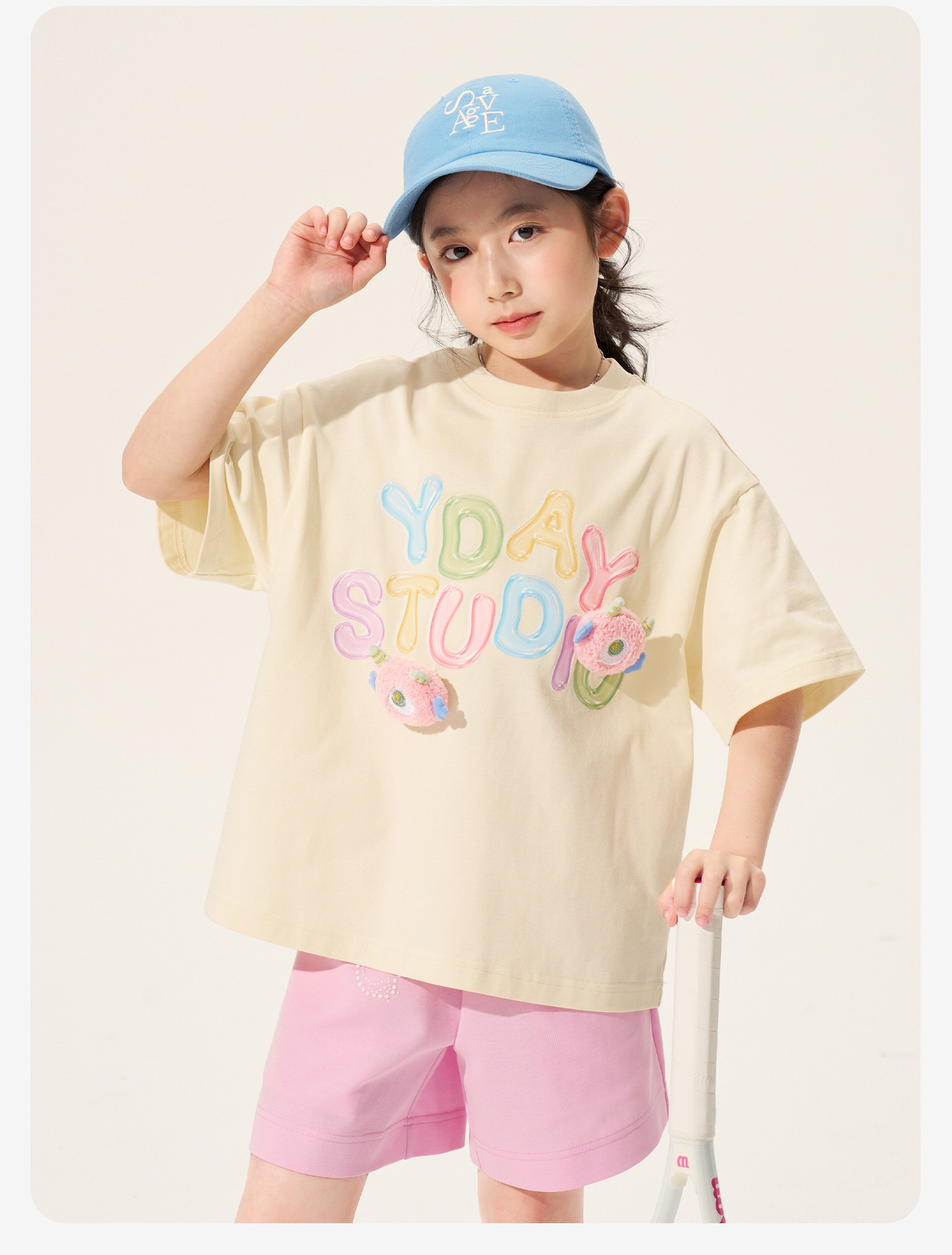 100% 면 여아 반팔 티셔츠 2026 아동 여름 신상 입체 인형 상의 반팔 만화 티셔츠 아동복스토어 가기