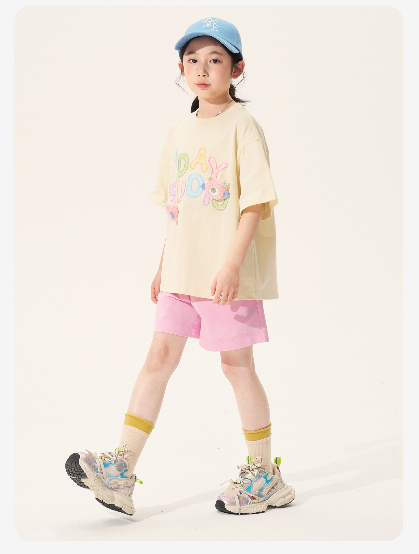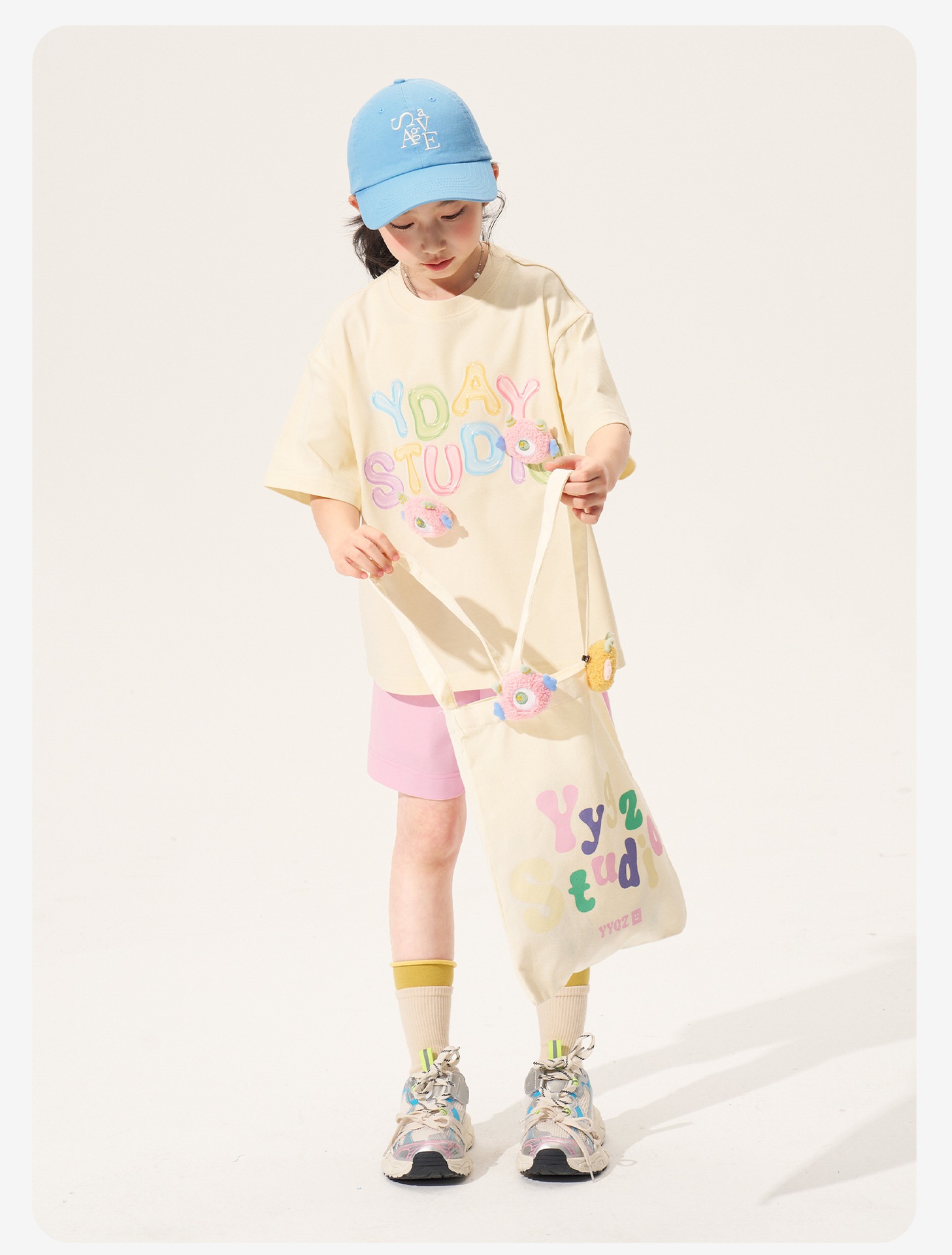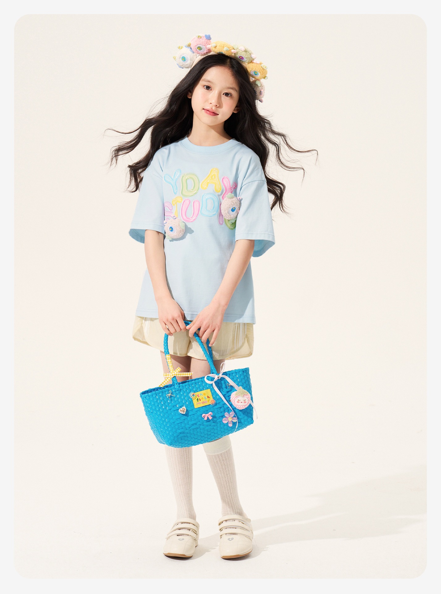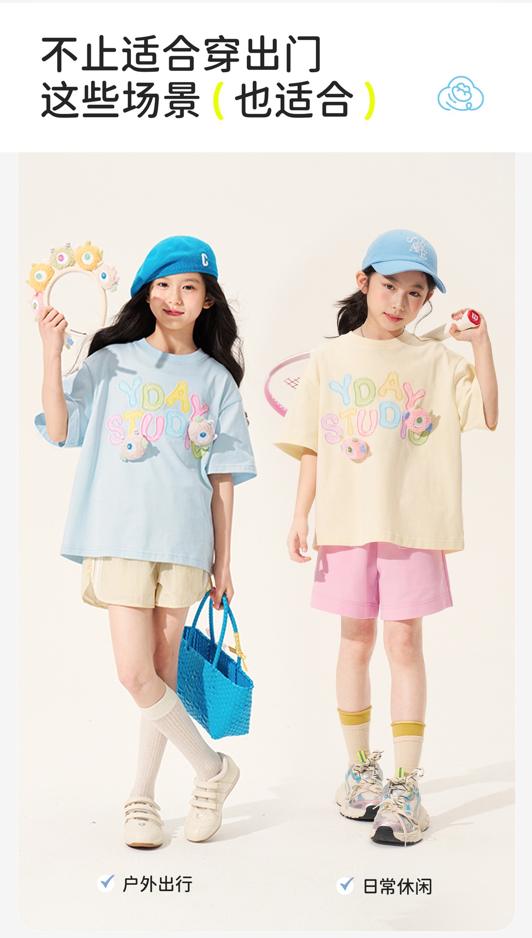 100% 면 여아 반팔 티셔츠 2026 아동 여름 신상 입체 인형 상의 반팔 만화 티셔츠 아동복스토어 가기