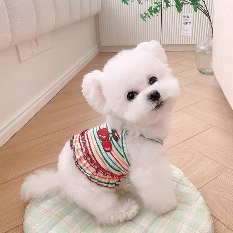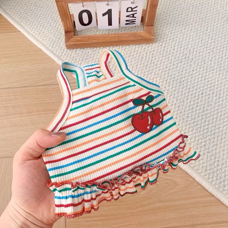 레인보우 스트립 여름 고양이와 개 애완 동물 테디 비숑 개 옷 프렌치 불독 포메라니안 몰타 얇은 조끼스토어 가기