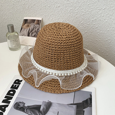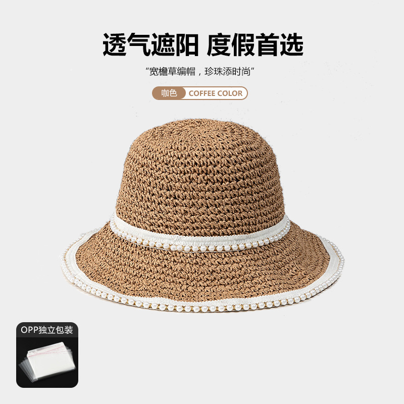 진주 밀짚모자 여름 여행용 자외선 차단 낚시꾼 모자 신상품 밀짚 해변 휴가 인터넷 연예인 모자 도매