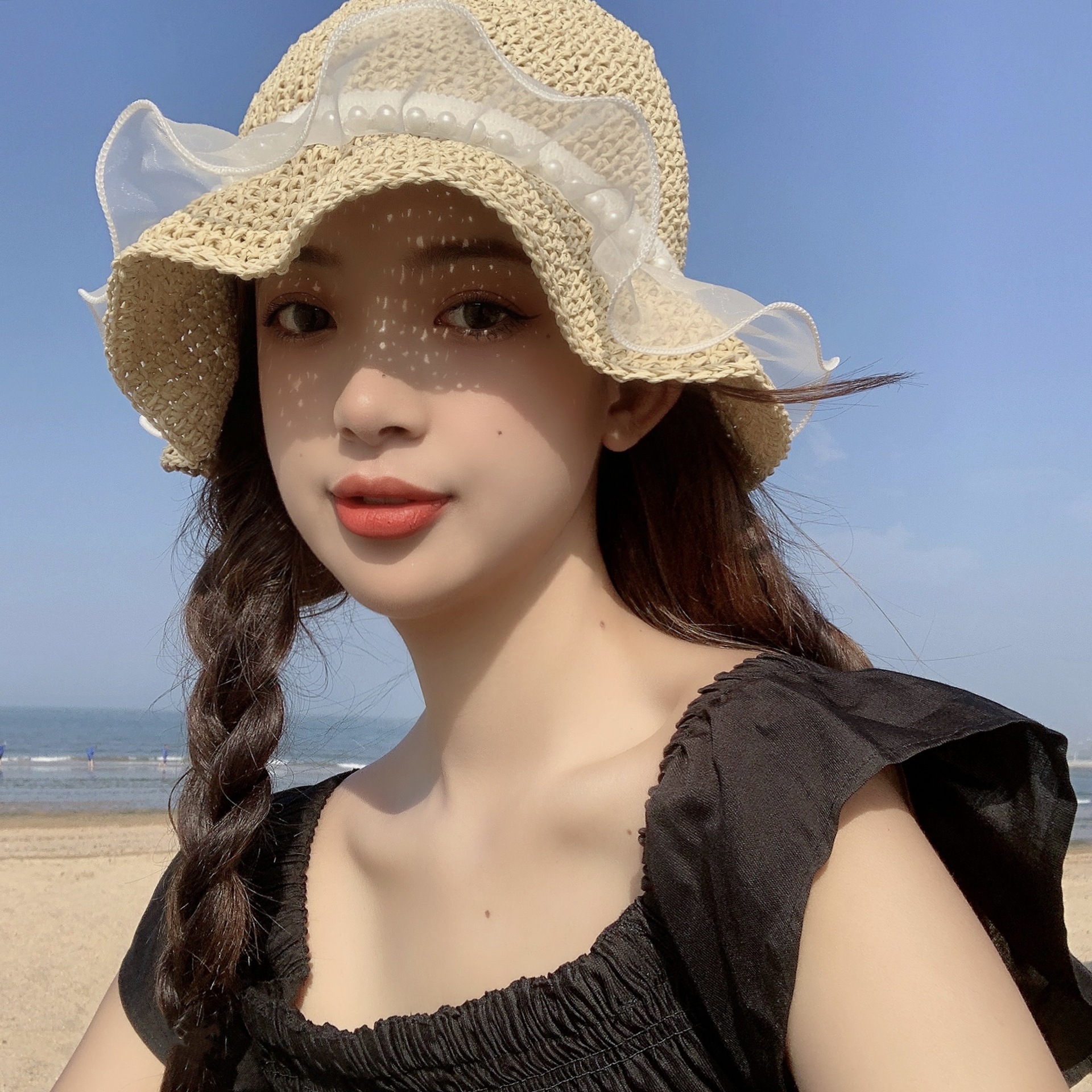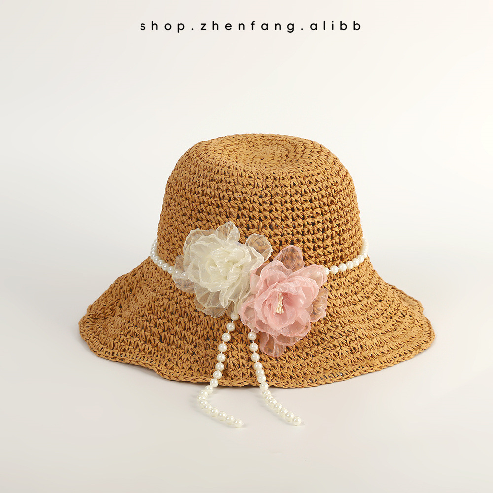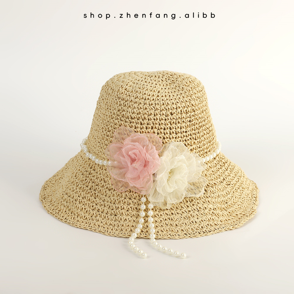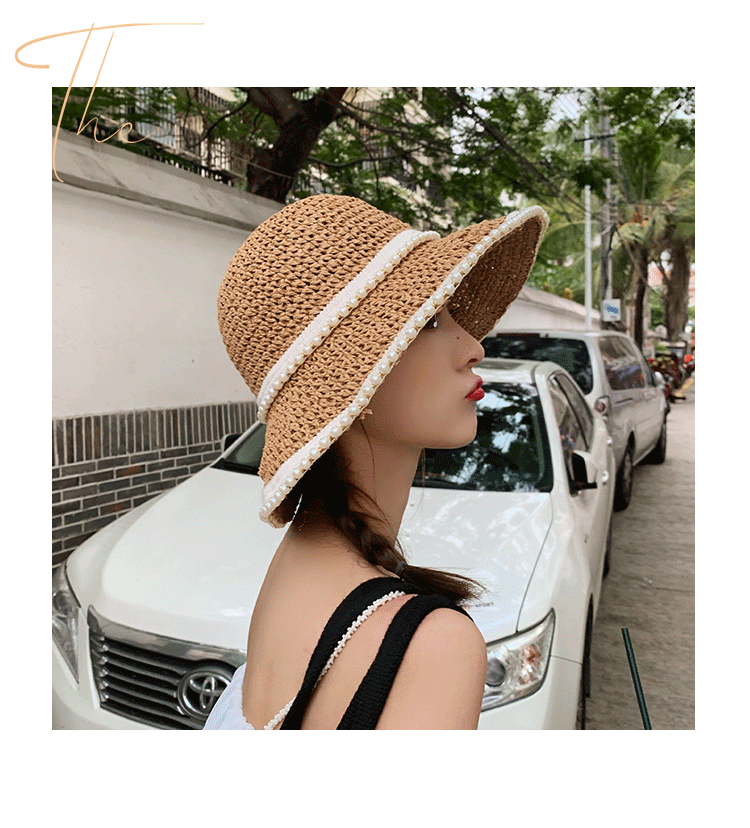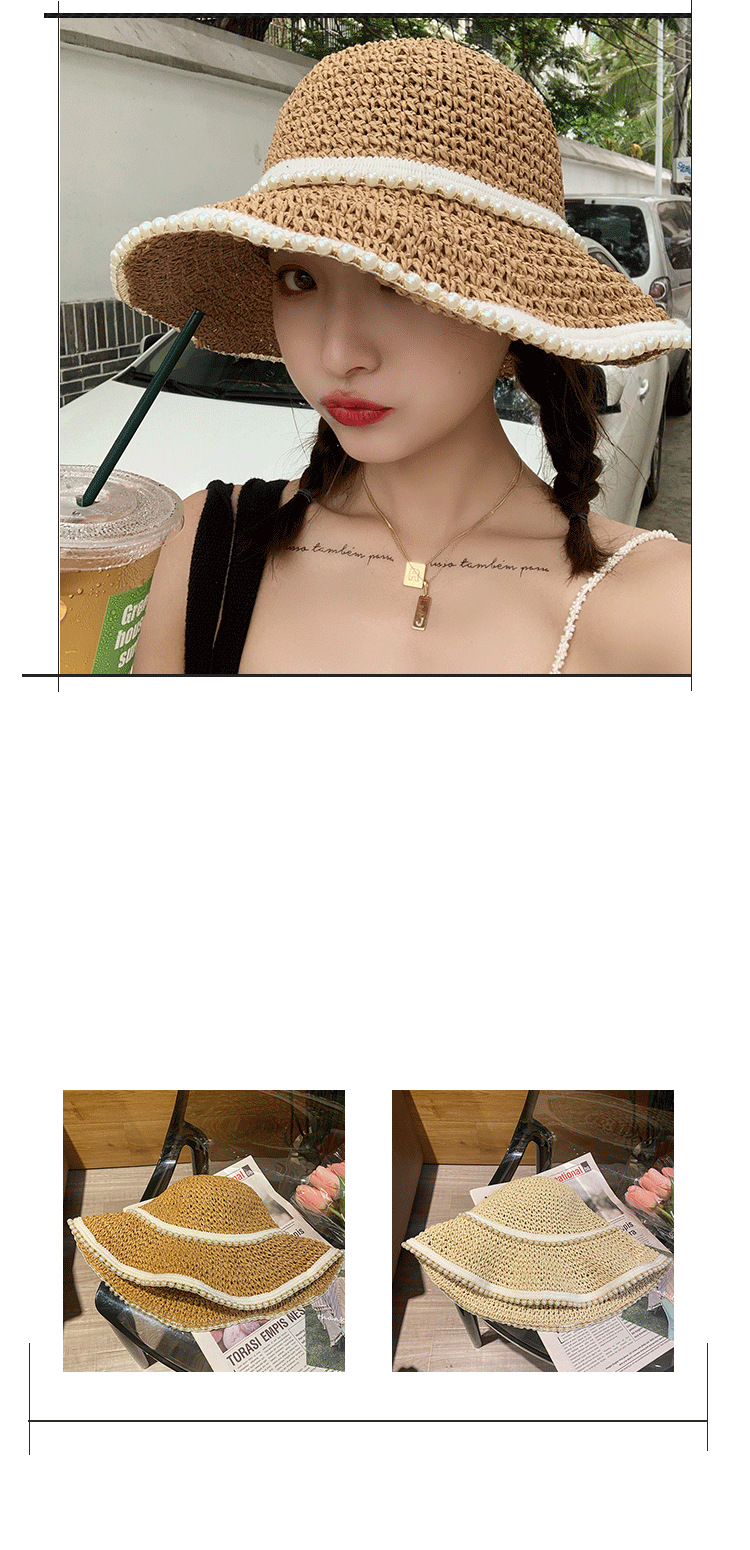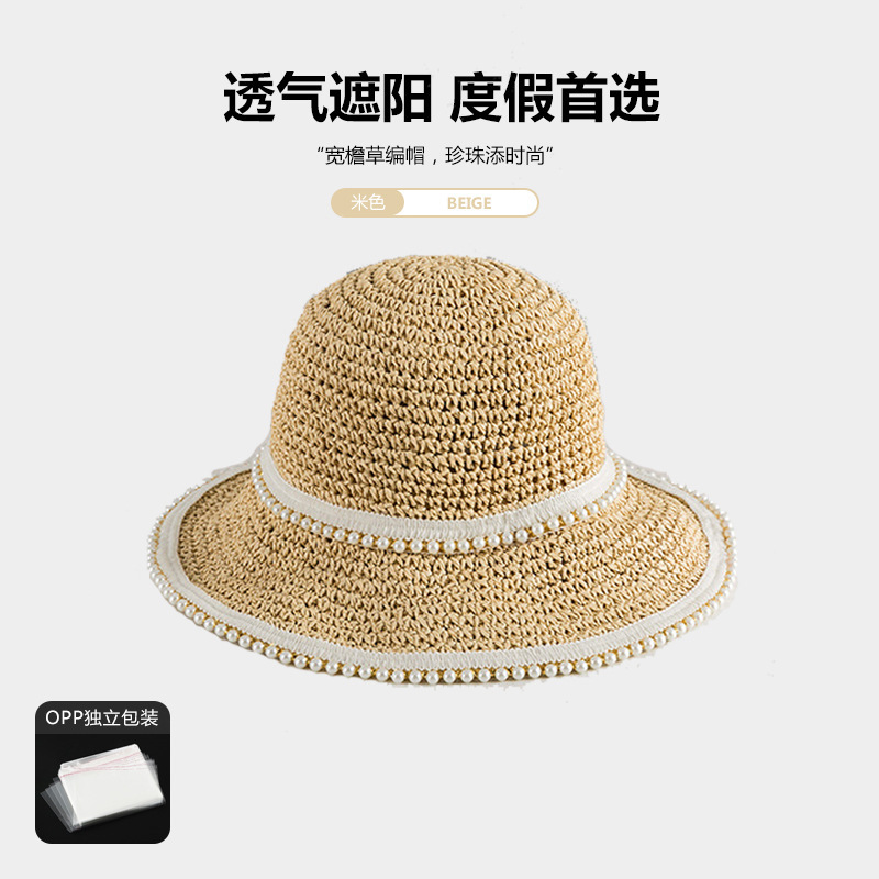 진주 밀짚모자 여름 여행용 자외선 차단 낚시꾼 모자 신상품 밀짚 해변 휴가 인터넷 연예인 모자 도매스토어 가기