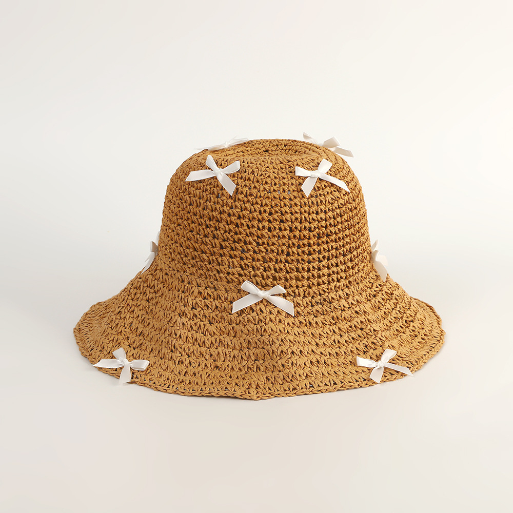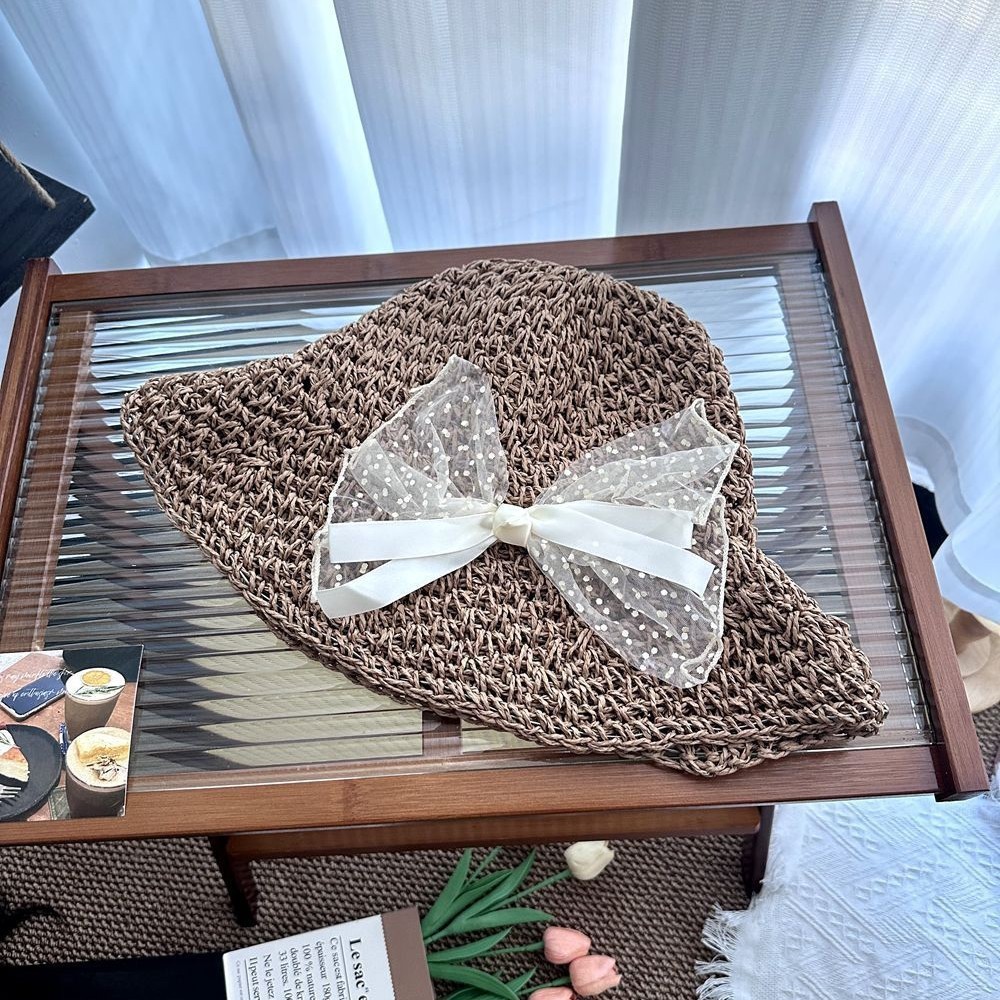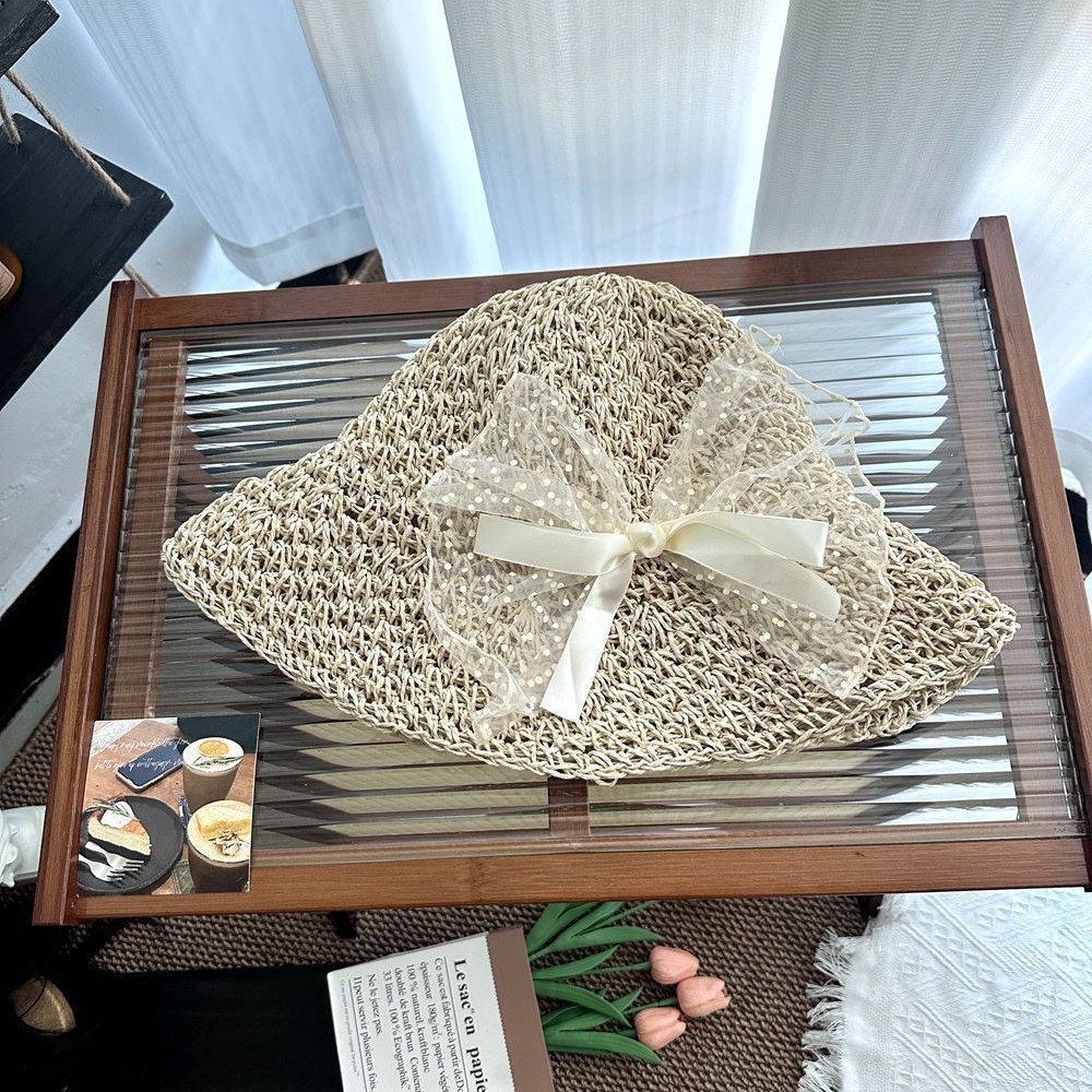 • 메쉬 라지 보우 밀짚모자-베이지