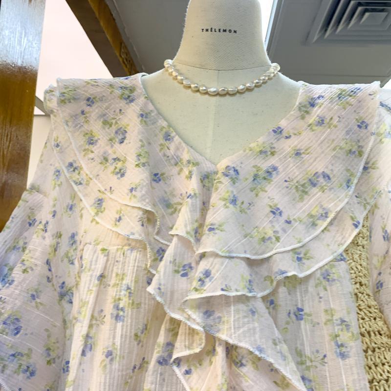 150kg 특대 프렌치 디자인 부드럽고 달콤한 뚱녀를 위한 긴팔 꽃무늬 셔츠 쉬폰 자외선 차단 탑 2