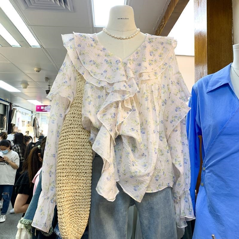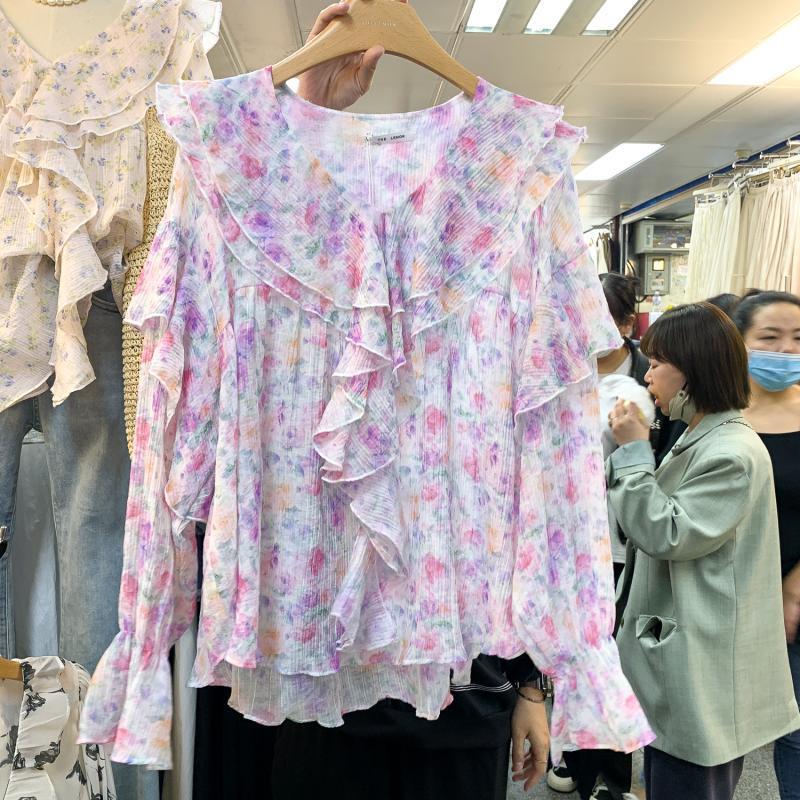 150kg 특대 프렌치 디자인 부드럽고 달콤한 뚱녀를 위한 긴팔 꽃무늬 셔츠 쉬폰 자외선 차단 탑 2스토어 가기