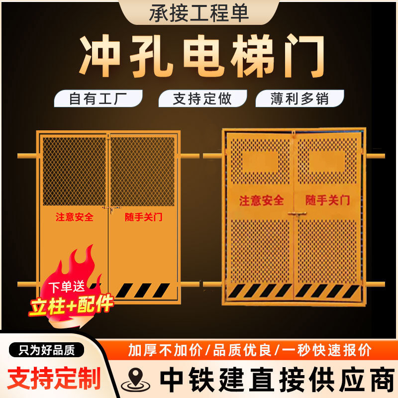 맞춤형 건설 현장 건설 바닥 보호 엘리베이터 도어 완전 밀폐형 펀칭 엘리베이터 우물 입구 안전 보호 도어스토어 가기