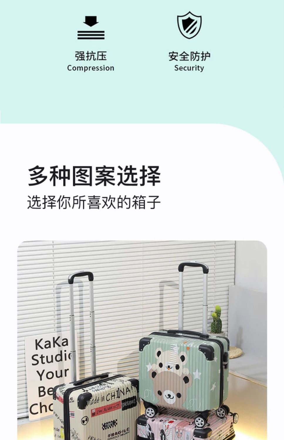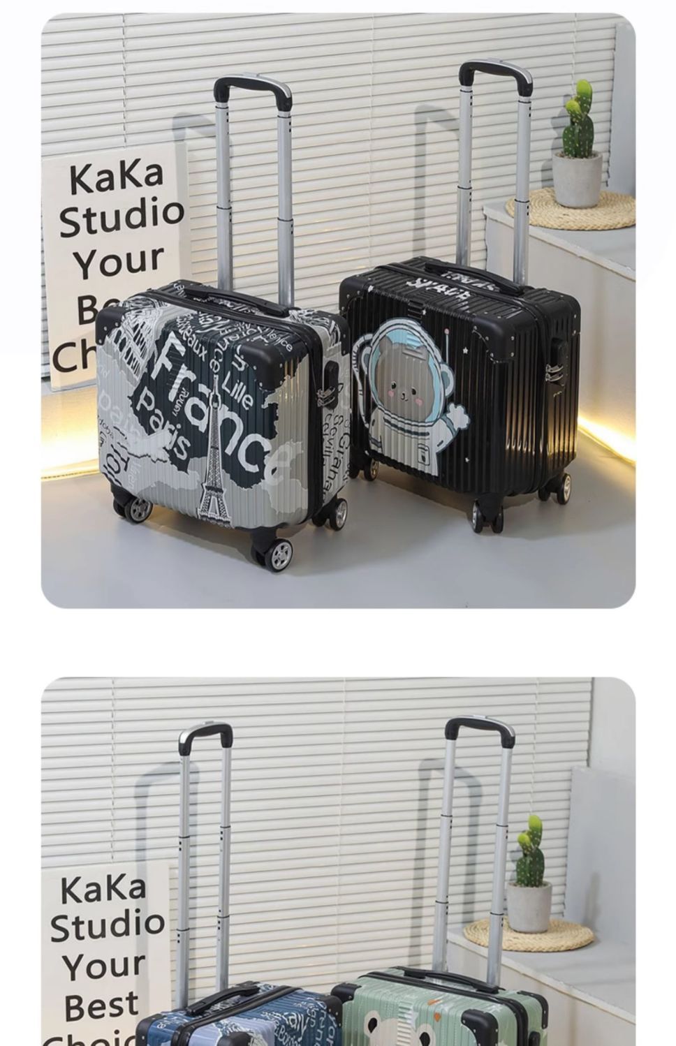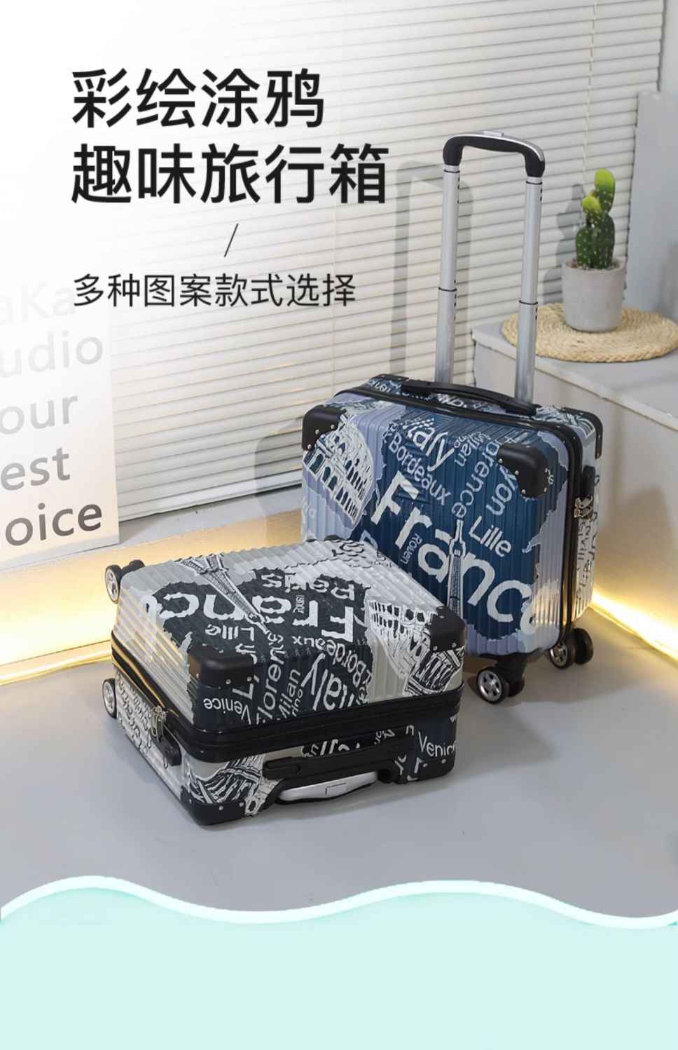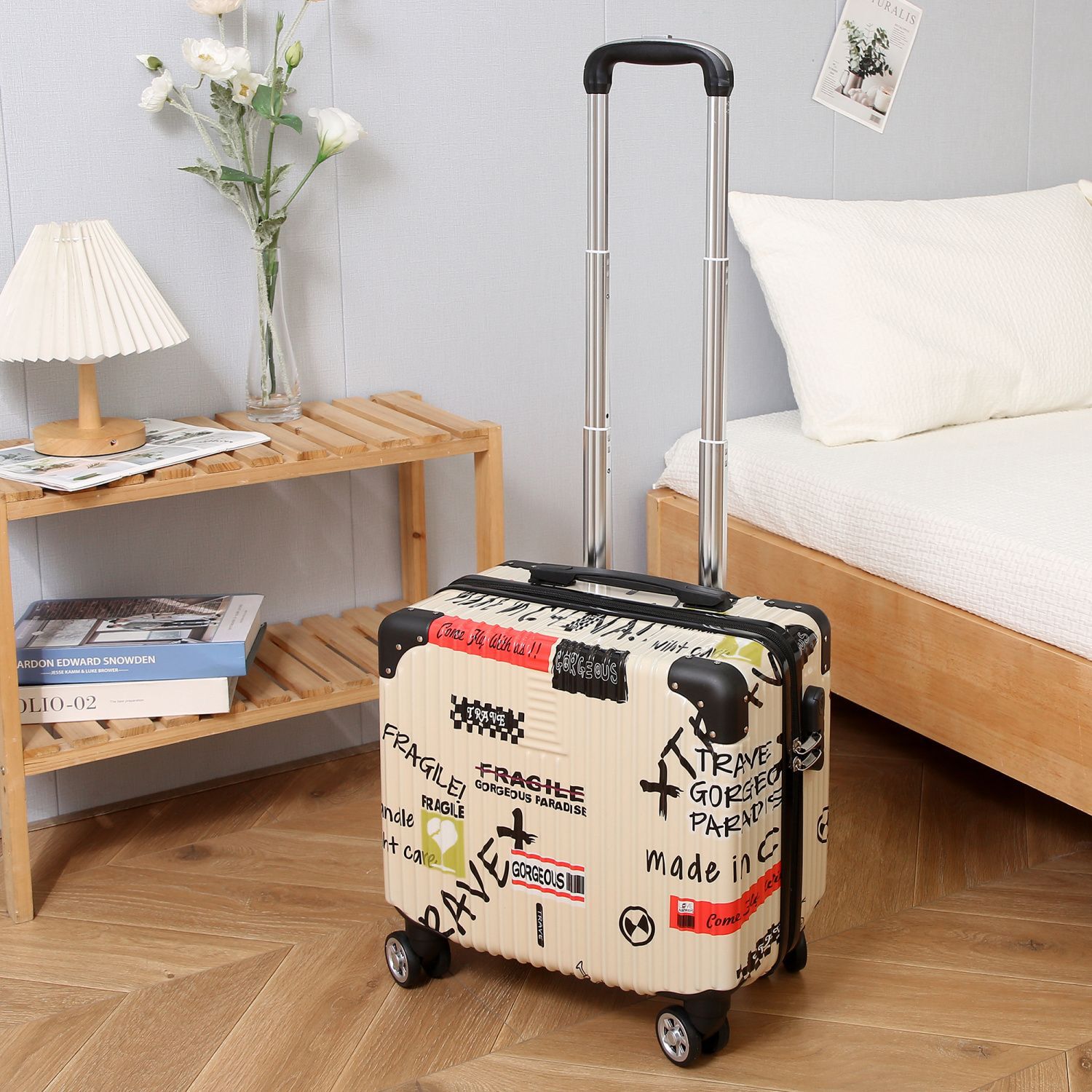 수하물 케이스 남성과 여성의 18 인치 미니 만화 낙서 내구성 비밀번호 수하물 케이스 학생 탑승 여행 트롤리 케이스스토어 가기