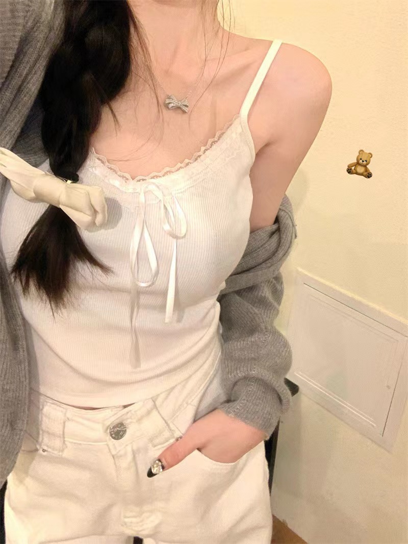 순수한 욕망 레이스 바느질 V 넥 여성용 카미 솔 스파이스 소녀 활 슬림 핏 슬리밍 이너 탑 여성스토어 가기