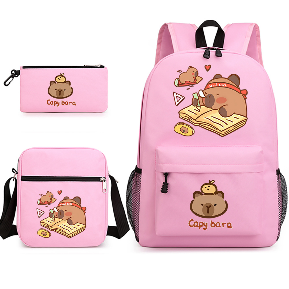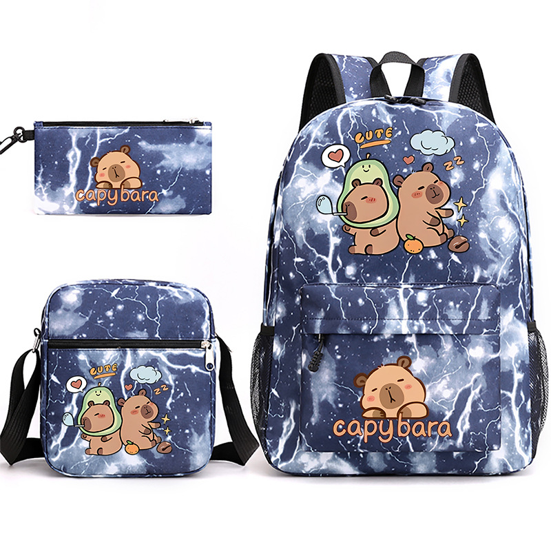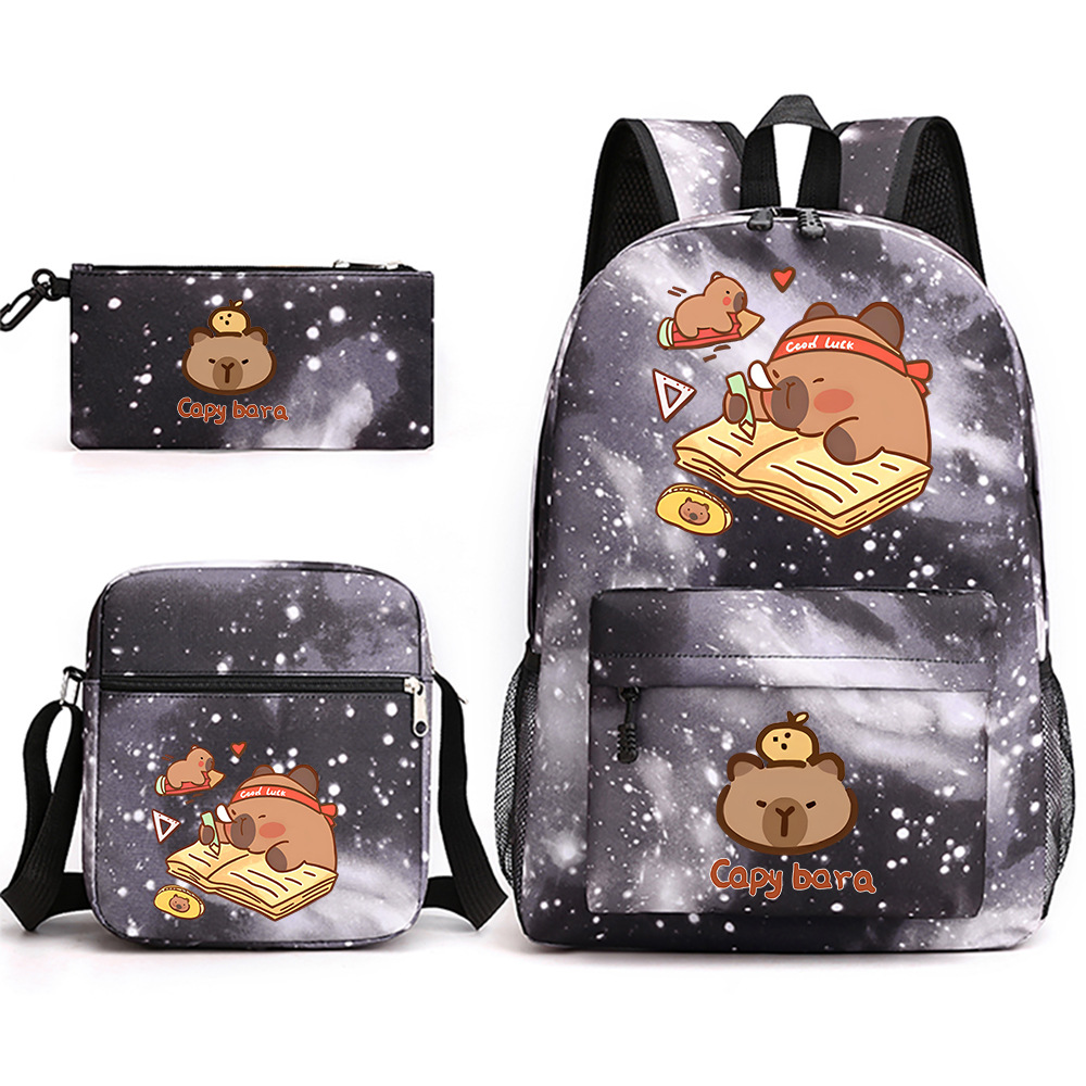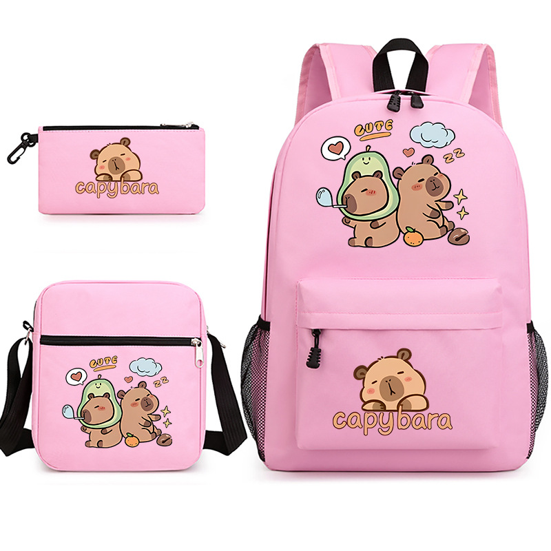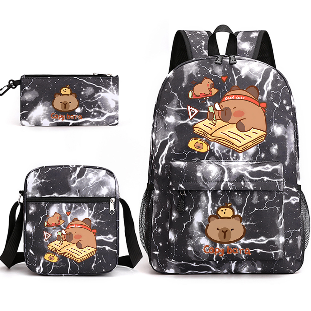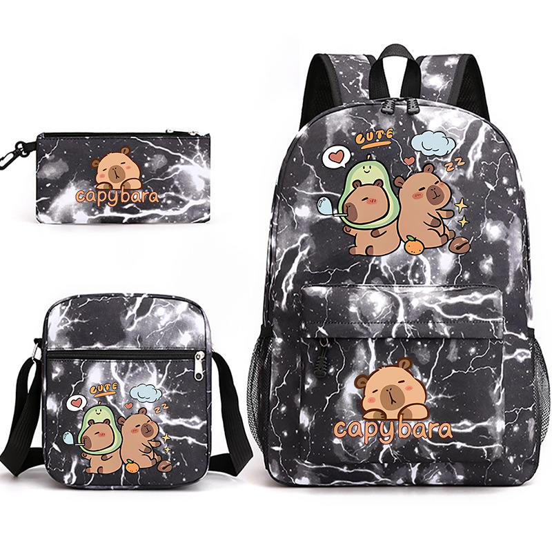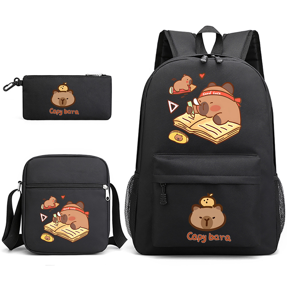 귀여운 동물 카피 발라 카피 바라 인쇄 배낭 어깨 연필 가방 학생 Schoolbag 3 피스 세트스토어 가기