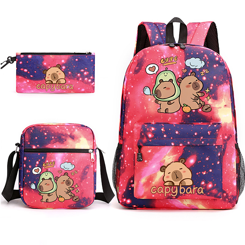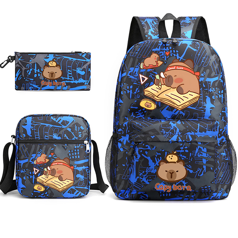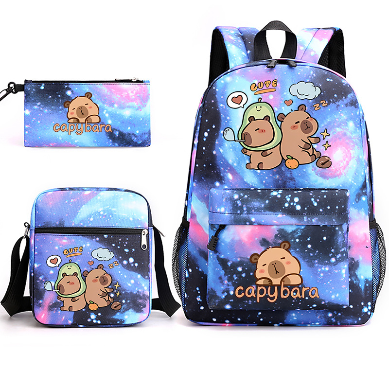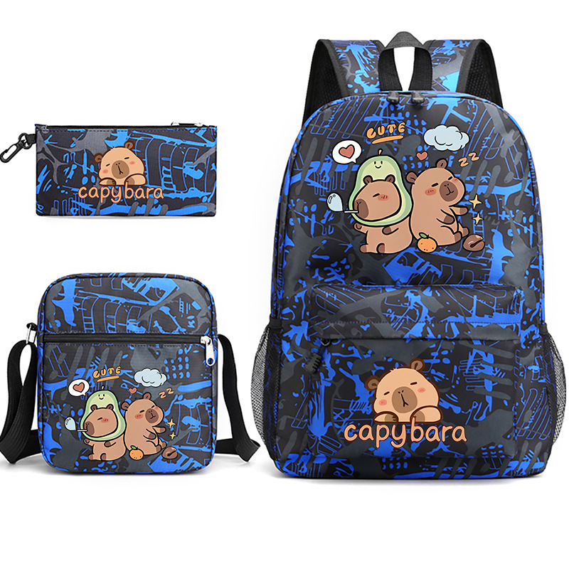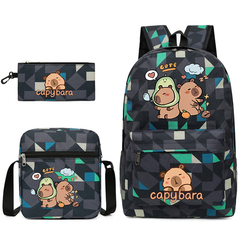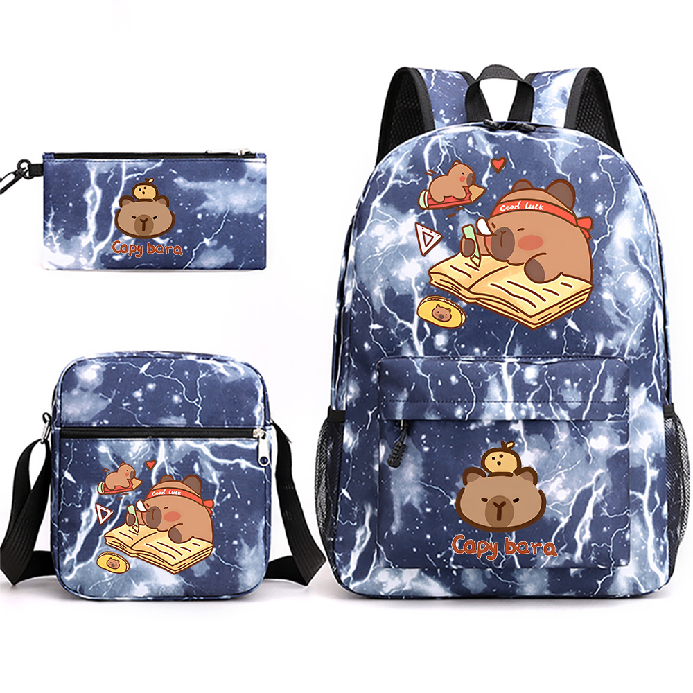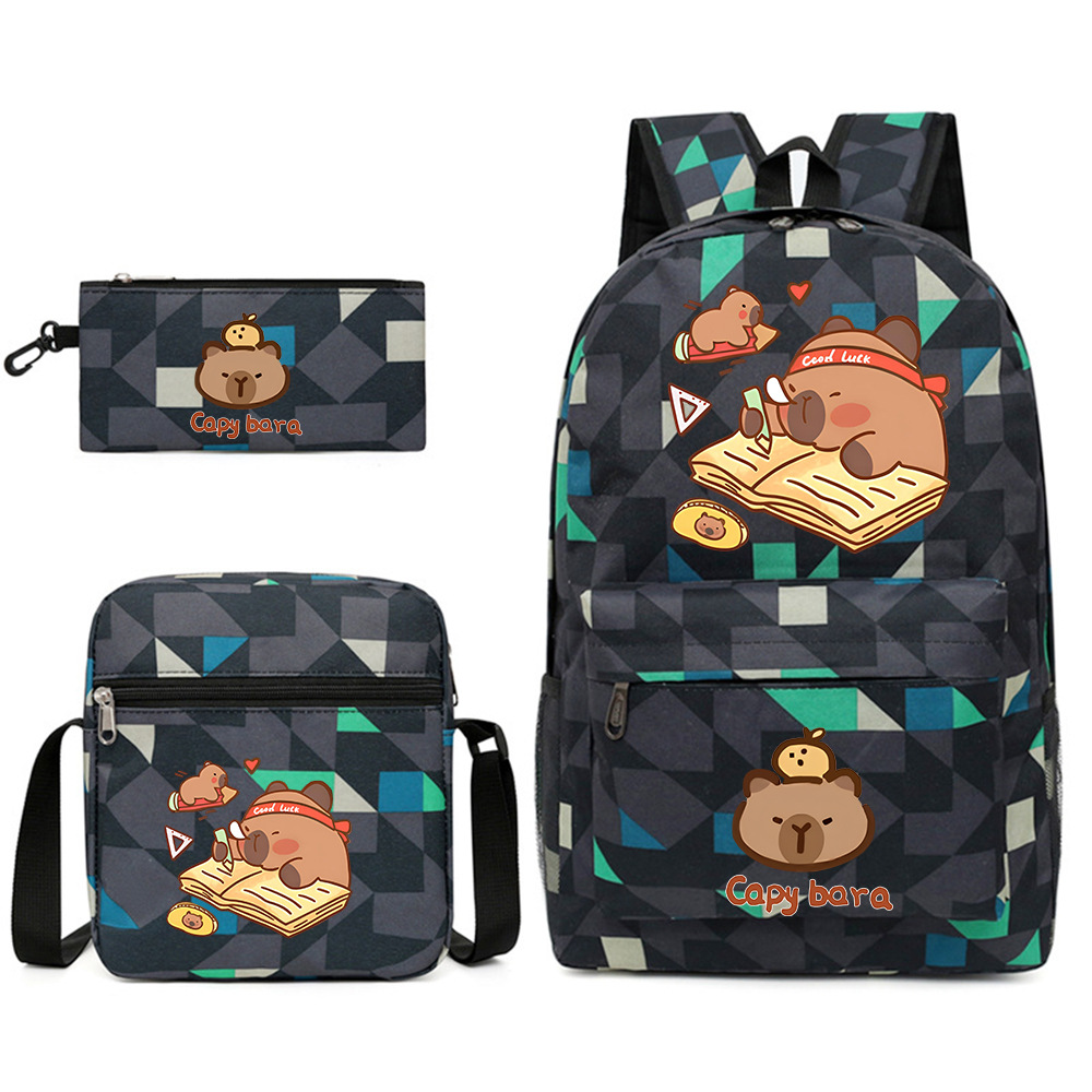 귀여운 동물 카피 발라 카피 바라 인쇄 배낭 어깨 연필 가방 학생 Schoolbag 3 피스 세트스토어 가기