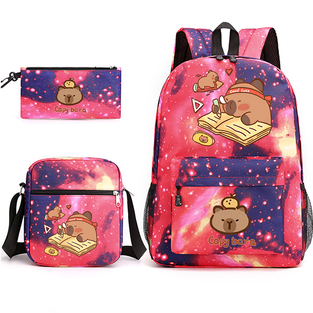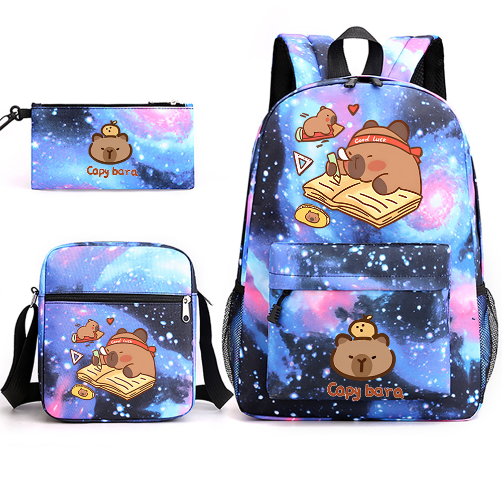 귀여운 동물 카피 발라 카피 바라 인쇄 배낭 어깨 연필 가방 학생 Schoolbag 3 피스 세트