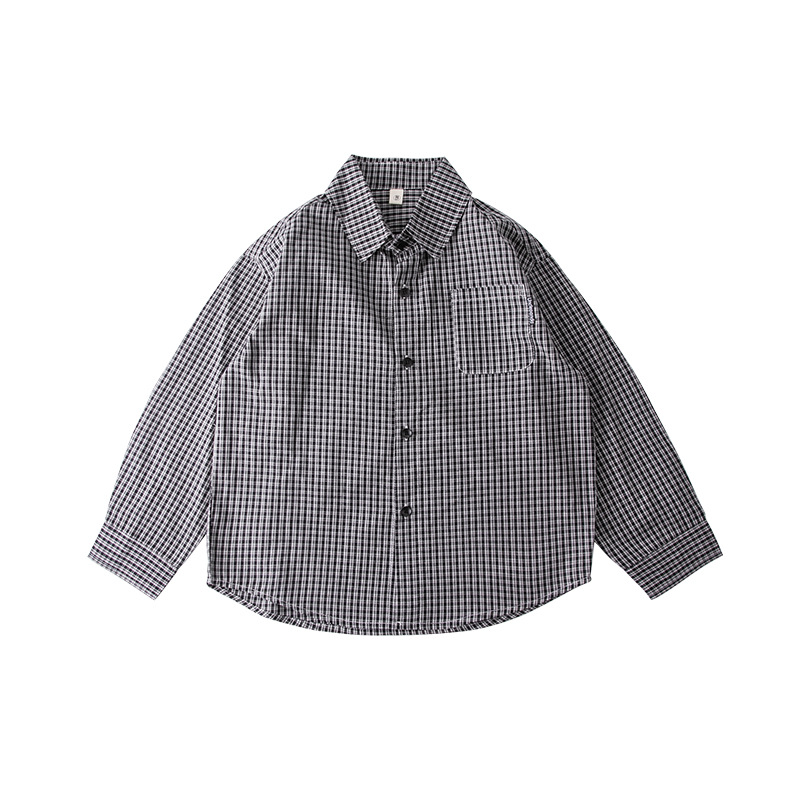 신상 남아 긴팔 셔츠, 캐주얼 루즈 셔츠, 라펠 아동 복고풍 상의, 트렌디한 원피스 드롭쉬핑