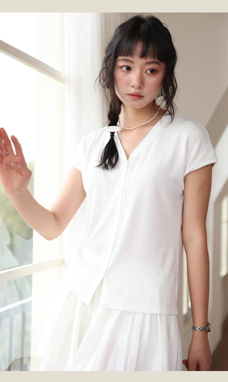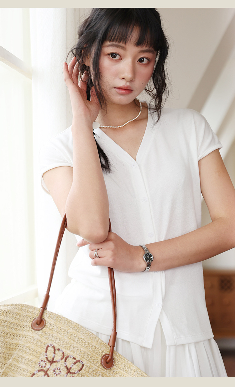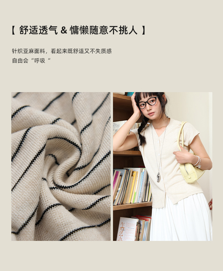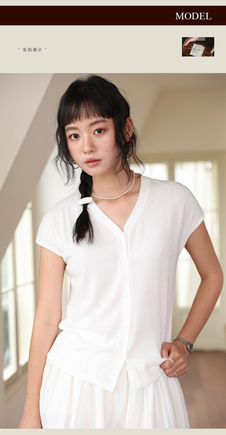 봄과 여름 텐셀 라이오셀베이스 셔츠 여자 2025 새로운 V 넥 리넨 티셔츠 피부 친화적 인 버튼 카디건 반소매 탑