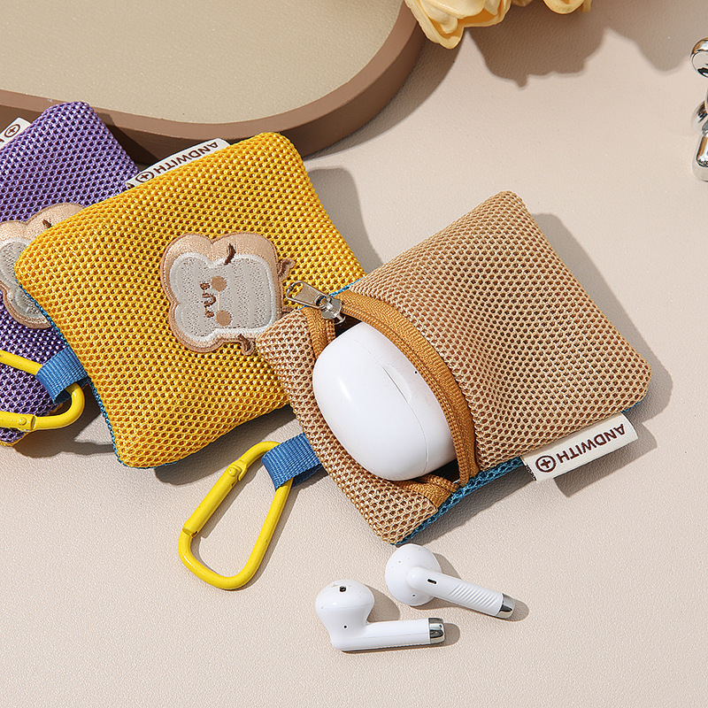 귀여운 만화 이어폰 가방 미니 저장 가방 키 체인 가방 펜던트 소녀 인형 동전 지갑 이어폰 보호 커버
