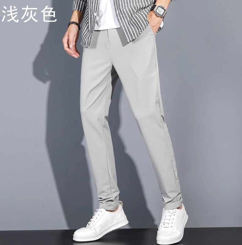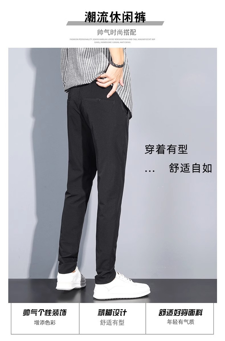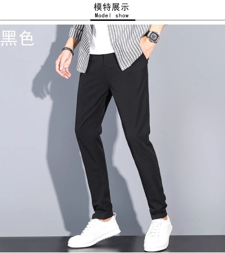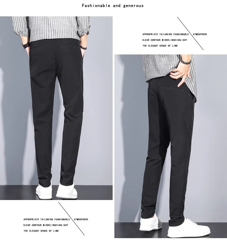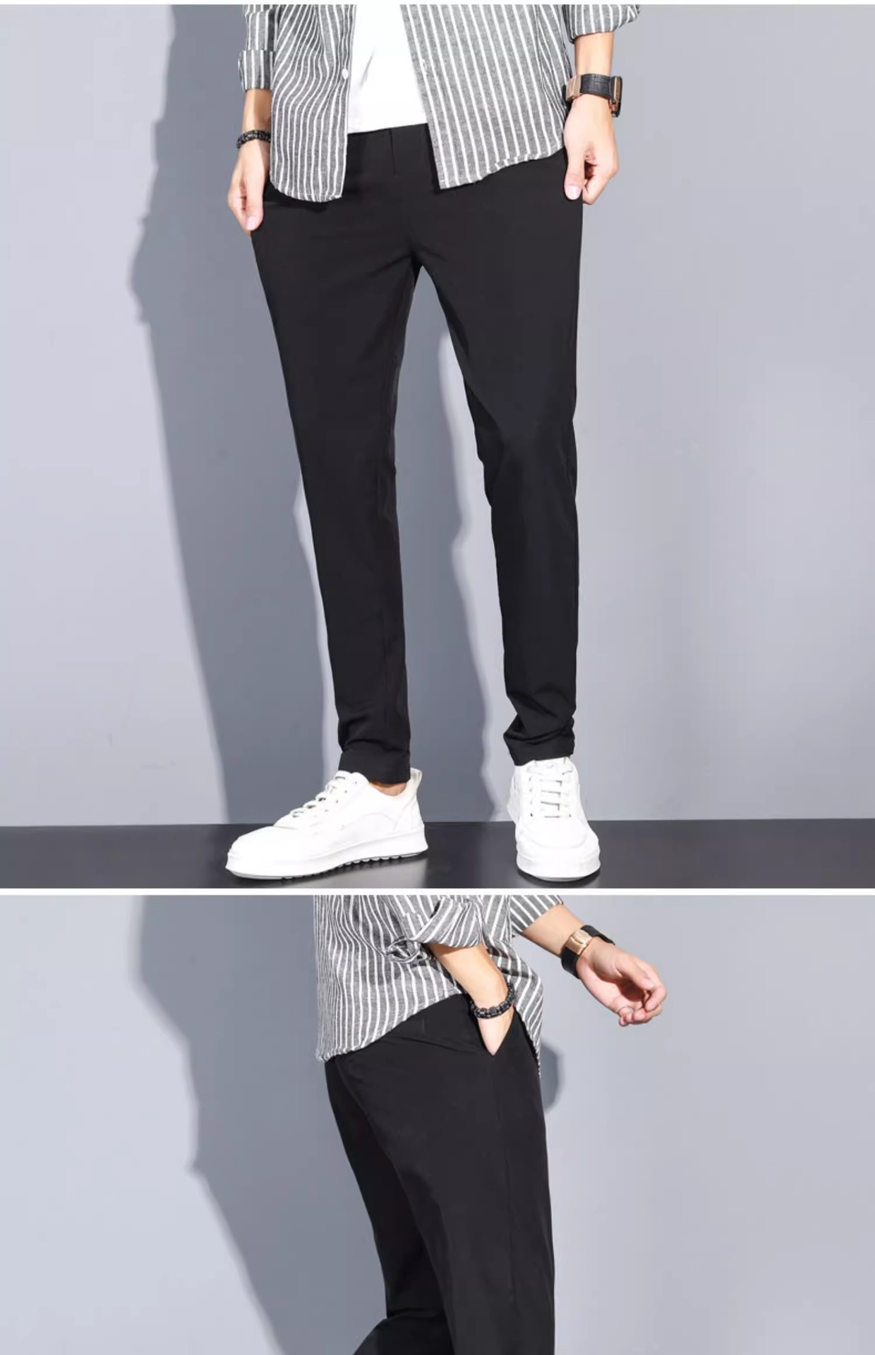 남성 캐주얼 바지 여름 스트레이트 바지 슬림 바지 얇은 스트레치 비즈니스 소년 검은 바지 남성 새로운 스타일스토어 가기