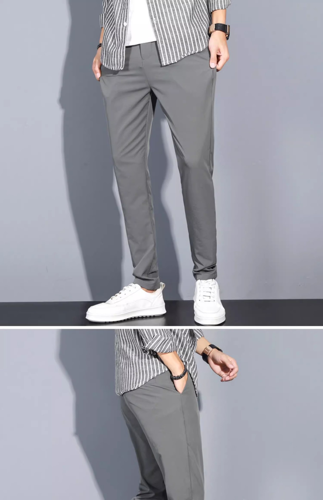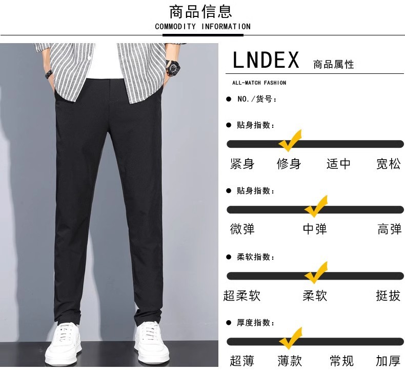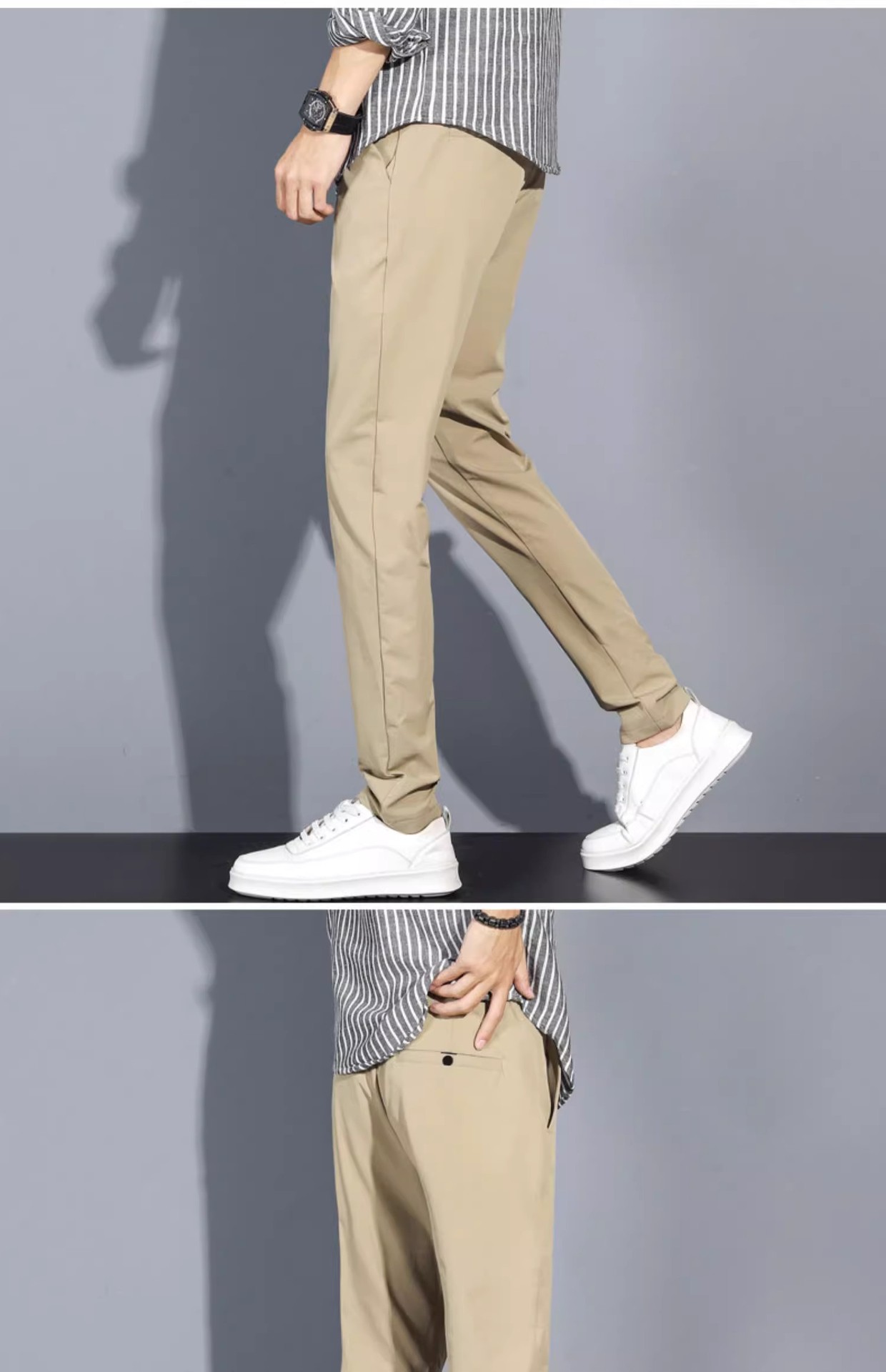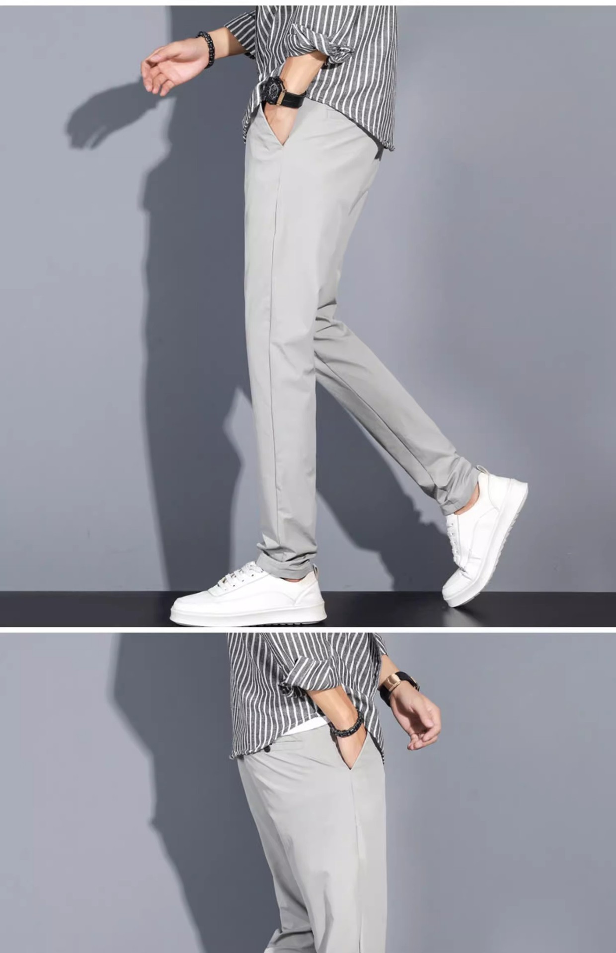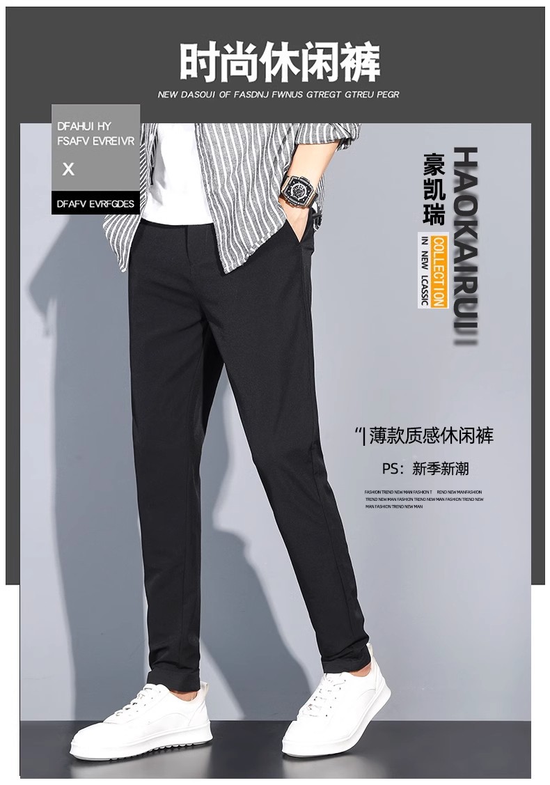 남성 캐주얼 바지 여름 스트레이트 바지 슬림 바지 얇은 스트레치 비즈니스 소년 검은 바지 남성 새로운 스타일스토어 가기