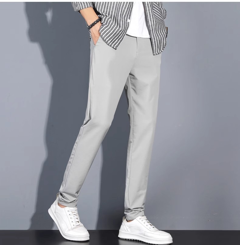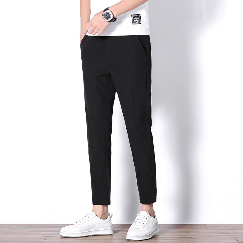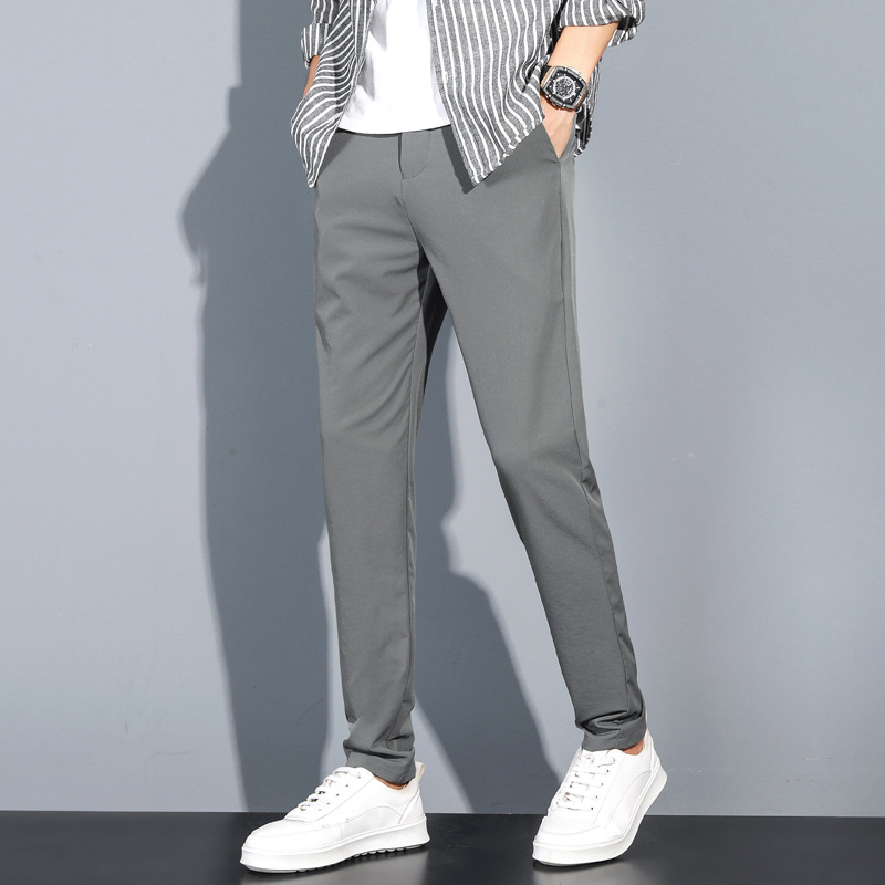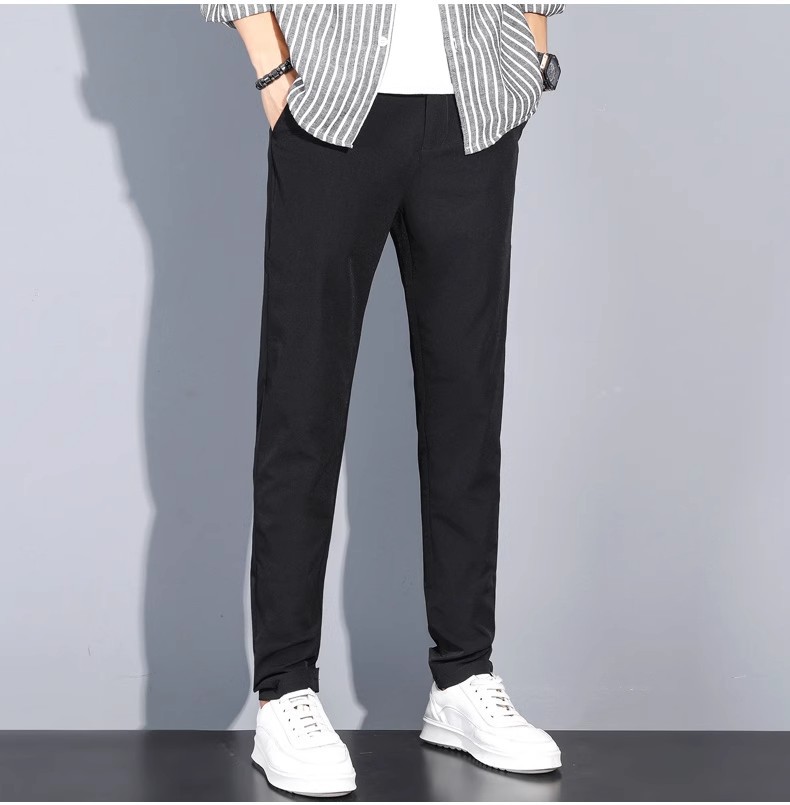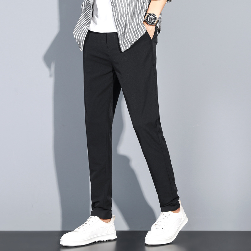 남성 캐주얼 바지 여름 스트레이트 바지 슬림 바지 얇은 스트레치 비즈니스 소년 검은 바지 남성 새로운 스타일