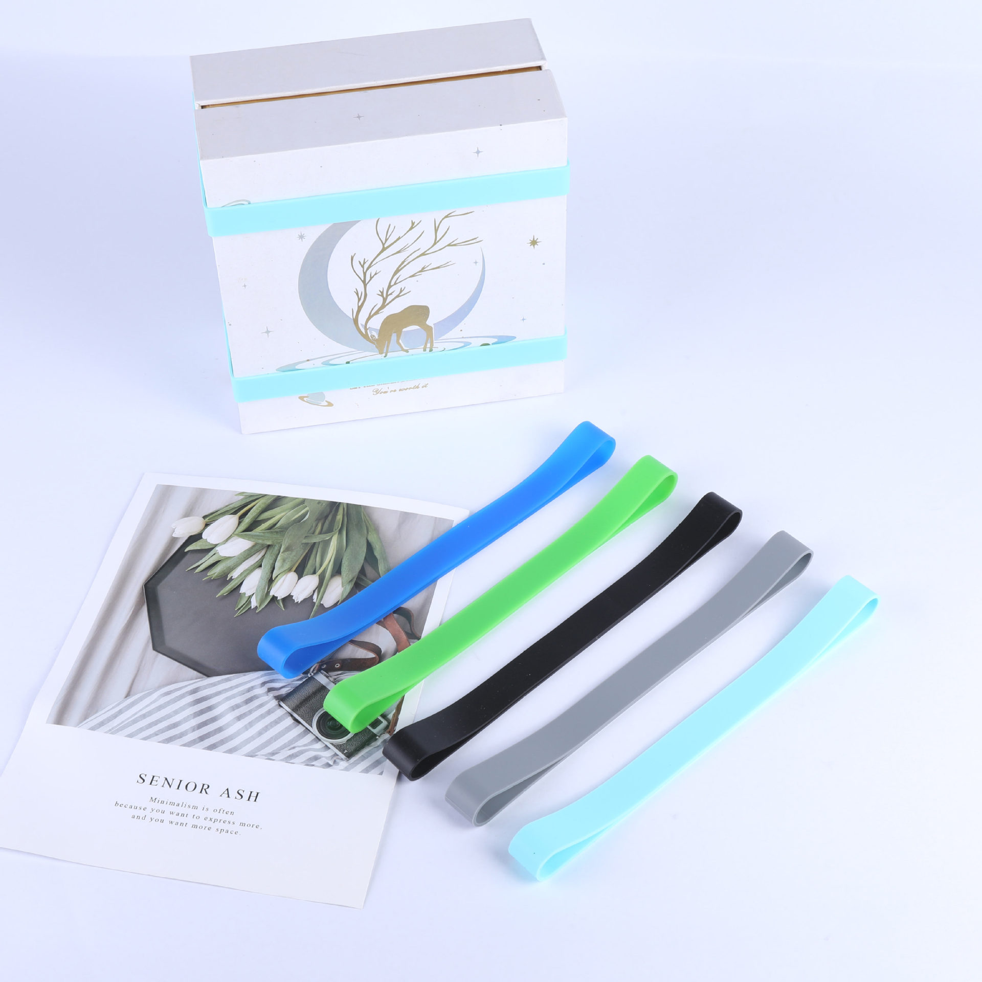 고품질 실리콘 스트랩 15/18/20/25mm 폭 인쇄 종이 상자 포장 적합
