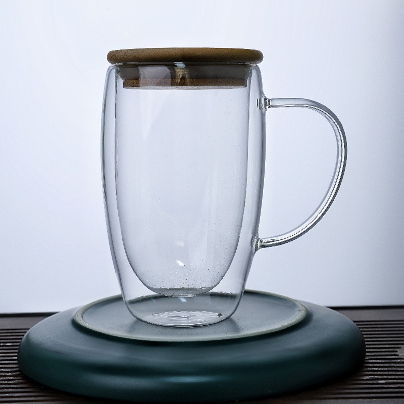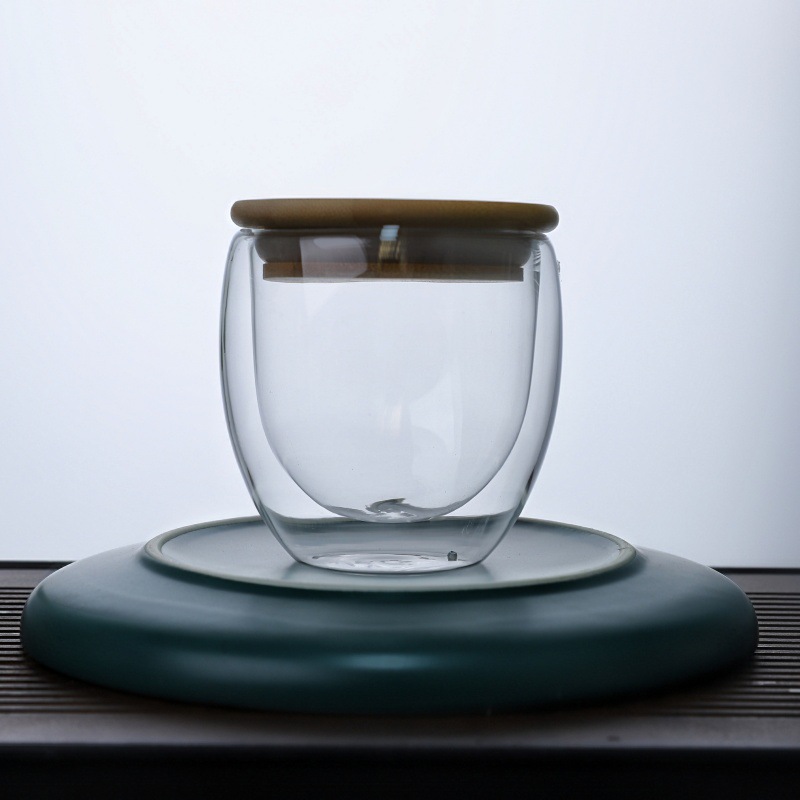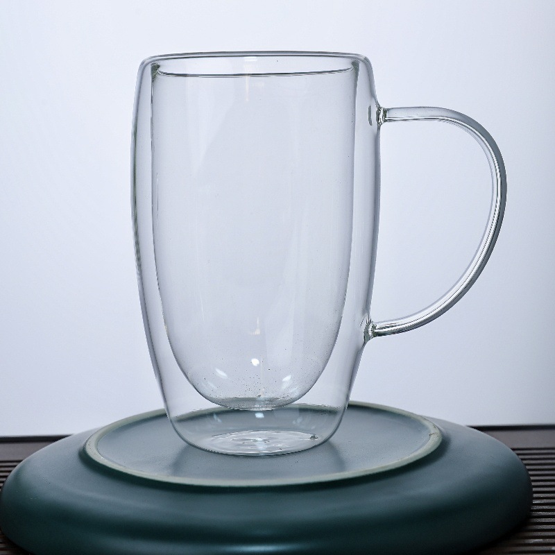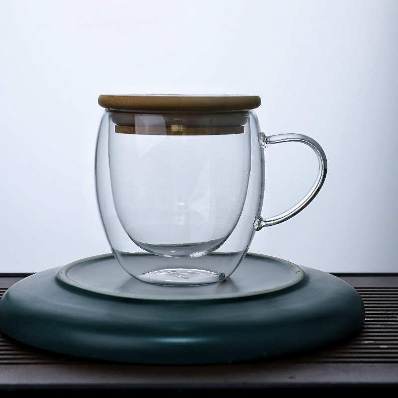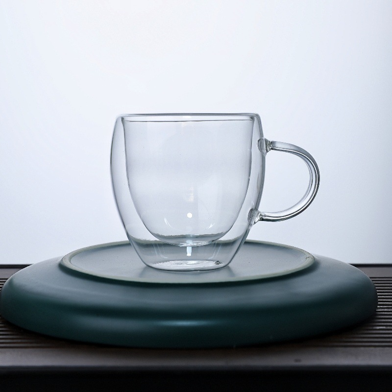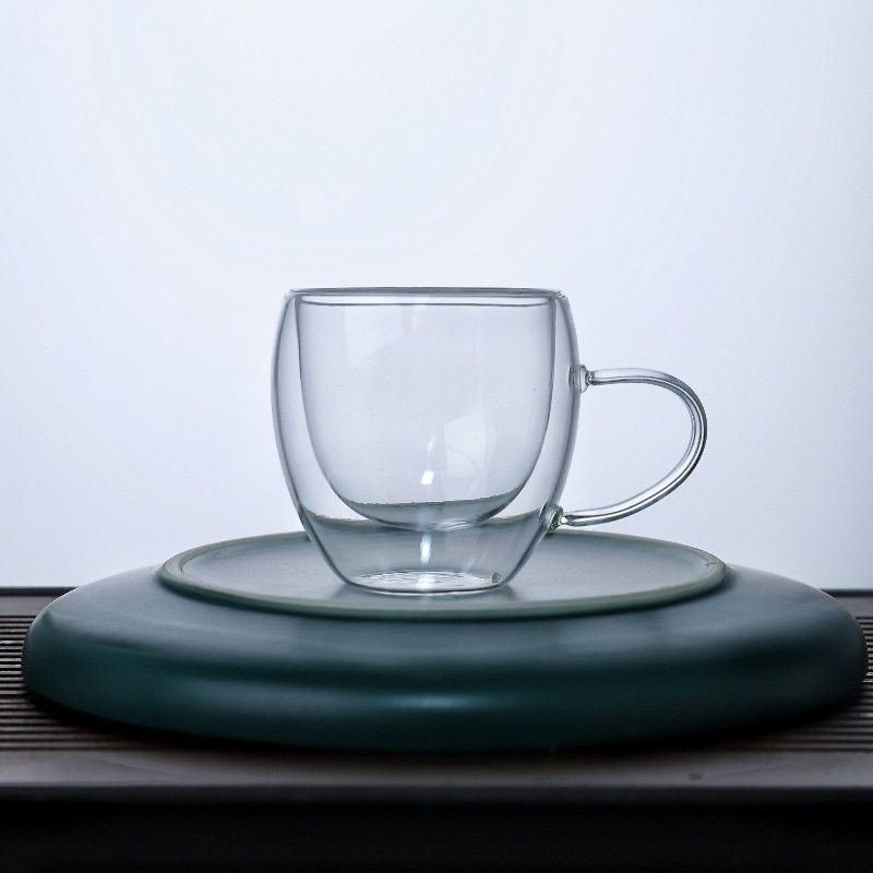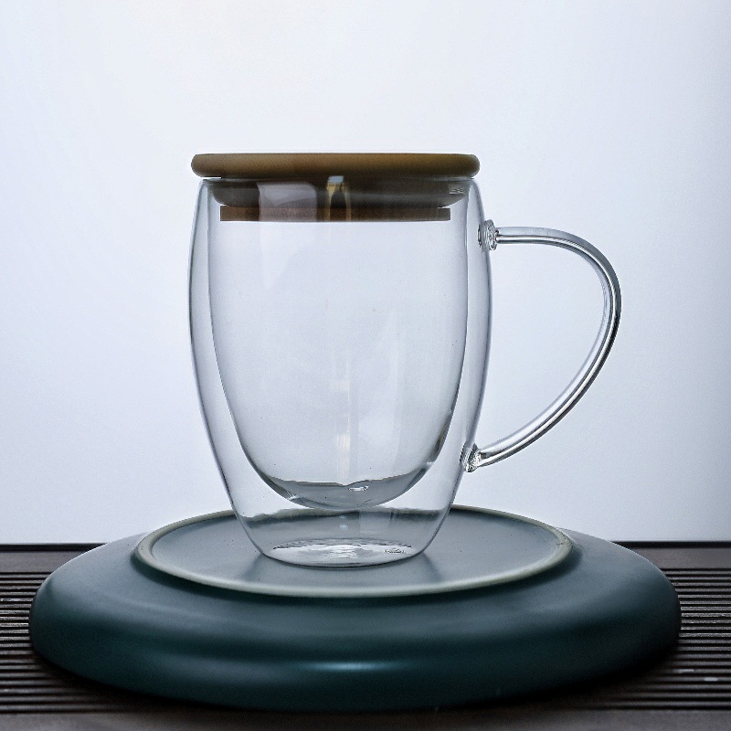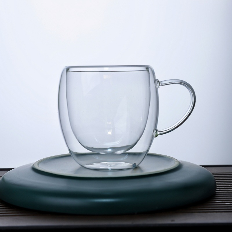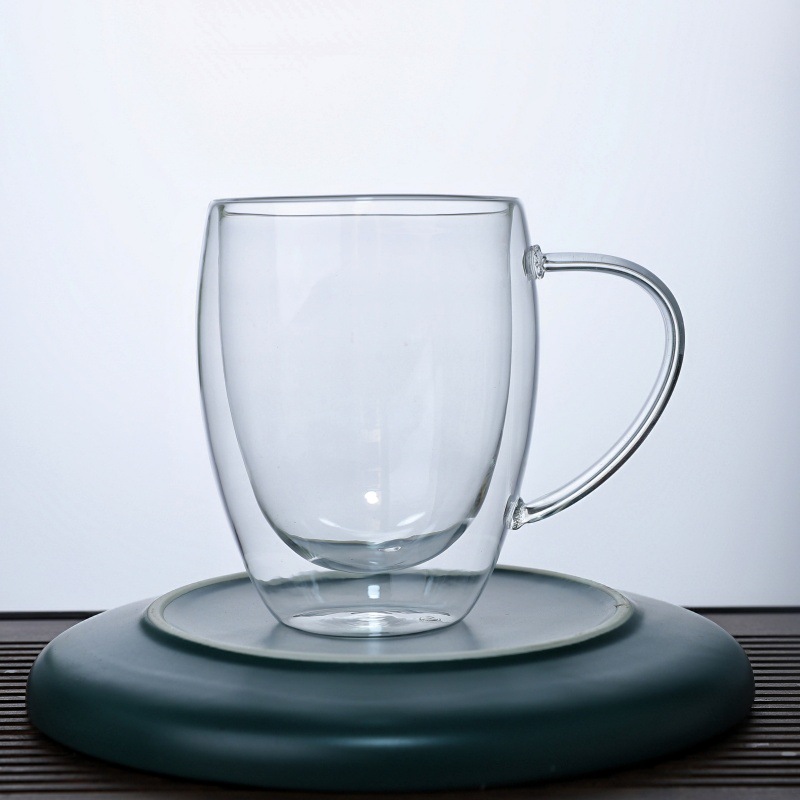 내열성 우유 커피 컵 이중층 절연 음료 컵 두꺼운 고붕규산 유리 투명 달걀 모양의 이중층 컵