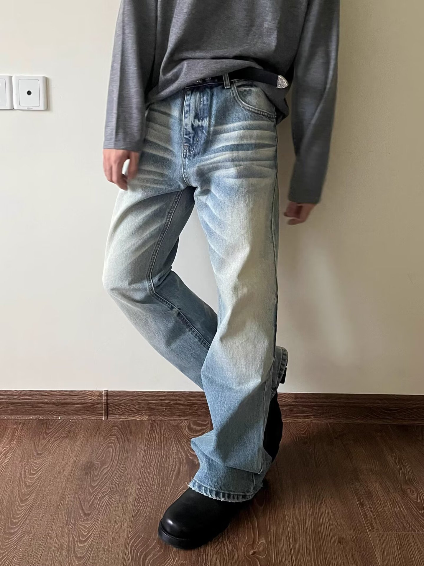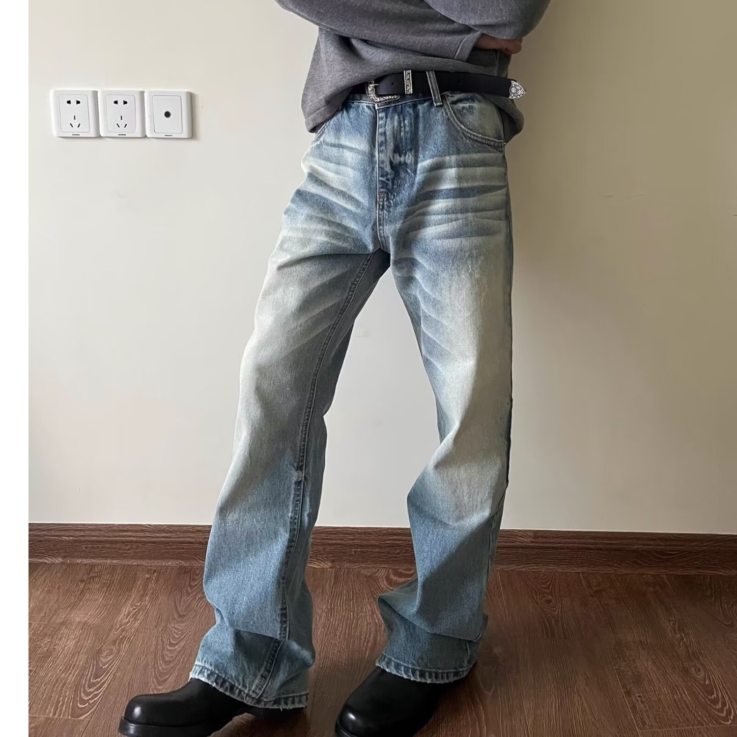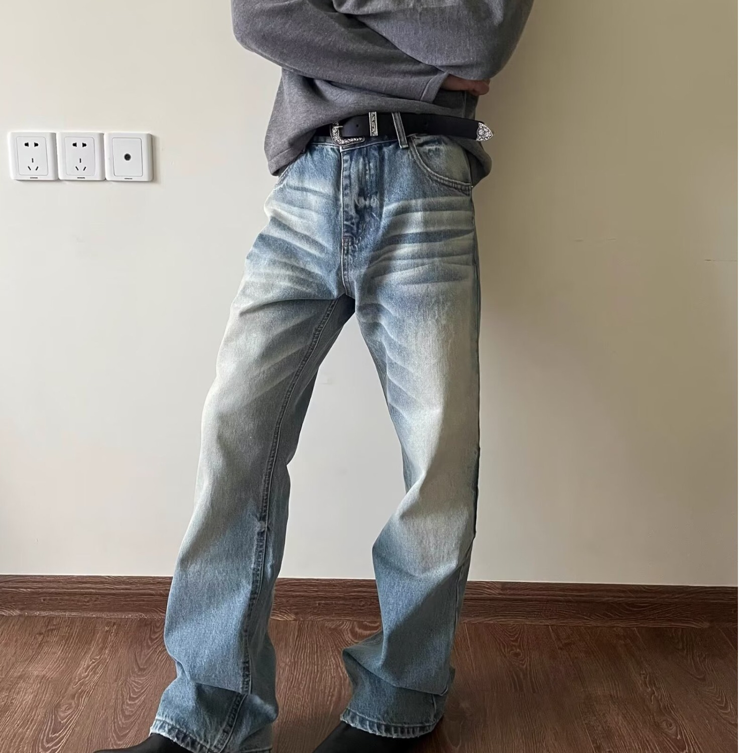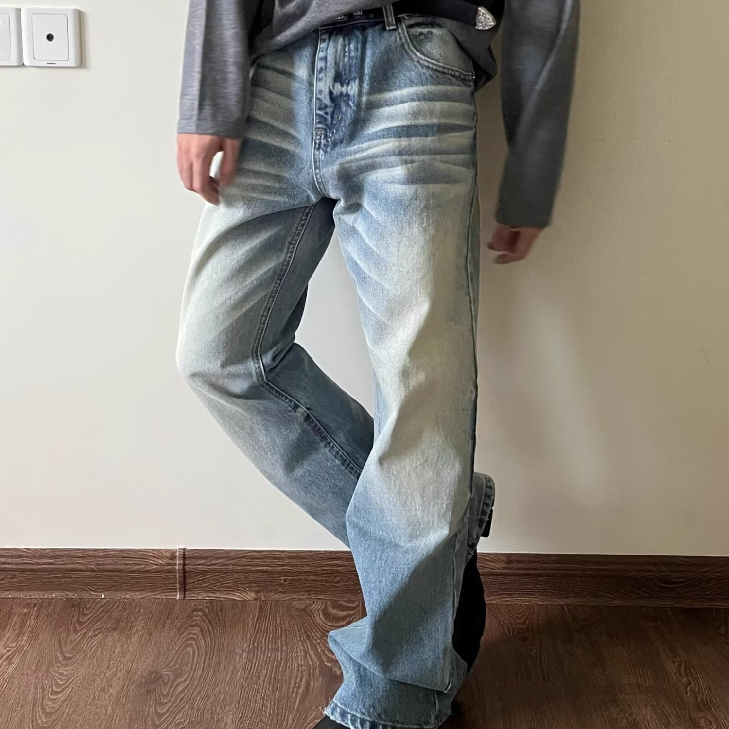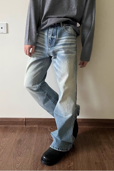 하이 스트리트 아메리칸 스타일 빈티지 올드 청바지 남성용 느슨한 스트레이트 약간 맞는 바지스토어 가기