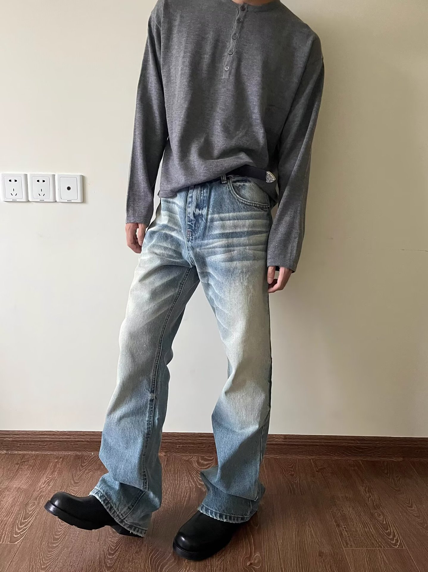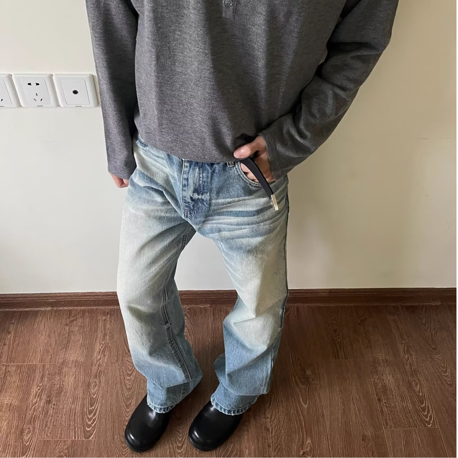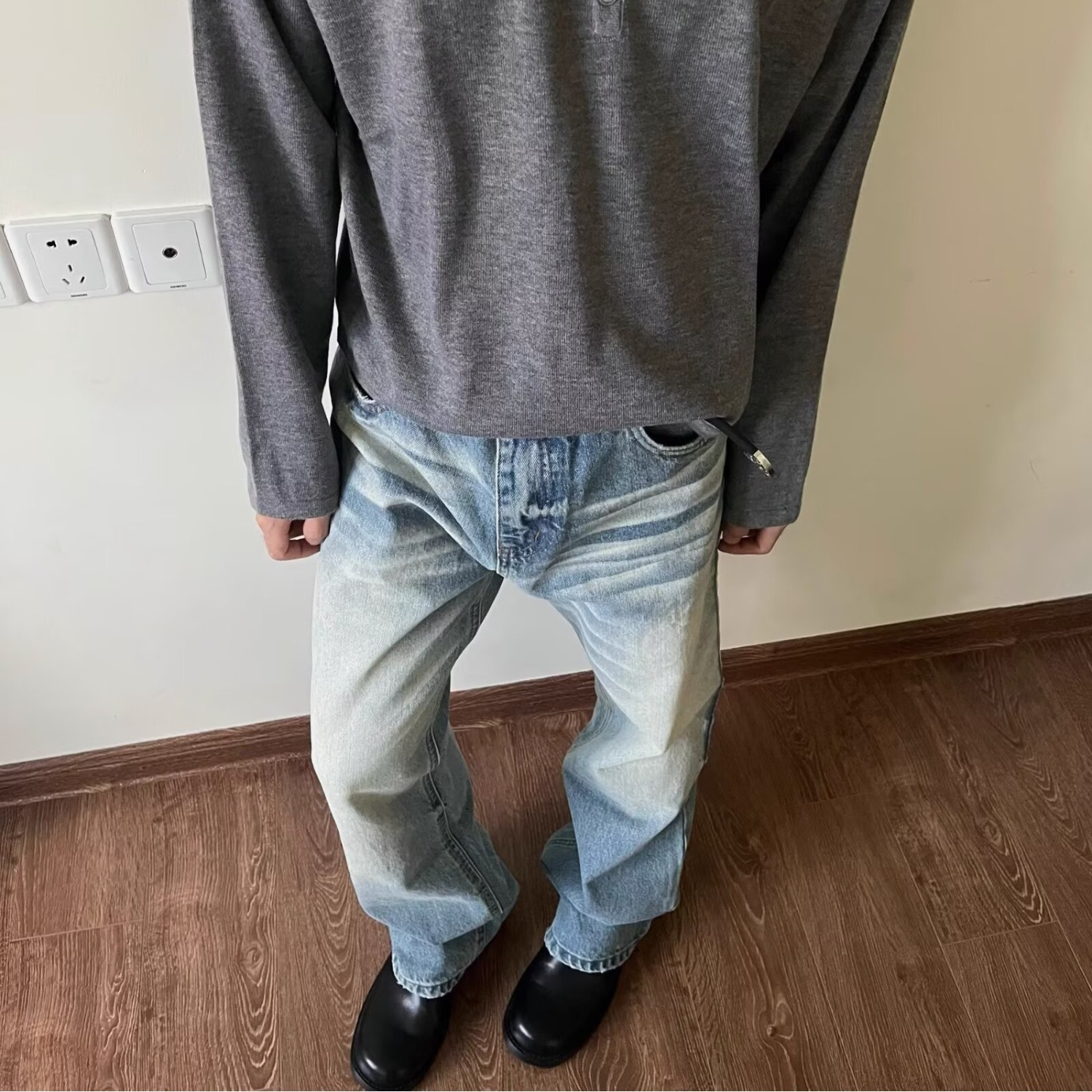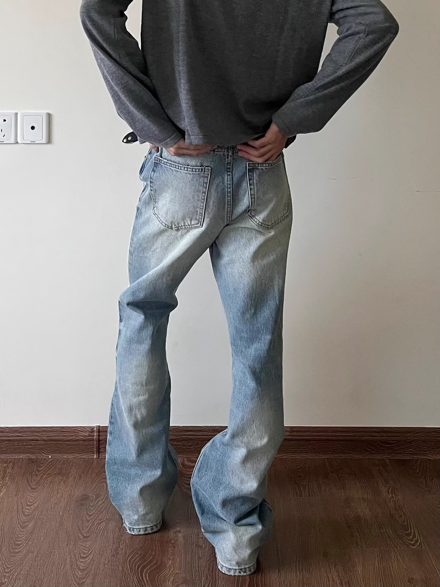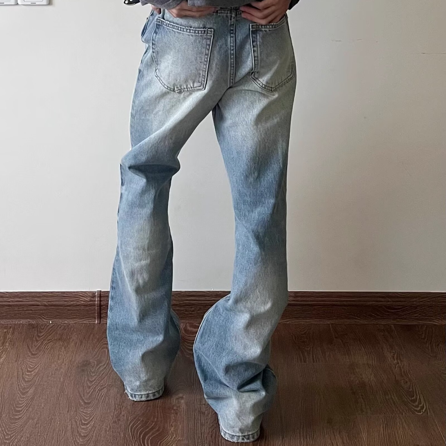 하이 스트리트 아메리칸 스타일 빈티지 올드 청바지 남성용 느슨한 스트레이트 약간 맞는 바지스토어 가기