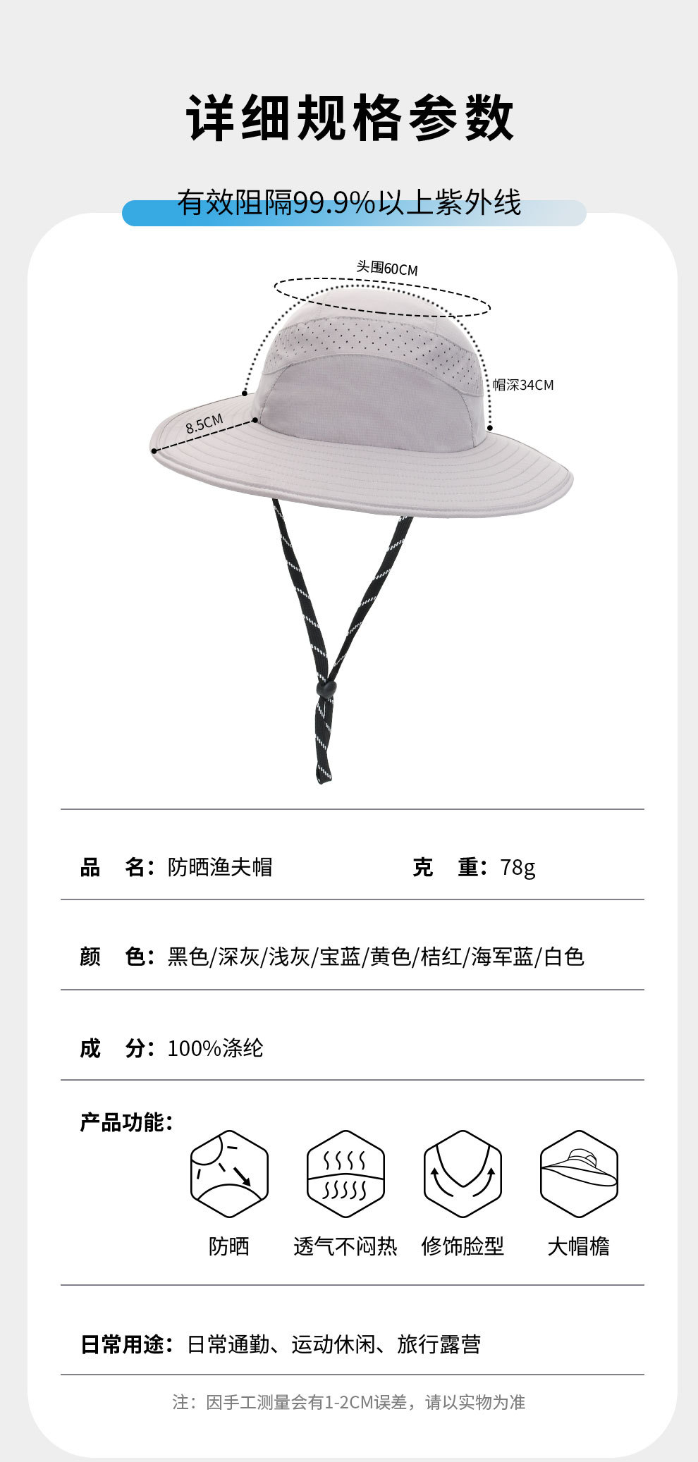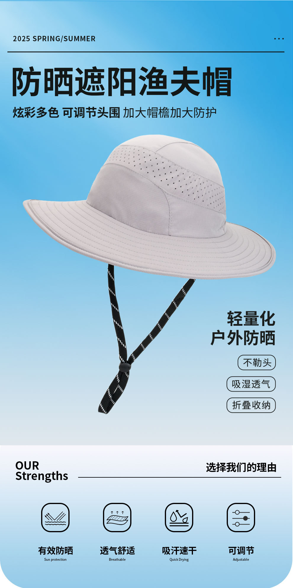 여름 야외 태양 모자 등산 낚시 레저 통기성 큰 가장자리 태양 모자 남자의 빠른 건조 어부 모자