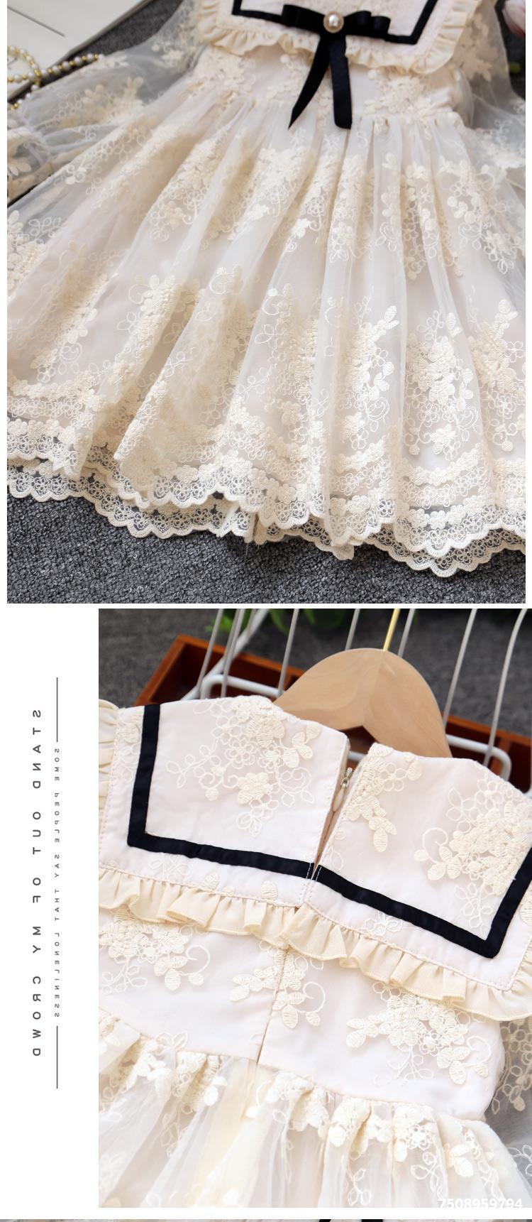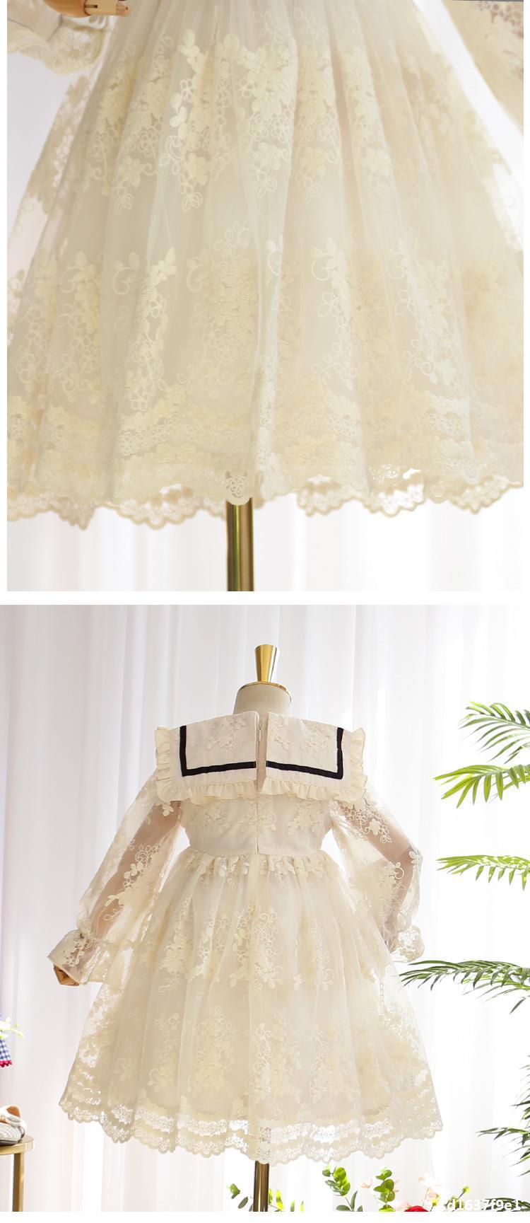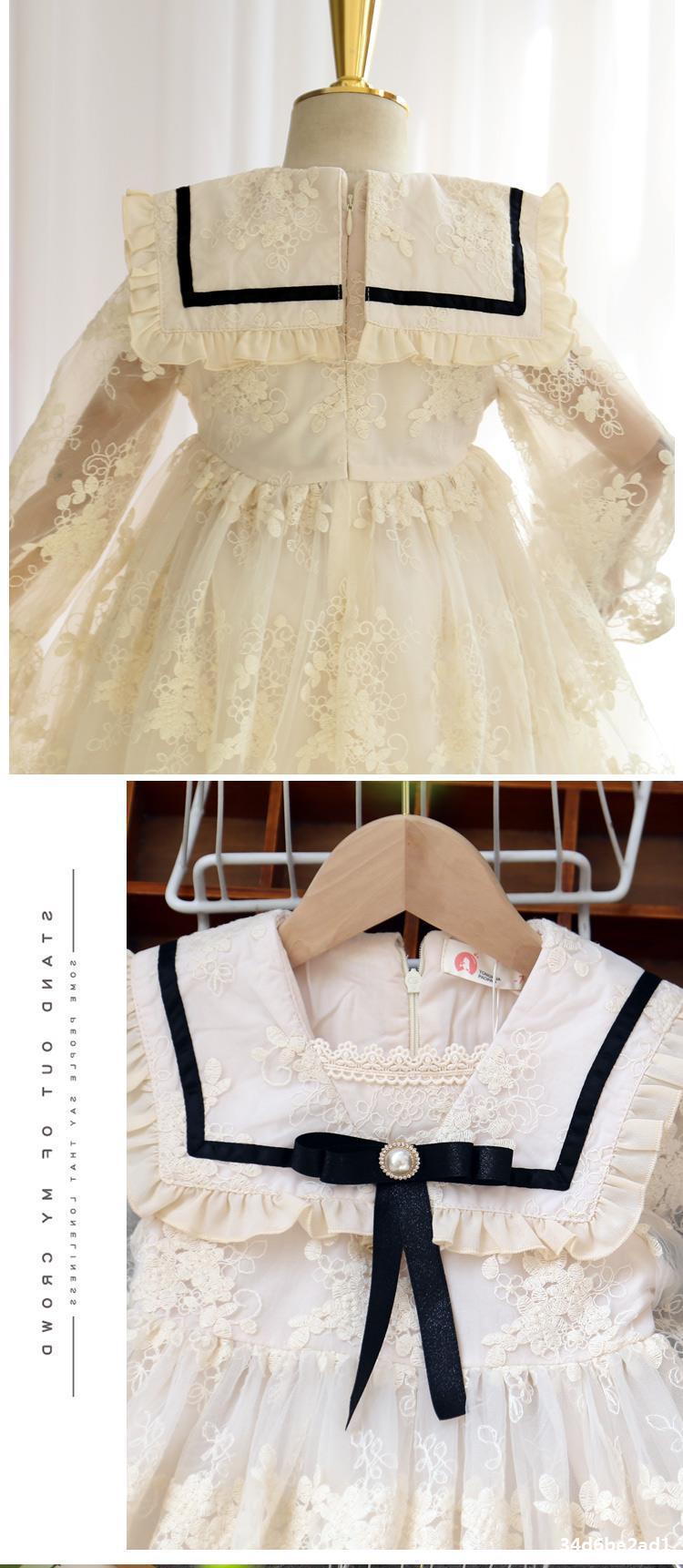 2025 여자 긴 소매 레이스 드레스 새로운 어린이 활 메쉬 공주 드레스 아기 소녀 요정 드레스