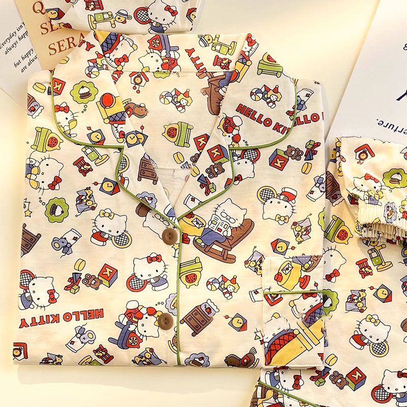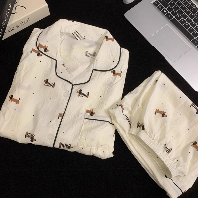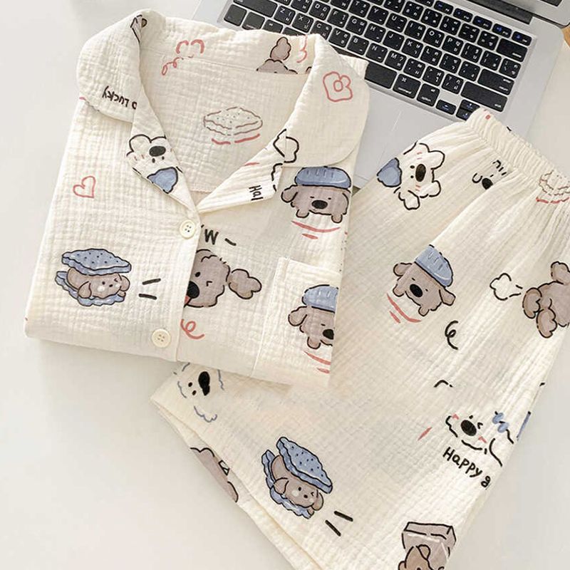 구름 코튼 파자마 여성용 반팔 여름 도파민 다채로운 사랑 달콤한 샤넬 스타일 홈 의류 세트 착용 가능스토어 가기