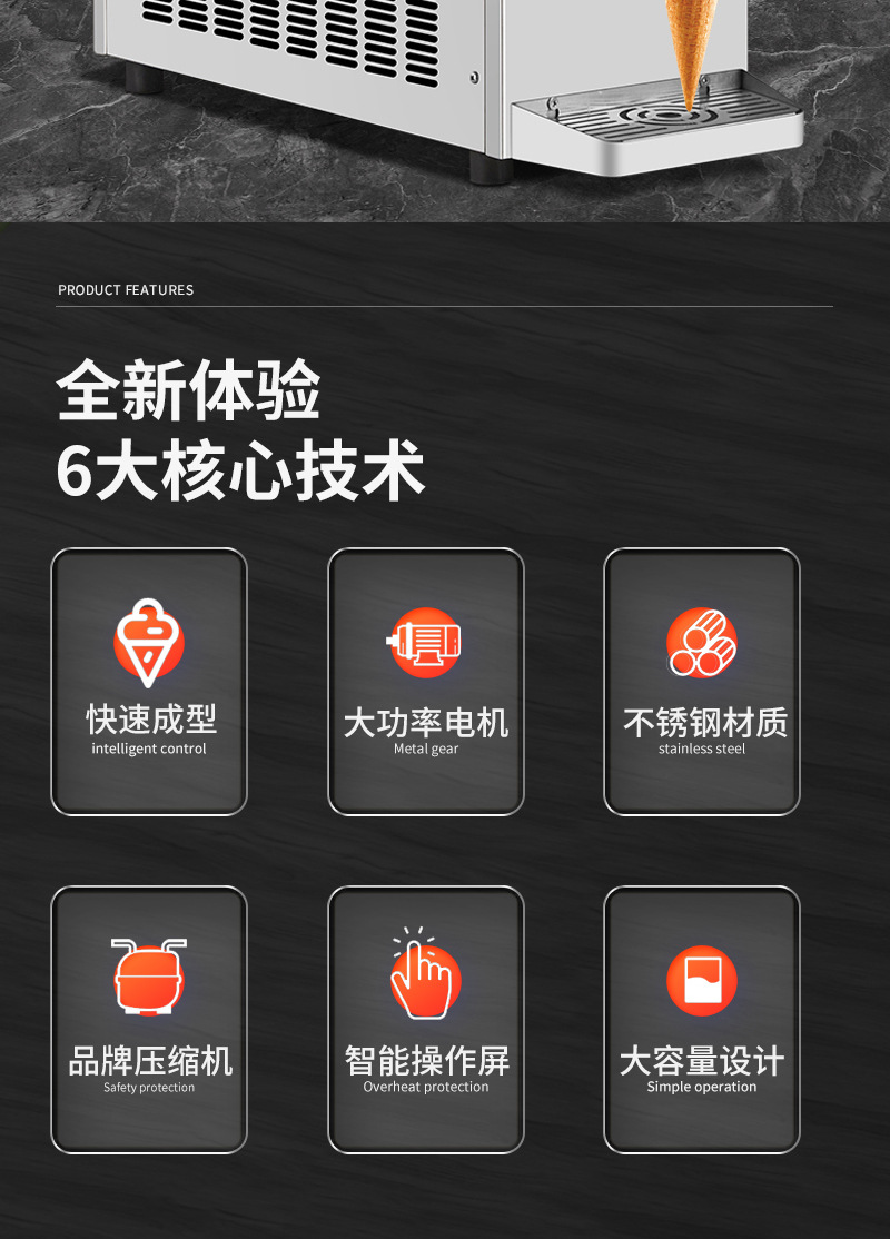 상업용 소형 아이스크림 기계, 완전 자동 바삭한 콘, 아이스크림 가판대, 밀크티 가게, 단일 헤드 아이스크림 기계