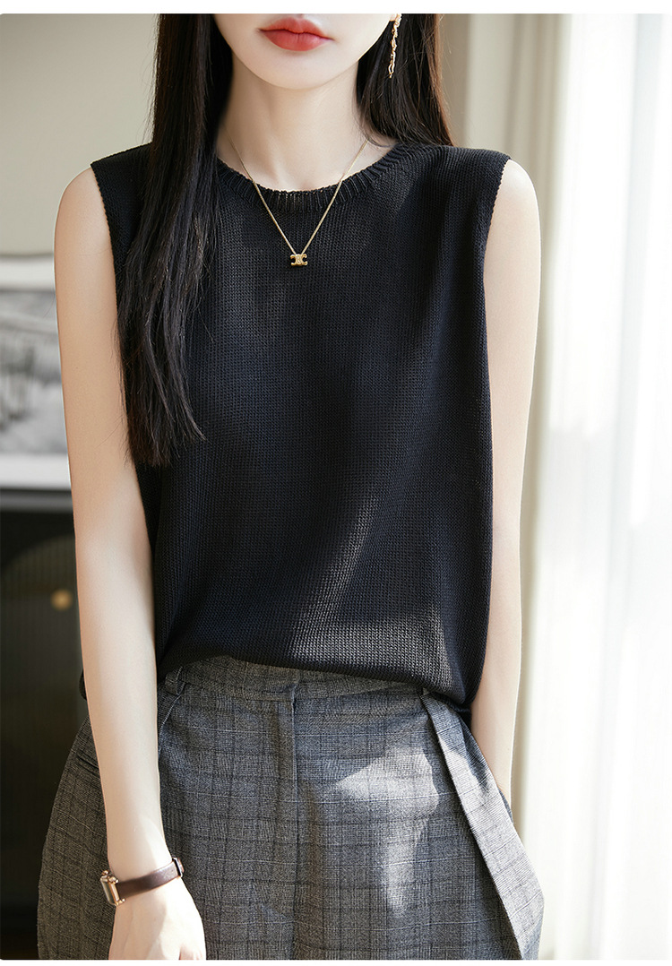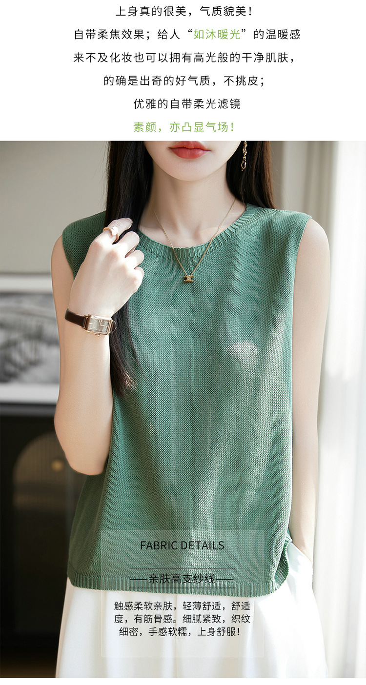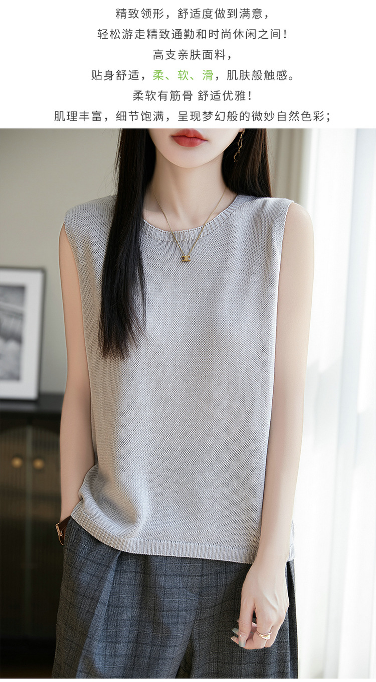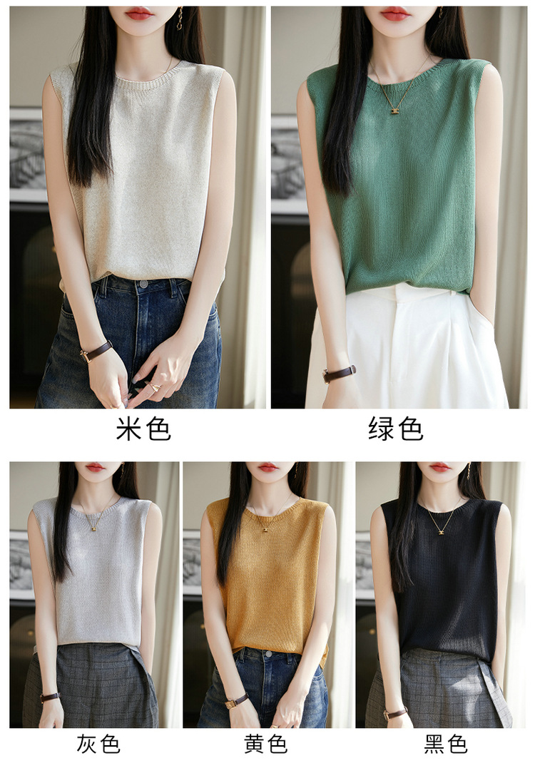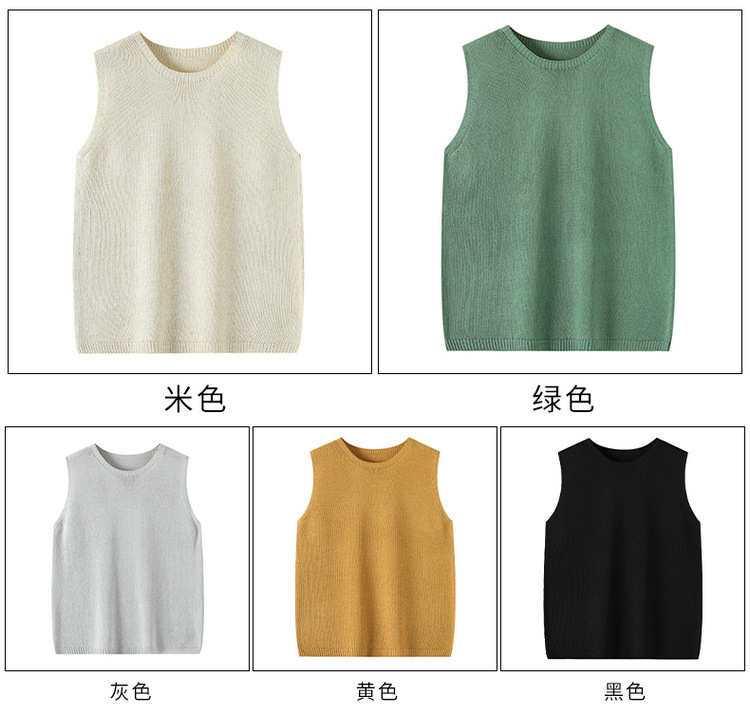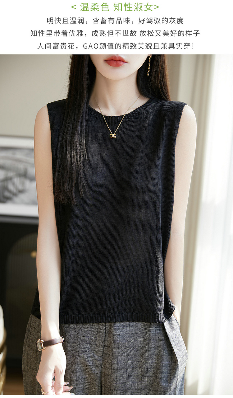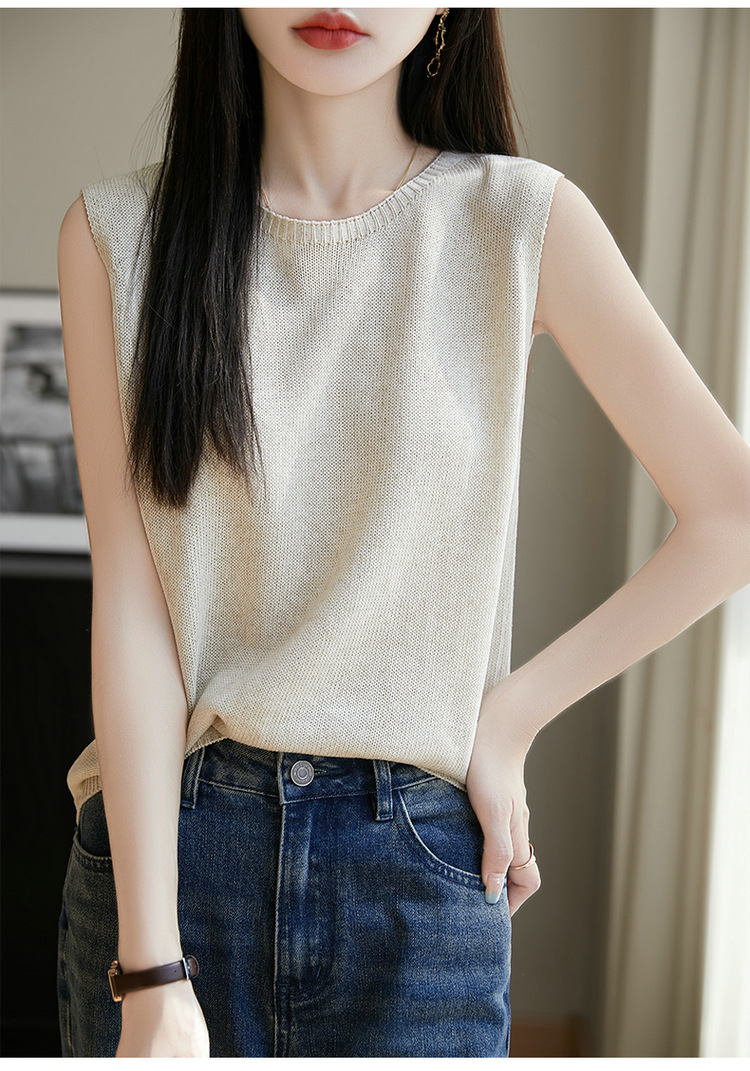 리넨 니트 조끼 뉴 2025 여름 아우터웨어 솔리드 컬러 풀오버 드래핑 크루 넥 여성용 민소매 스웨터스토어 가기