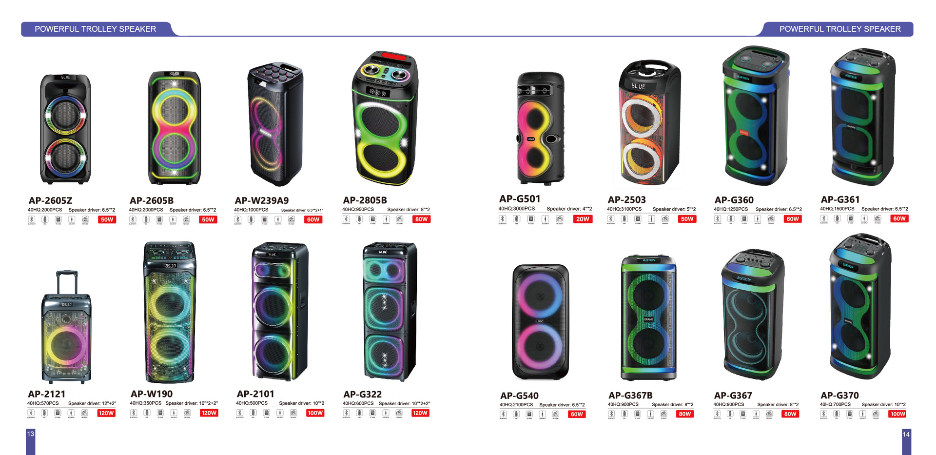 HF-Z69 复古音箱 8寸喇叭*2,50W,3.7V 2500mah