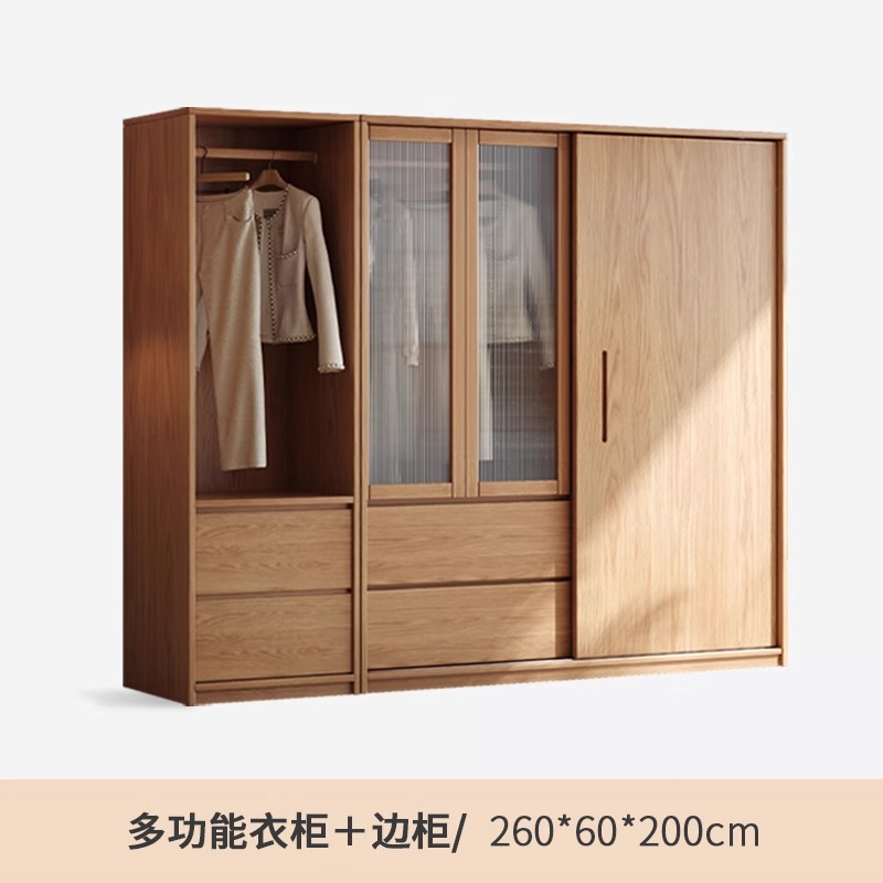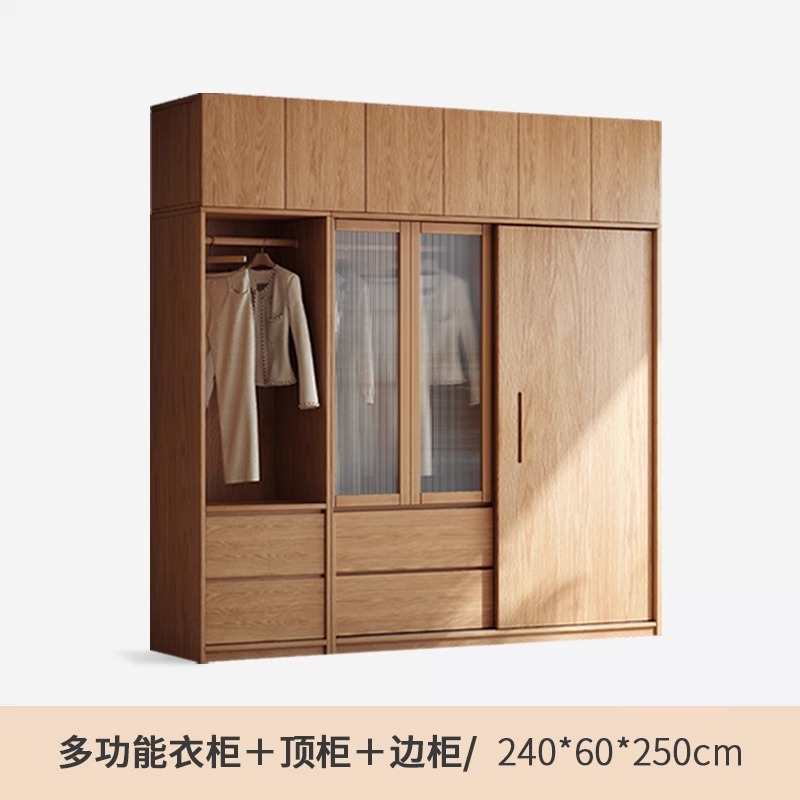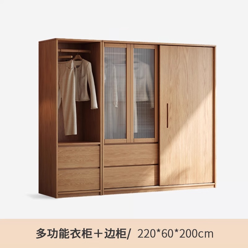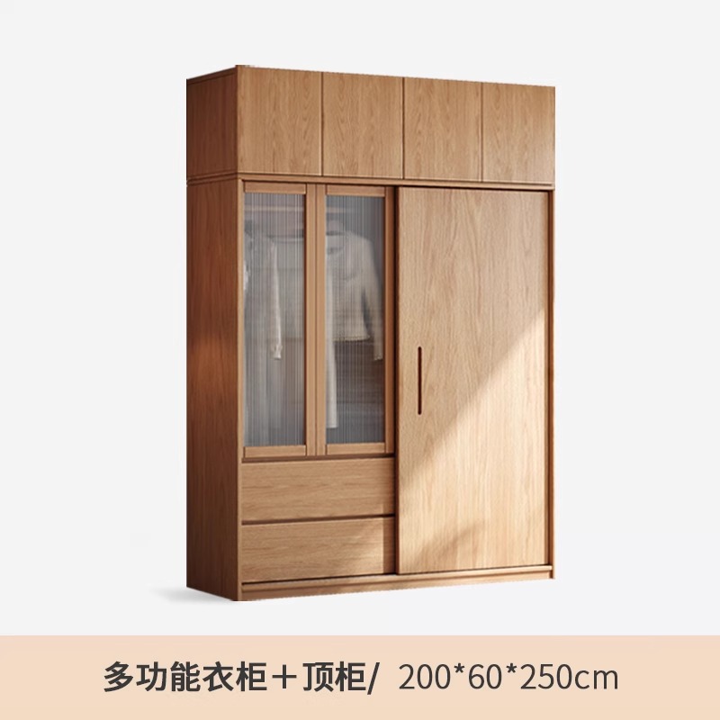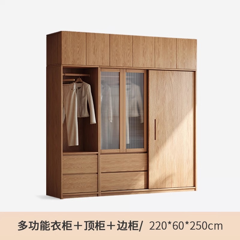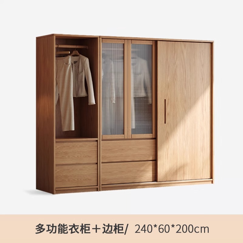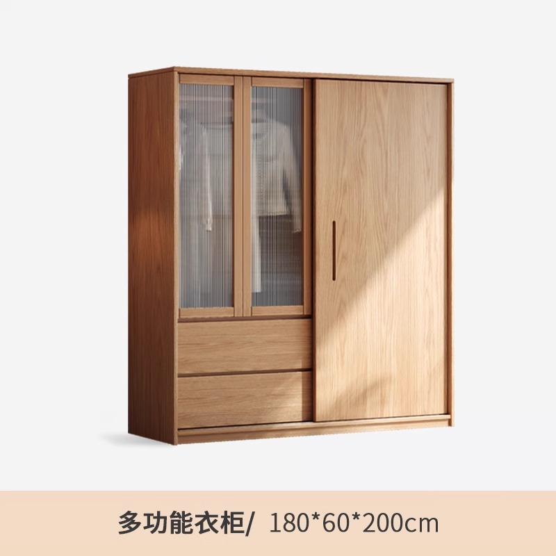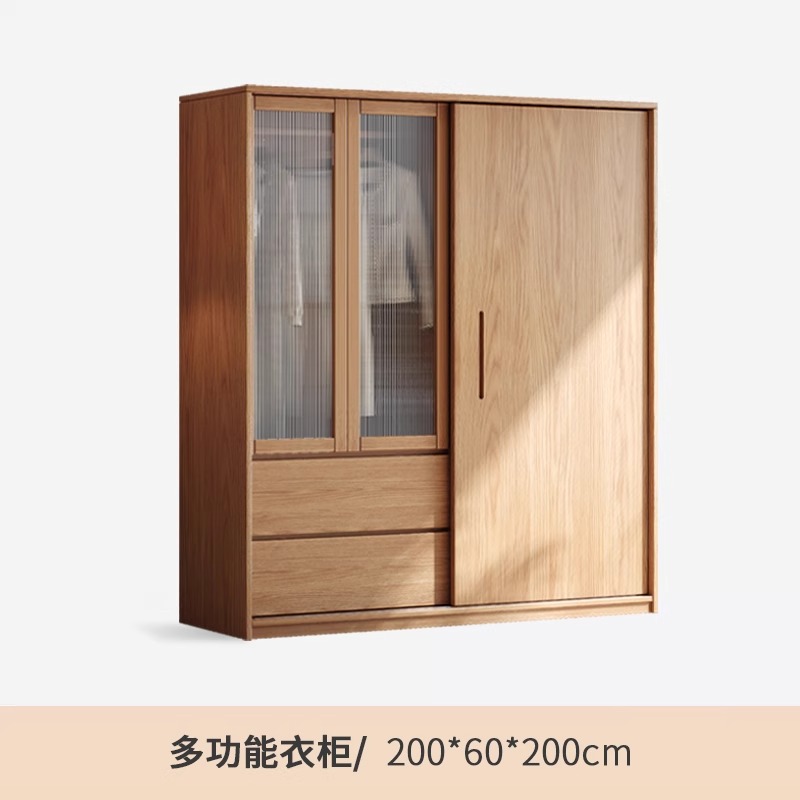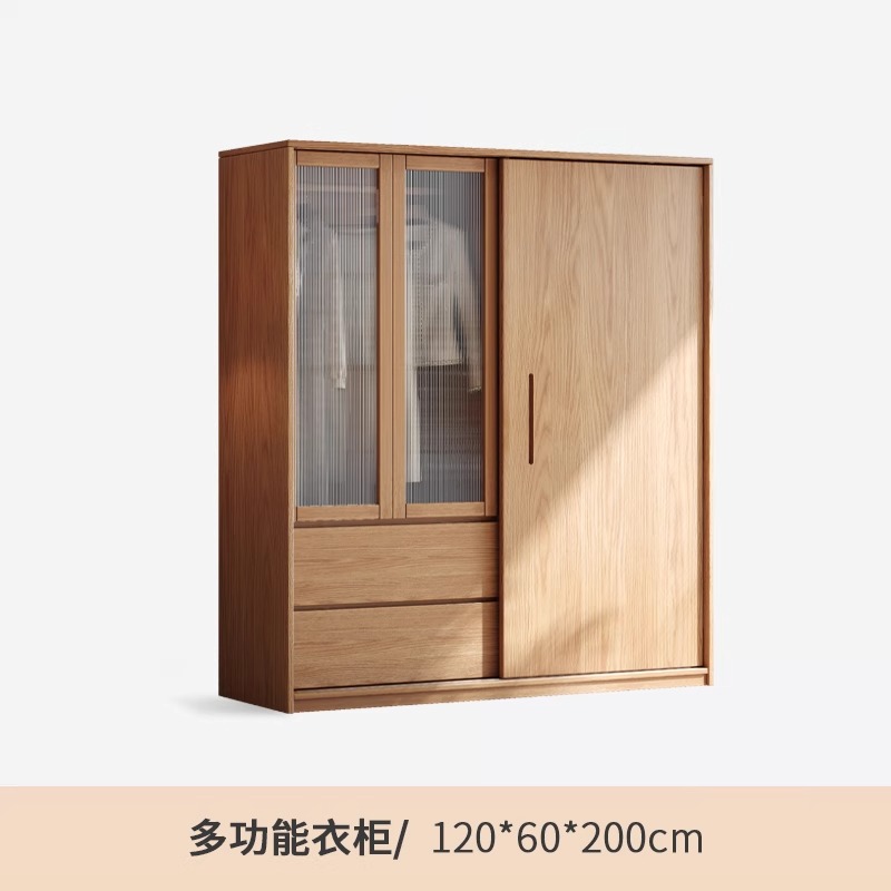 모든 단단한 나무 다기능 오크 슬라이딩 도어 옷장 홈 침실 로그 스타일 슬라이딩 도어 현대 간단한 어린이 옷장