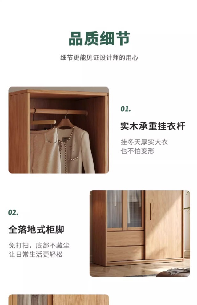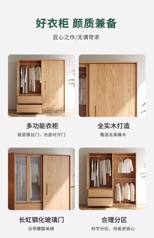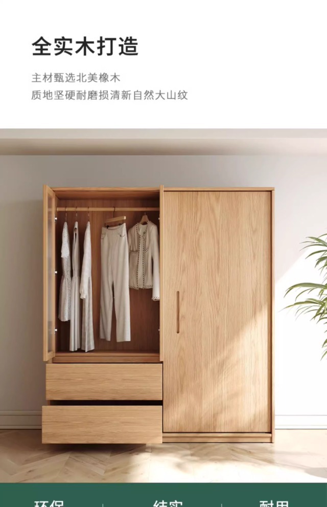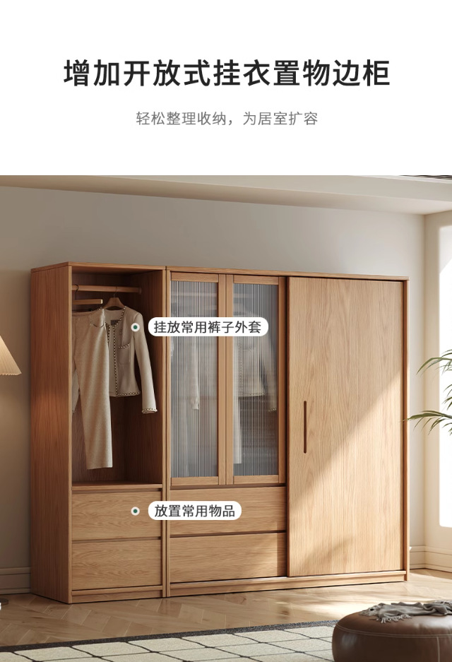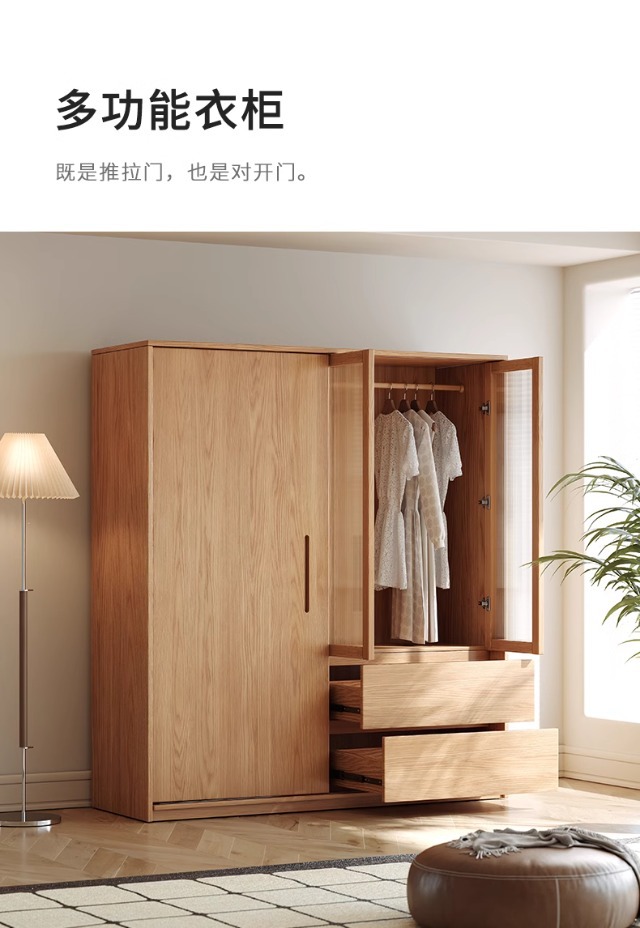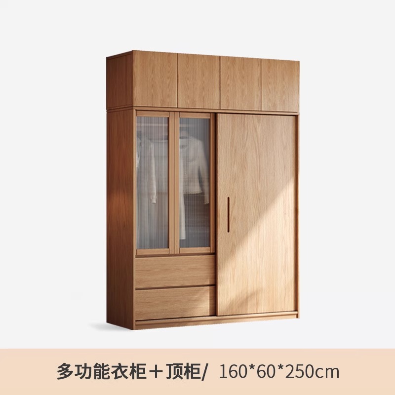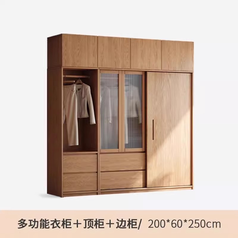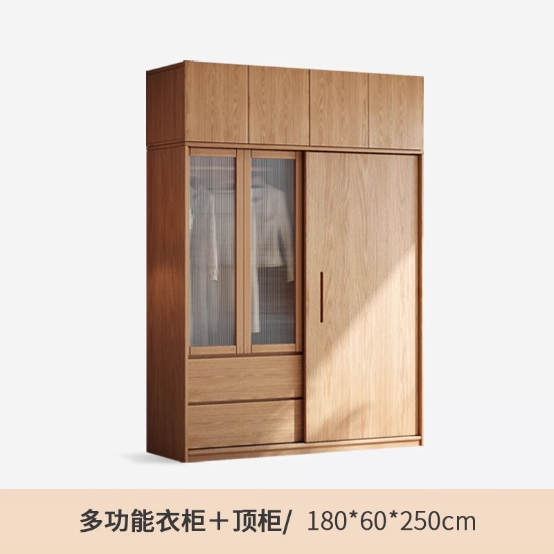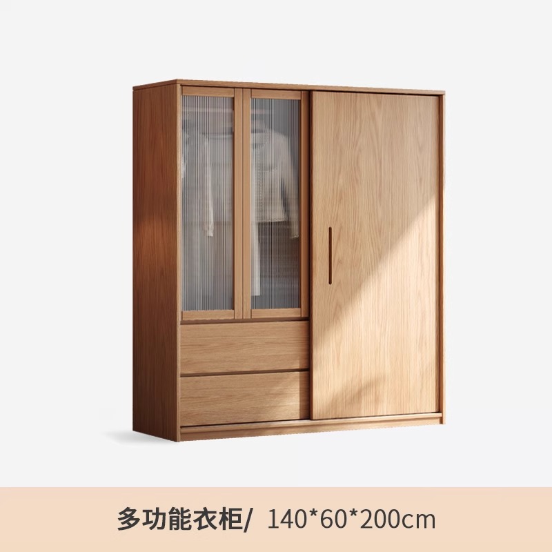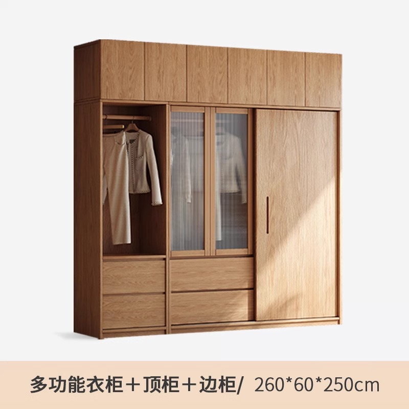 모든 단단한 나무 다기능 오크 슬라이딩 도어 옷장 홈 침실 로그 스타일 슬라이딩 도어 현대 간단한 어린이 옷장