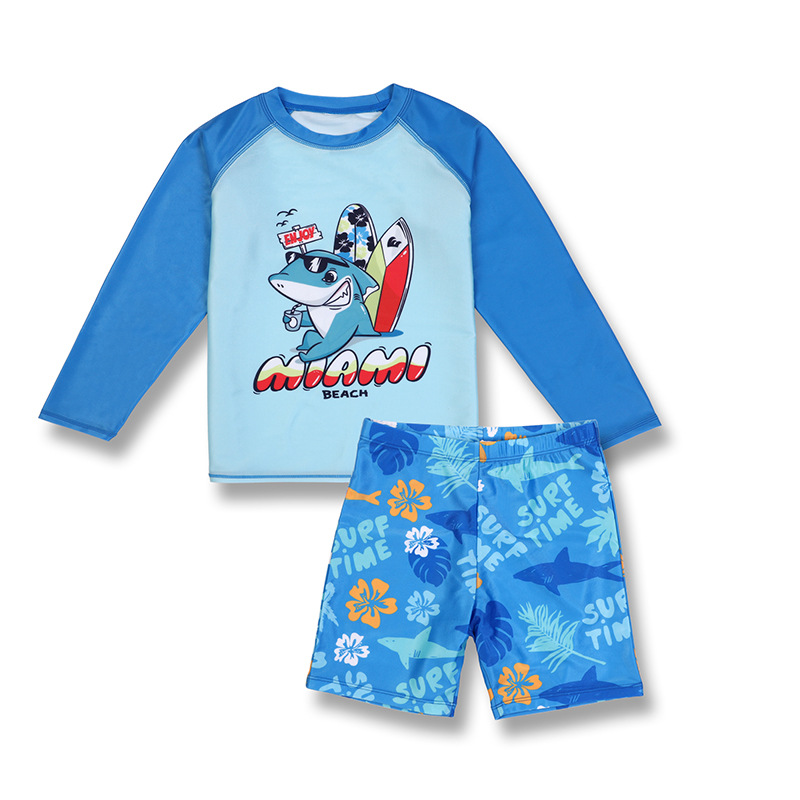 2025 새로운 어린이 수영복 스플릿 복서 긴 소매 중형 및 대형 어린이 속건성 수영복