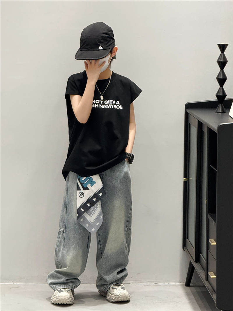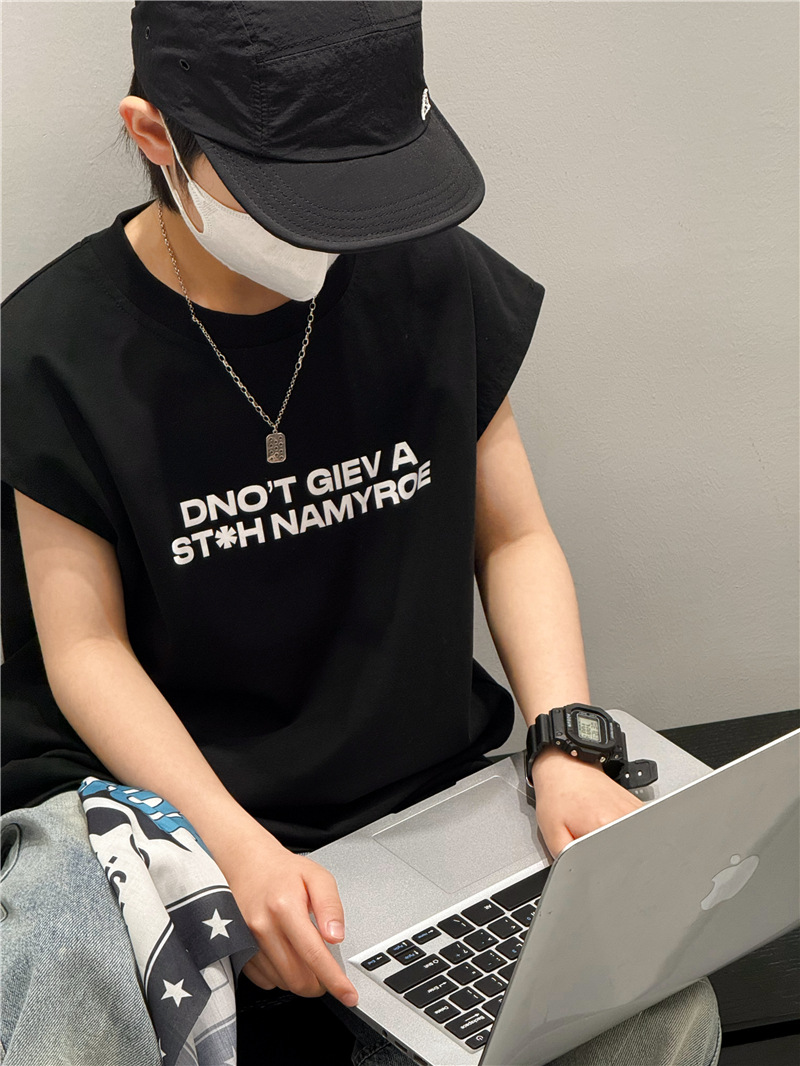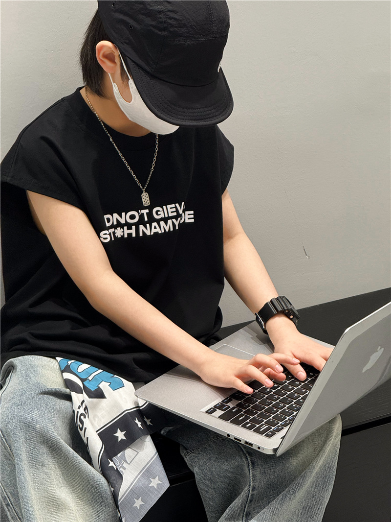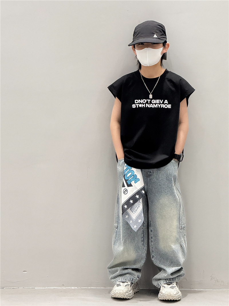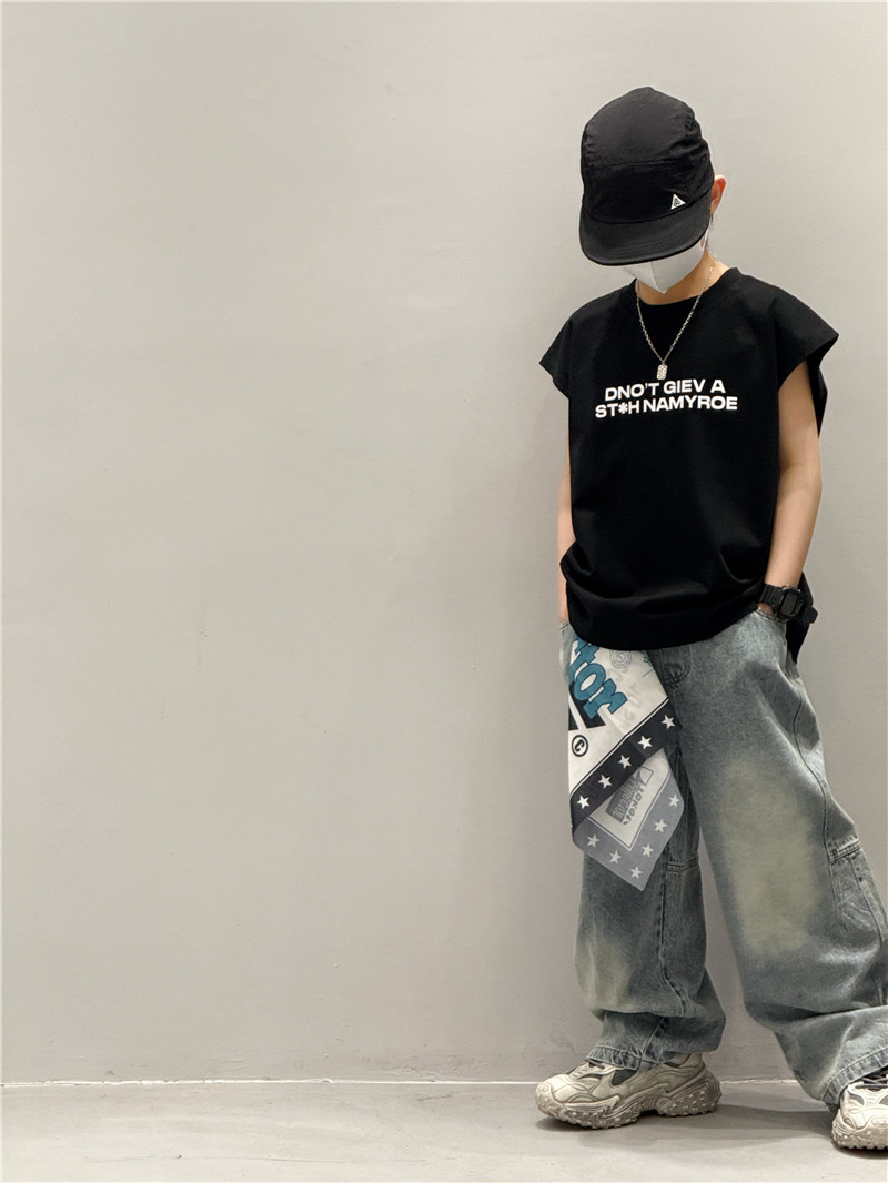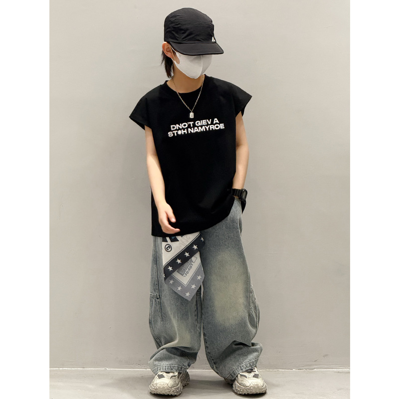 남학생 조끼 어린이 민소매 티셔츠 소년 아기의 여름 원피스 소년 최고 여름 얇은 검은 여름 중간 및 대형 어린이스토어 가기