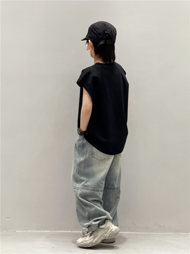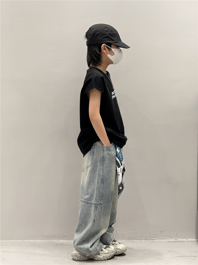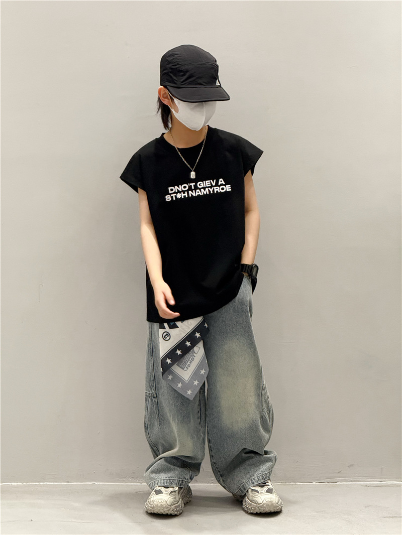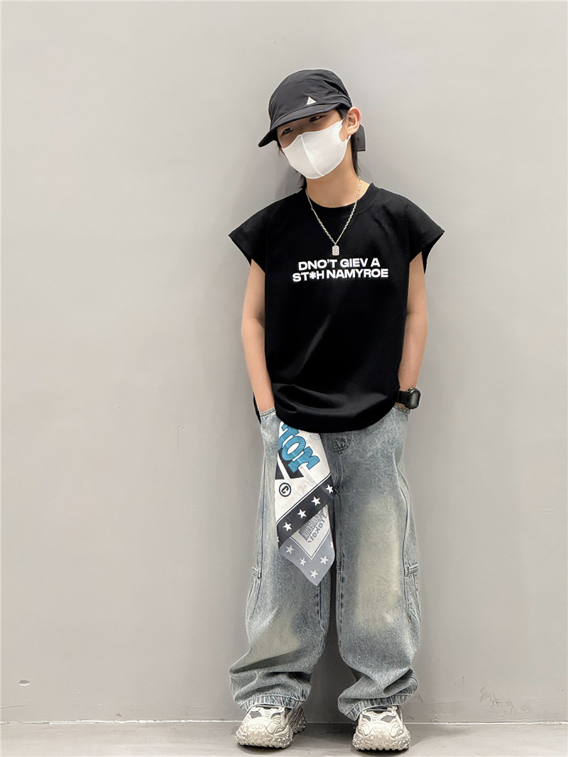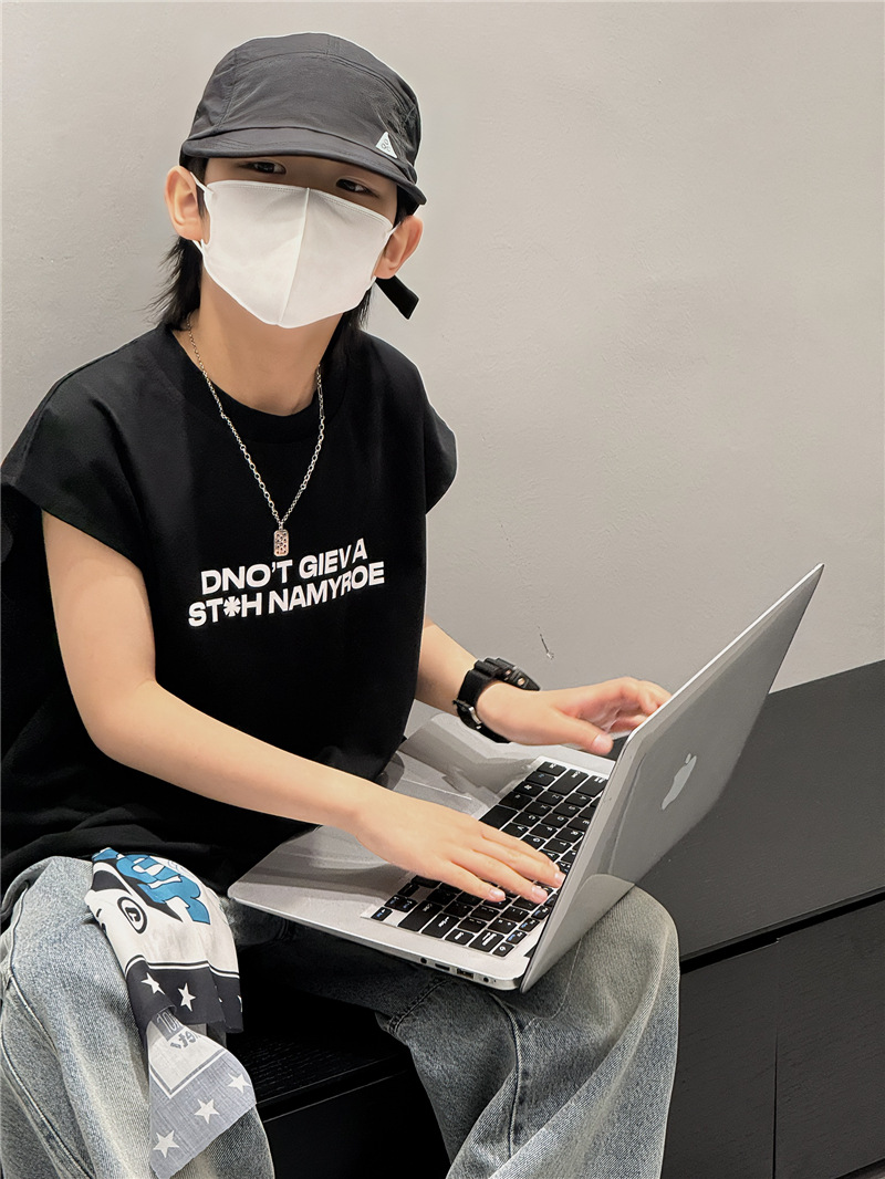 남학생 조끼 어린이 민소매 티셔츠 소년 아기의 여름 원피스 소년 최고 여름 얇은 검은 여름 중간 및 대형 어린이스토어 가기