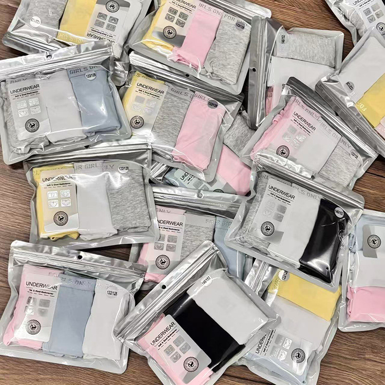 대외 무역 주문품 여아용 단색 삼각팬티, 여아용 순면 레터링 테두리 팬티, 아동용 편안한 반바지 3종 세트