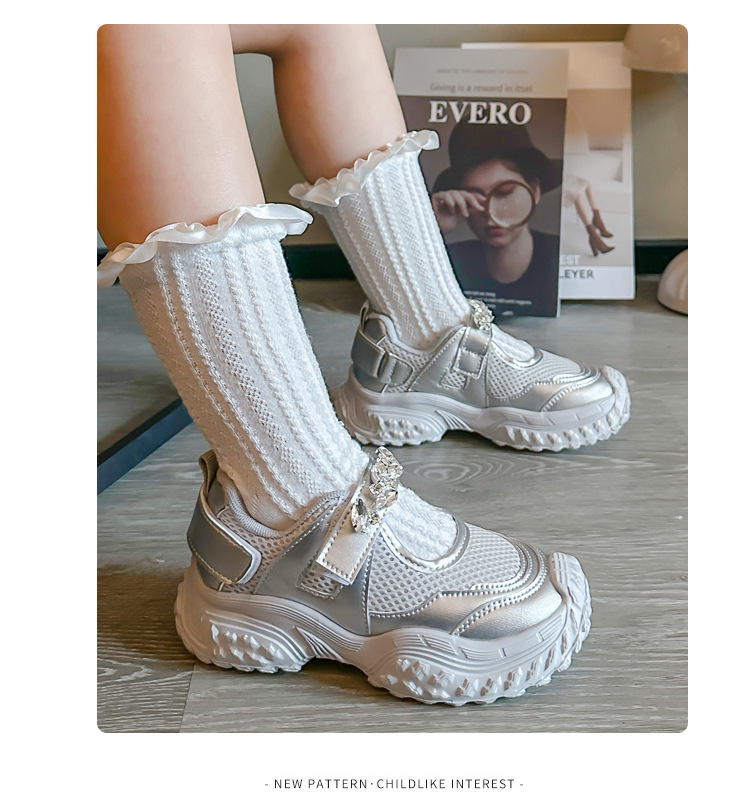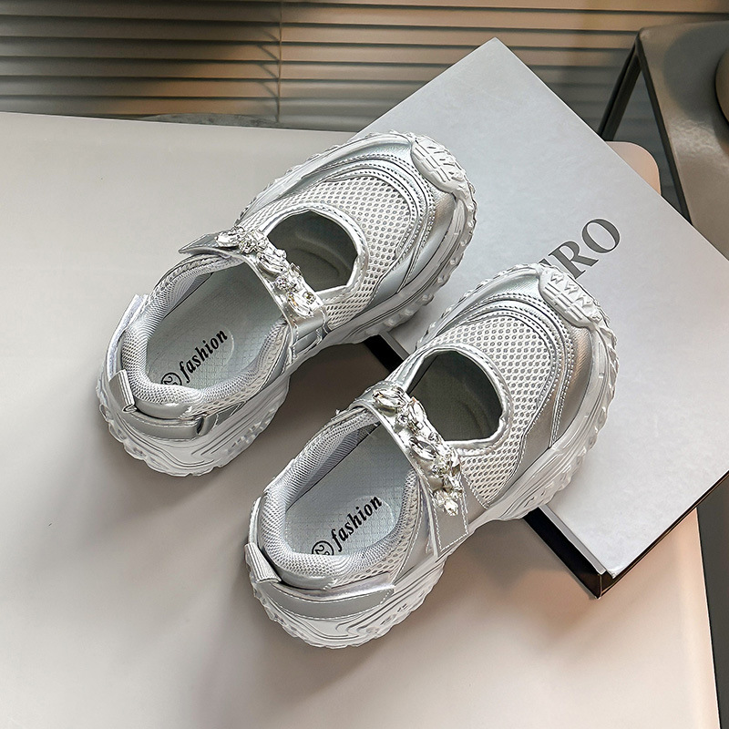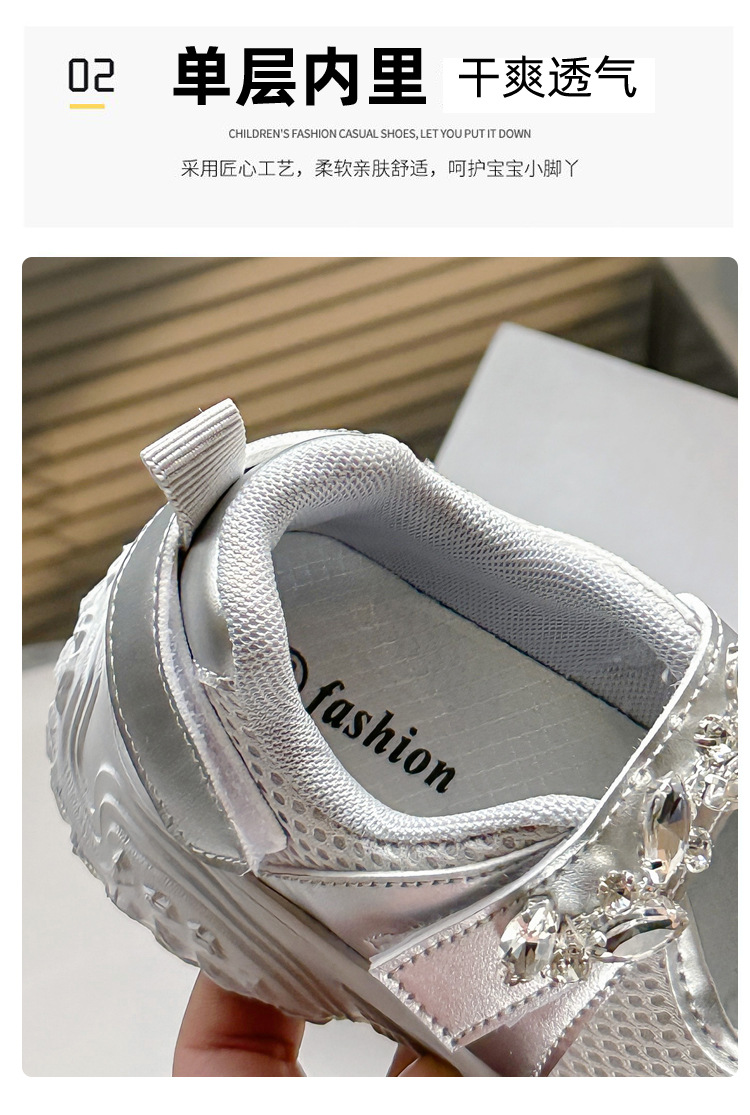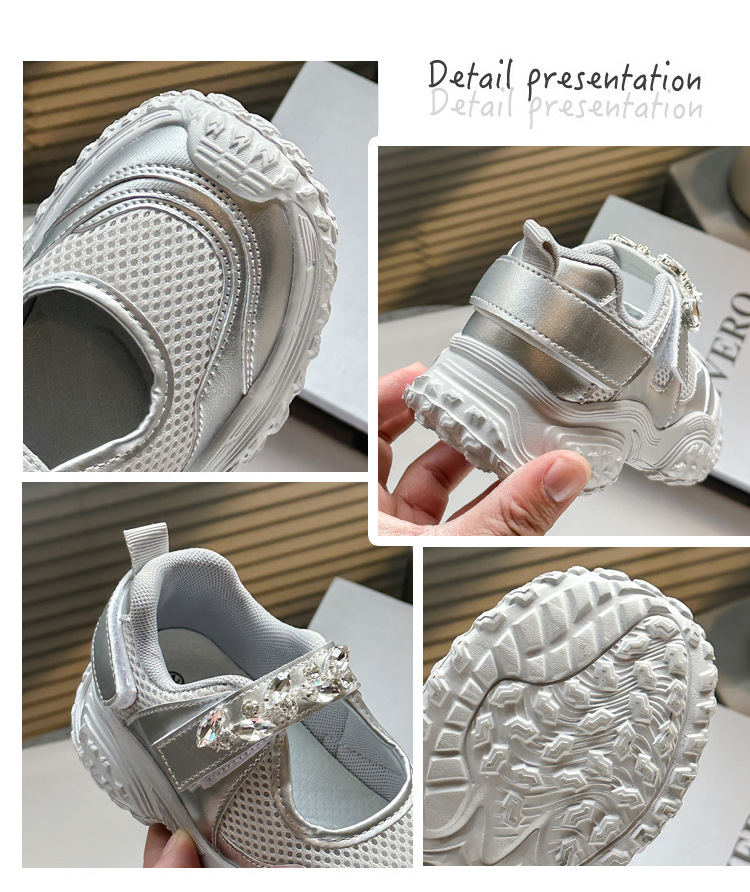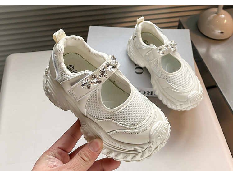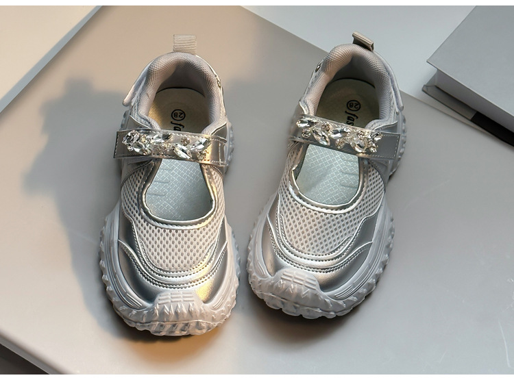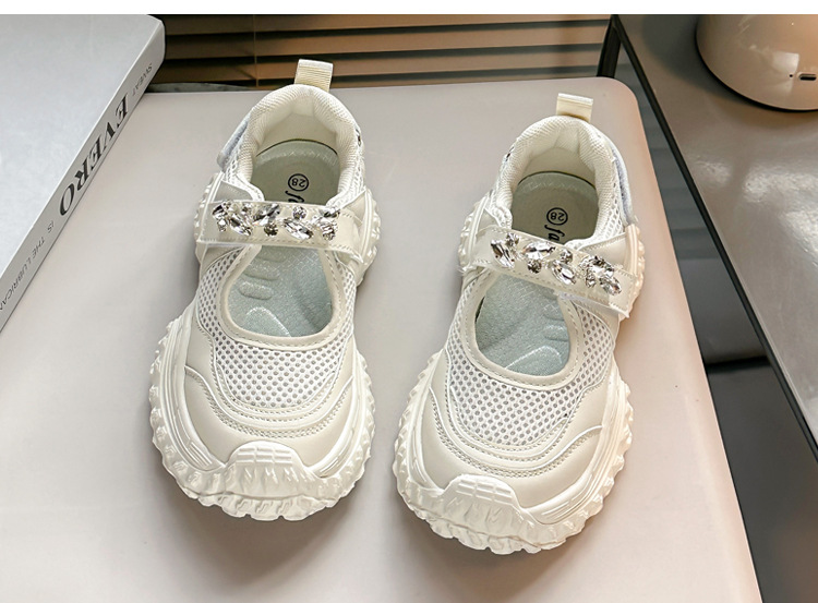 어린이 타이어 바닥 중공 편안한 운동화 2025 소녀의 세련된 얕은 입 모조 다이아몬드 공주 운동화 유행스토어 가기