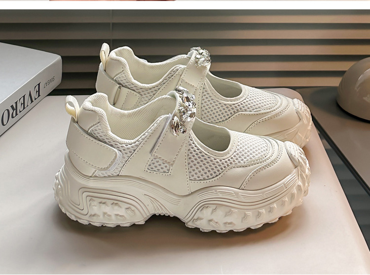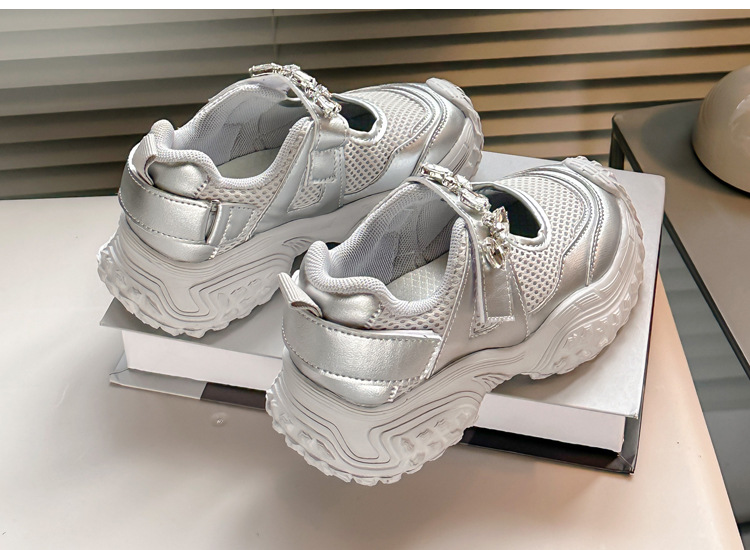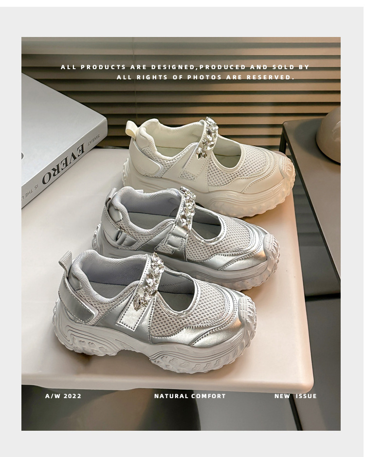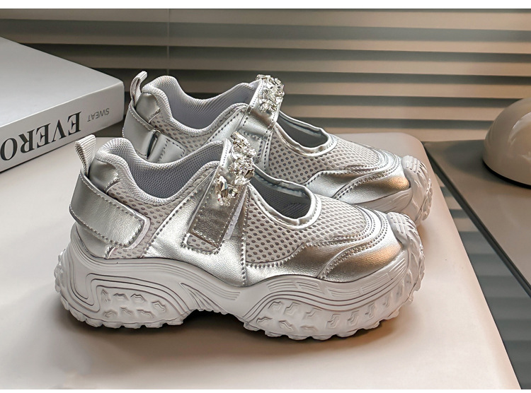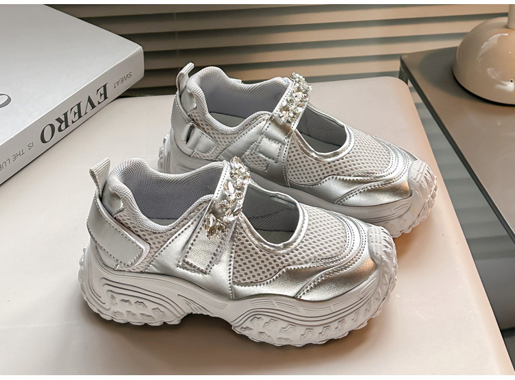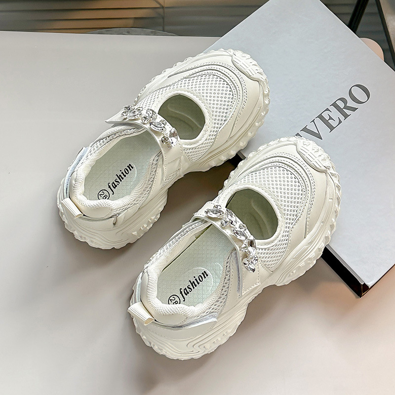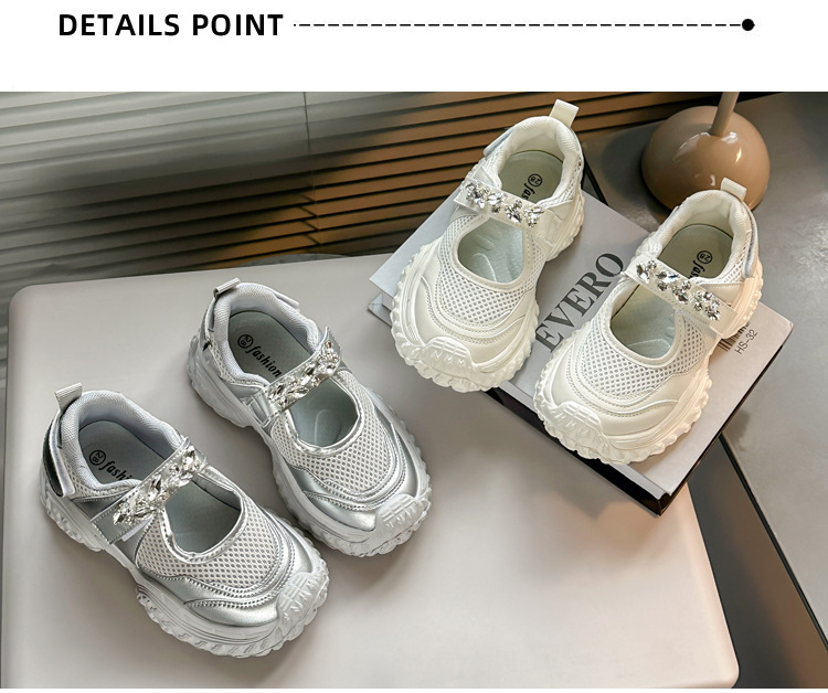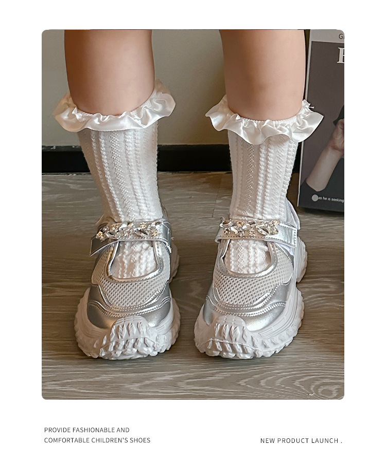 어린이 타이어 바닥 중공 편안한 운동화 2025 소녀의 세련된 얕은 입 모조 다이아몬드 공주 운동화 유행스토어 가기