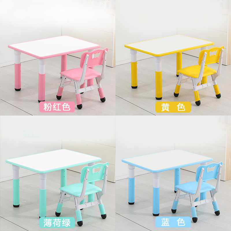 유치원 테이블과 의자 세트 어린이 리프팅 직사각형 플라스틱 테이블과 의자 아기 조기 교육 학습 장난감 테이블