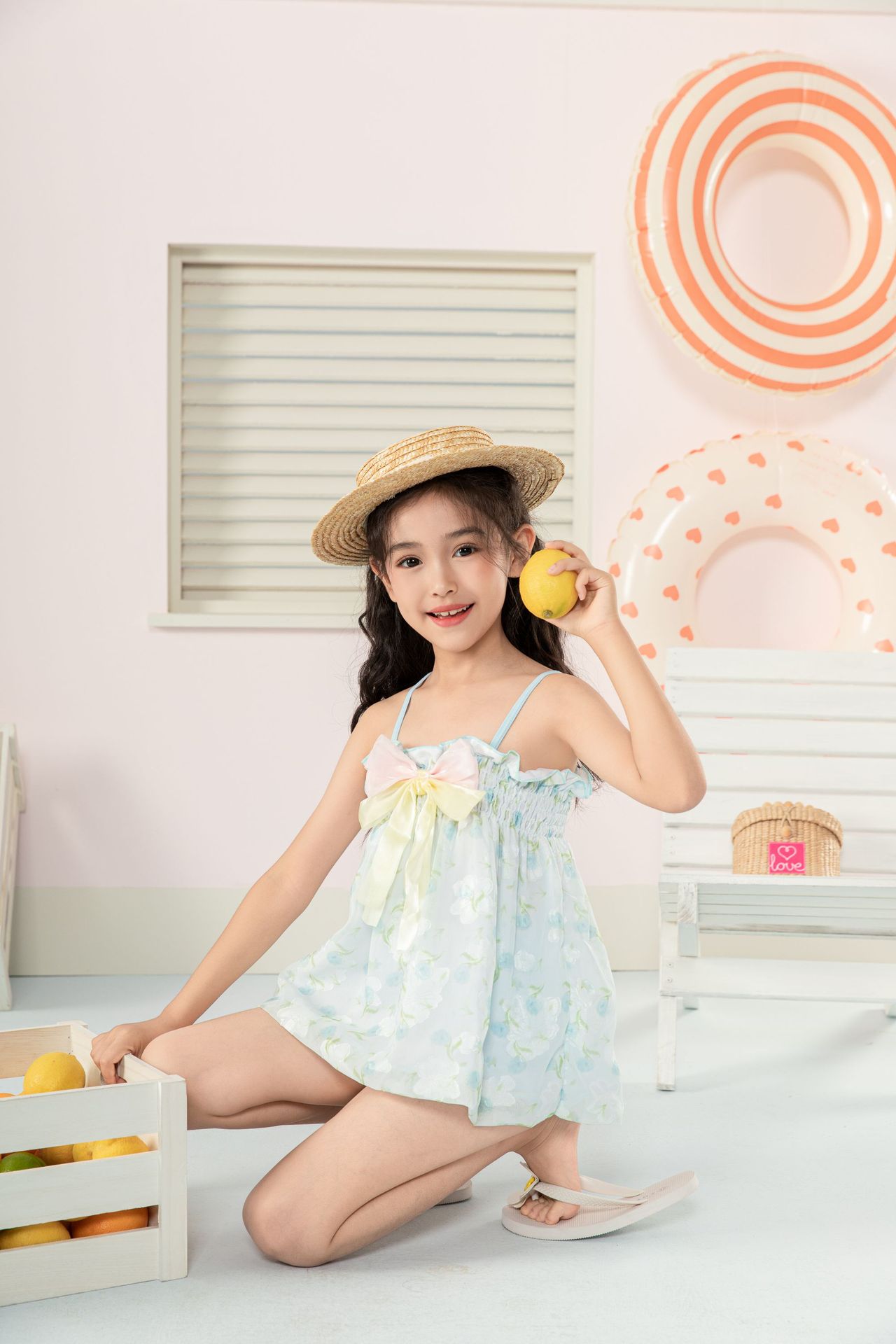 새로운 어린이 수영복 원피스 아기 슬링 여성 공주 원피스 온천 수영복 귀여운 민소매스토어 가기