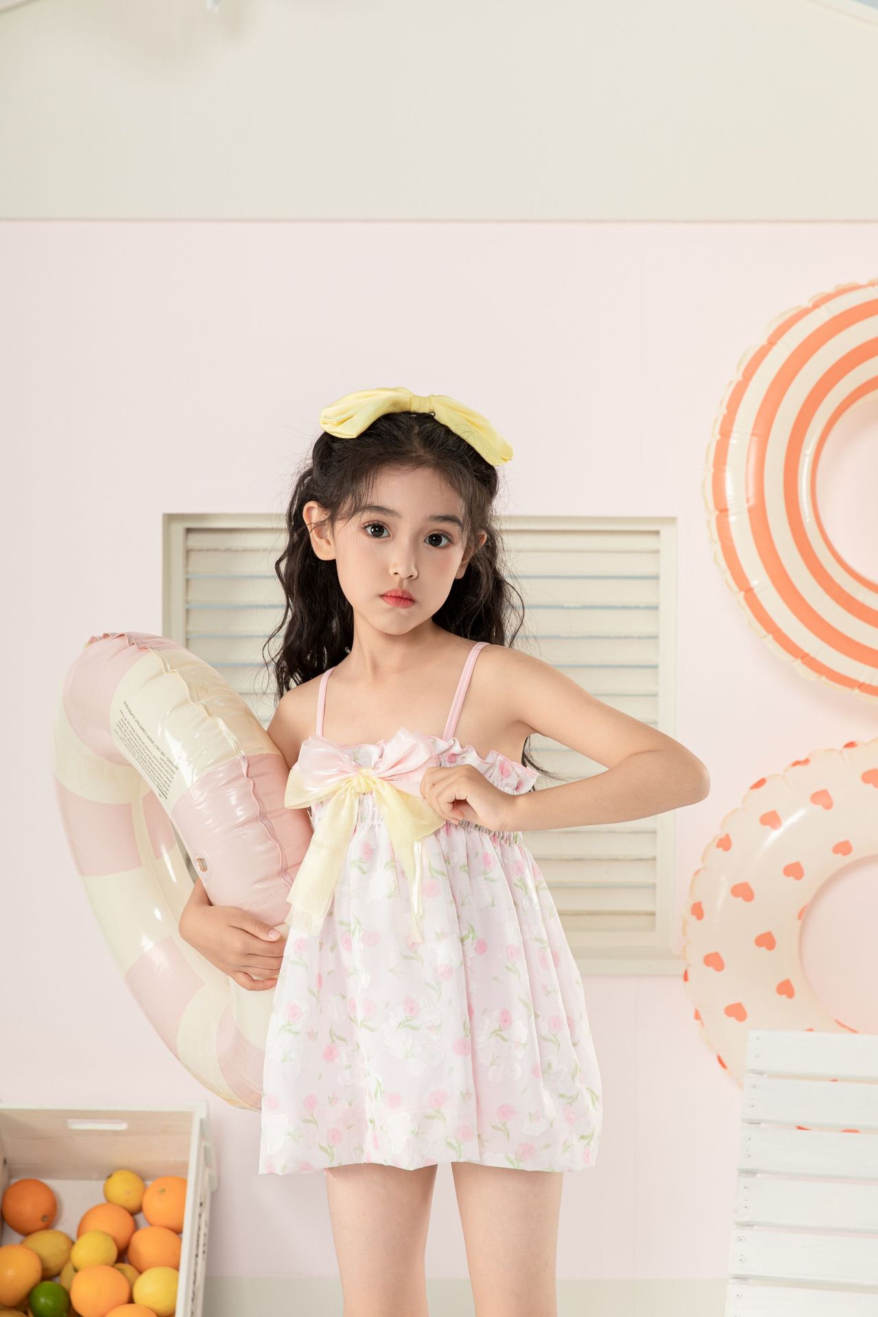 새로운 어린이 수영복 원피스 아기 슬링 여성 공주 원피스 온천 수영복 귀여운 민소매