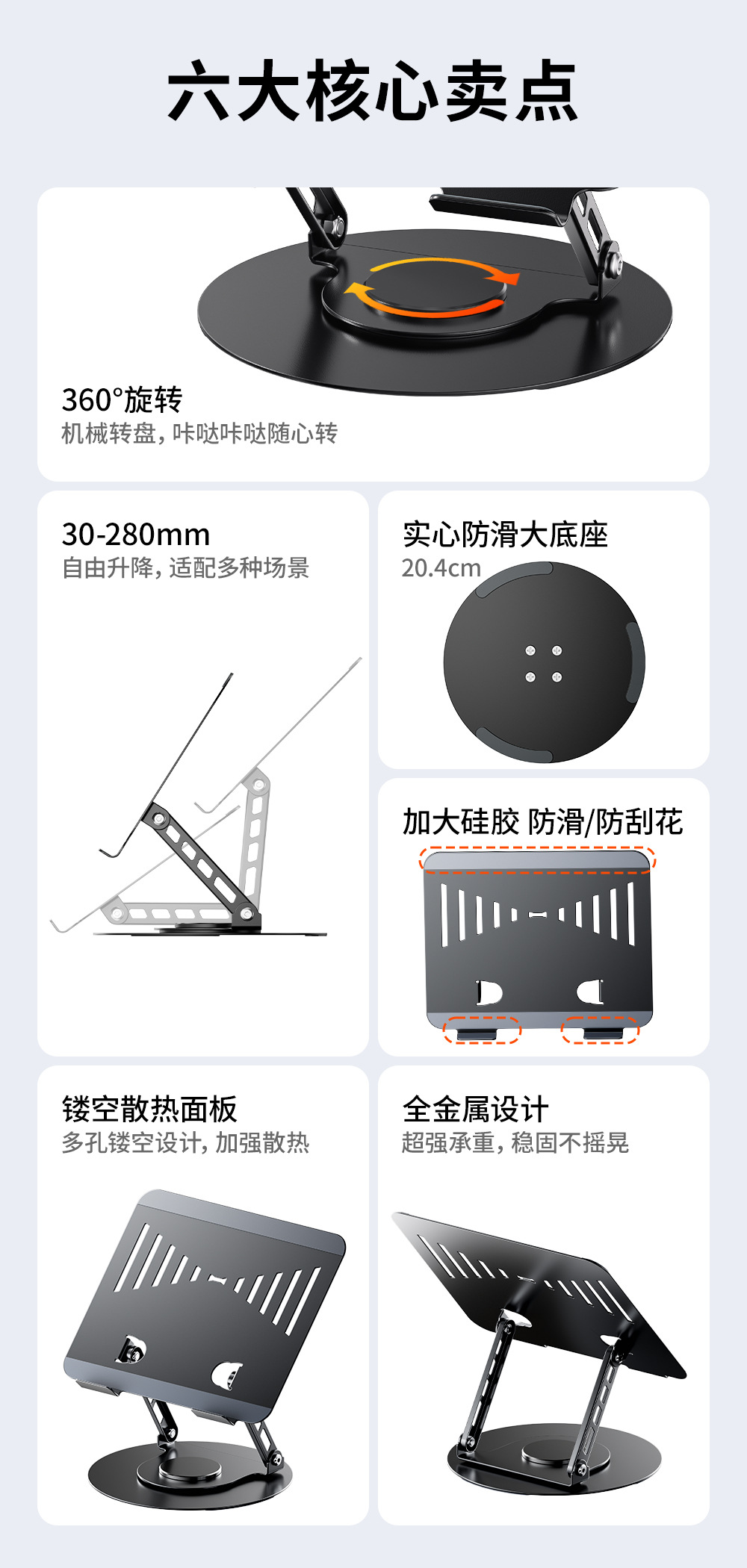 노트북 태블릿 금속 스탠드 리프팅 냉각 중공 360도 회전 접이식 스탠드 ipad에 적합스토어 가기