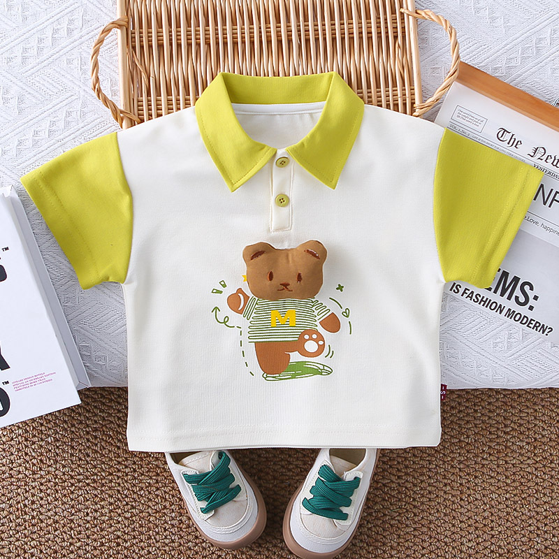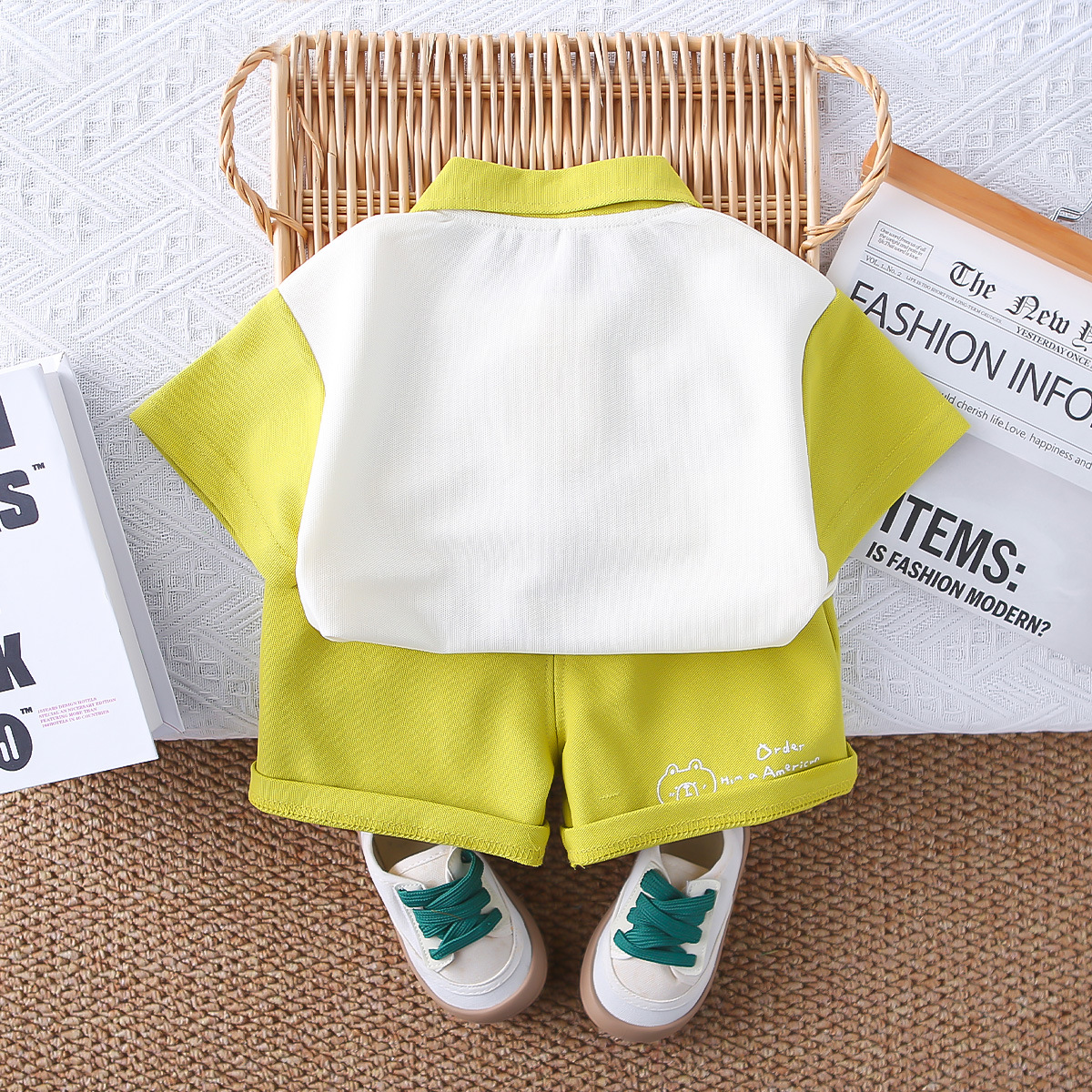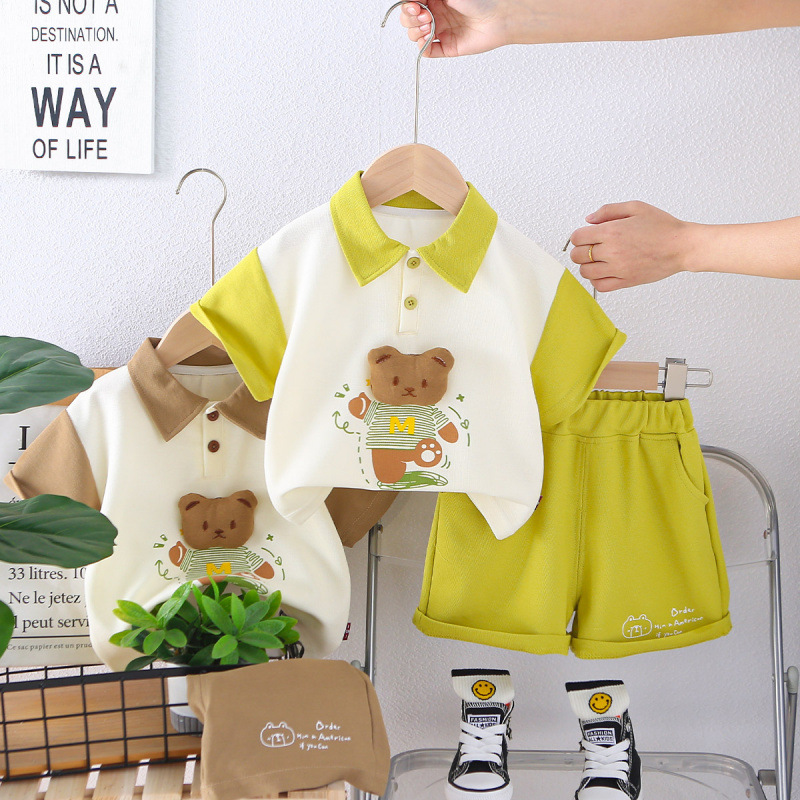 소년 면화 여름 옷 색상 차단 곰 머리 폴로 셔츠 세트 아기 반팔 어린이 아기 어린이 여름 아동 의류스토어 가기