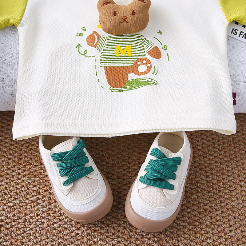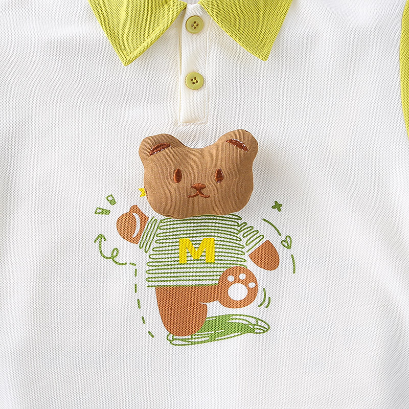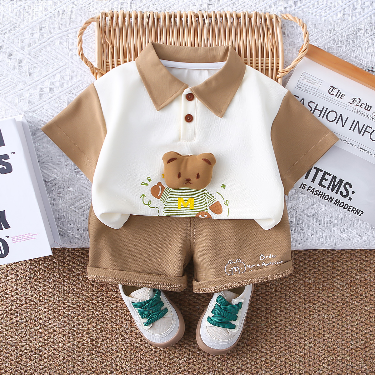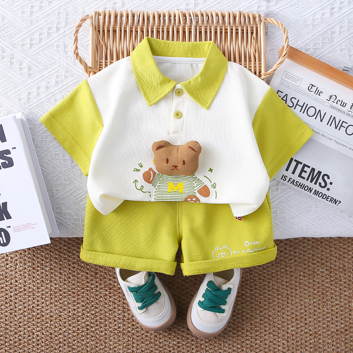 소년 면화 여름 옷 색상 차단 곰 머리 폴로 셔츠 세트 아기 반팔 어린이 아기 어린이 여름 아동 의류