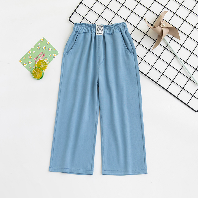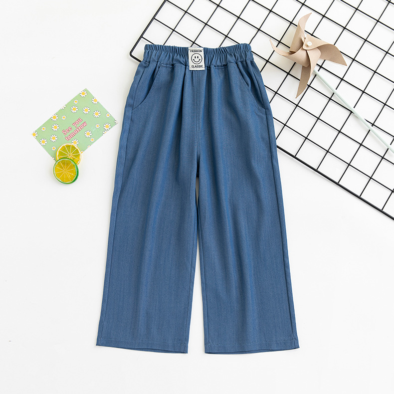 여름 얇은 텐셀 데님 넓은 다리 바지 올매치 와이드 레그 바지 여자 캐주얼 바지 어린이 와이드 레그 바지 안티 모기 바지