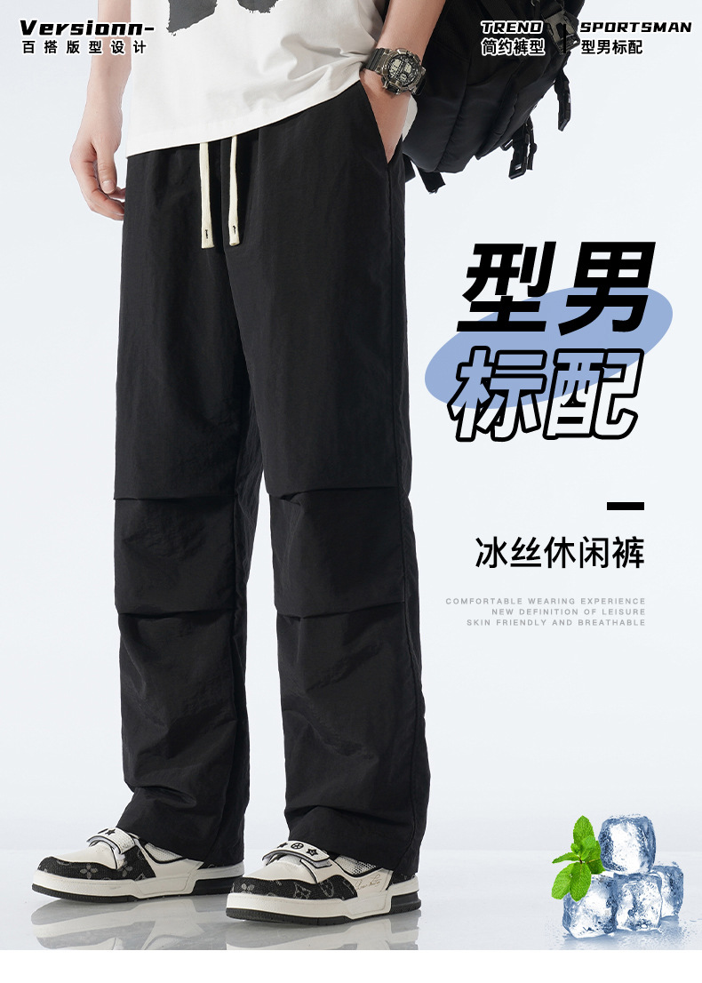 남성용 아이스 실크 롱 팬츠, 아웃도어 바지, 2026년 여름 신상 트렌디 브랜드 스포츠 팬츠, 스트레이트 레그 캐주얼 팬츠