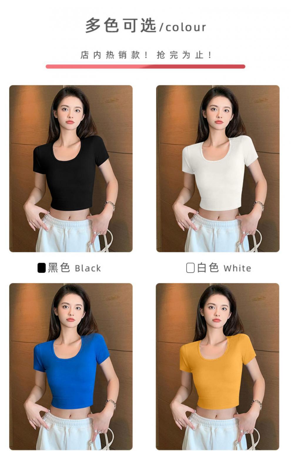 클라인 블루 퓨어 코튼 반팔 티셔츠 여성용 반바지 크롭 탑 봄 여름 배꼽 노출 슬림핏 이너 티셔츠 트렌디
